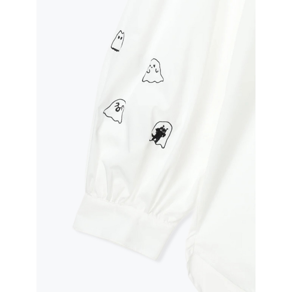 可愛いオバケ達を袖に刺繍したポップなデザインのシャツ