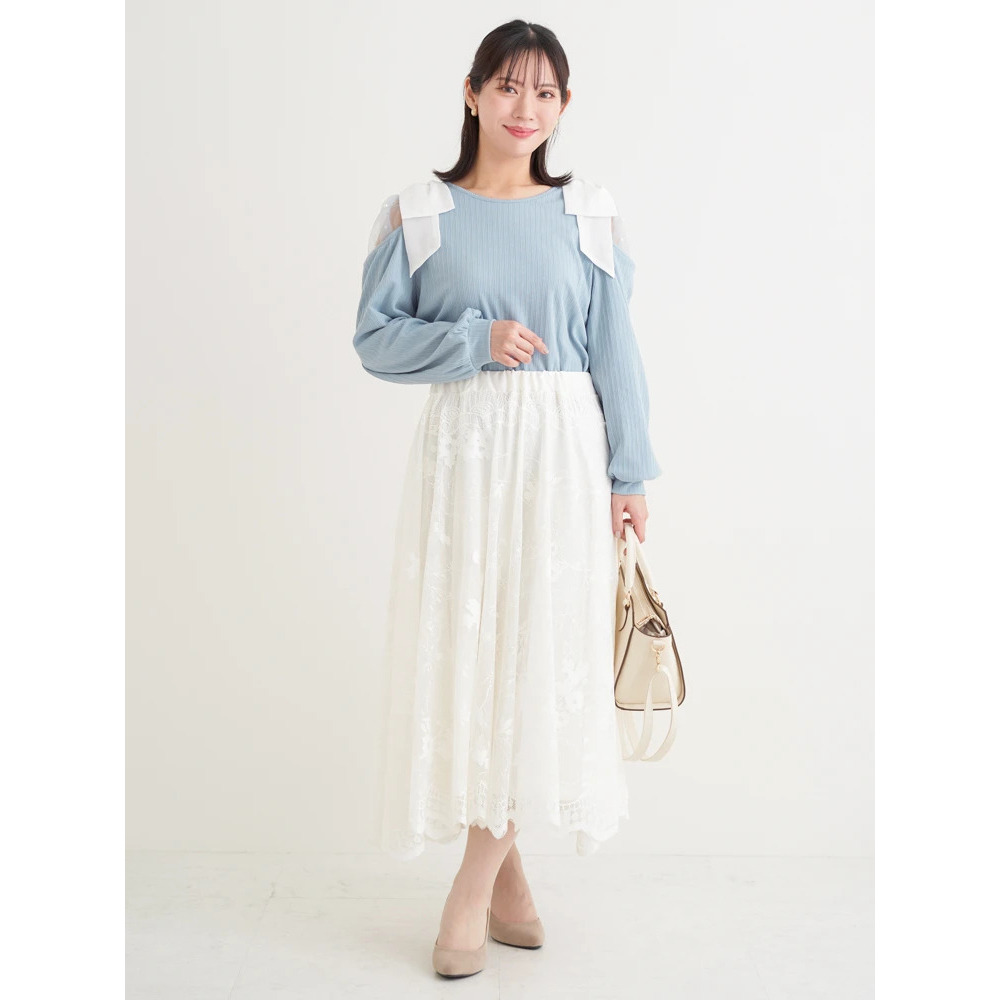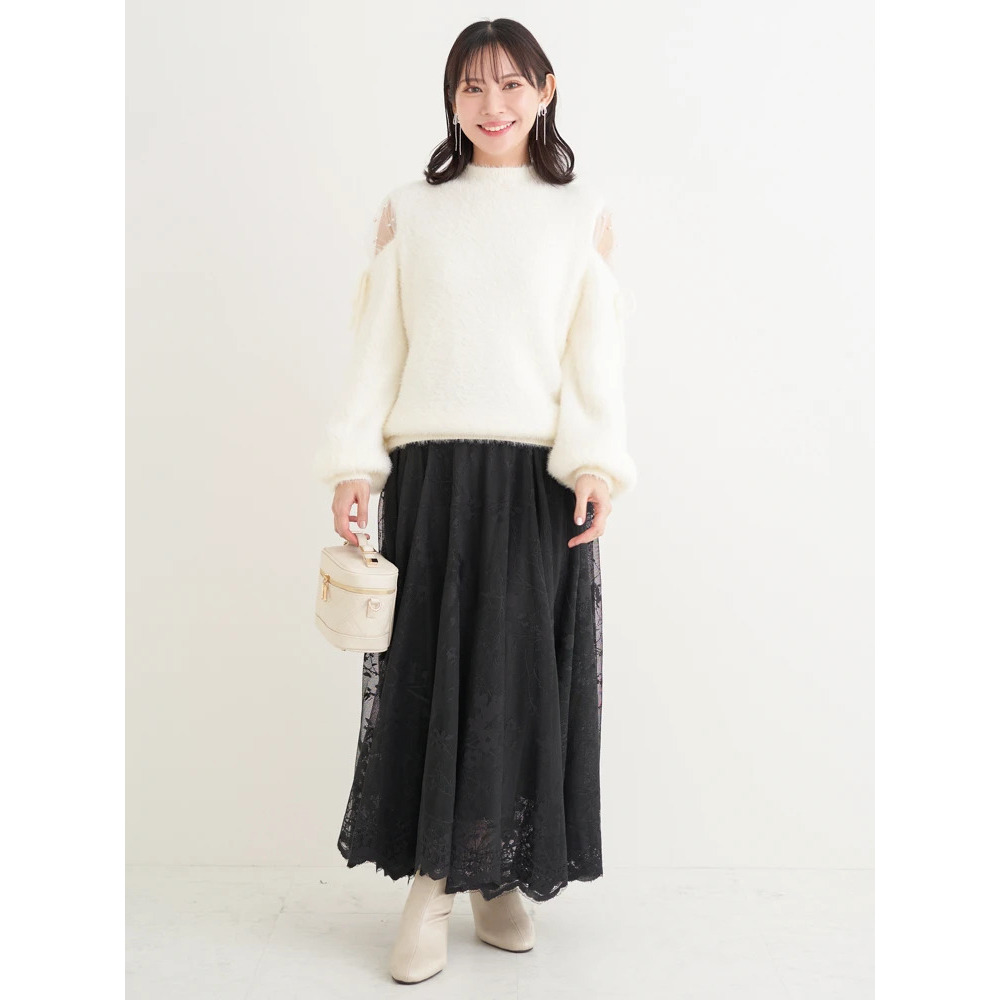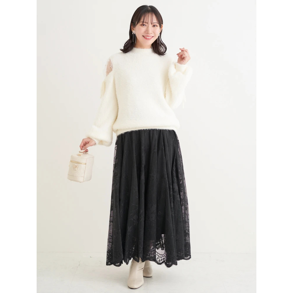 ・透け感のあるレース素材とふわっと広がるフレアデザインがレディな印象を演出◎
