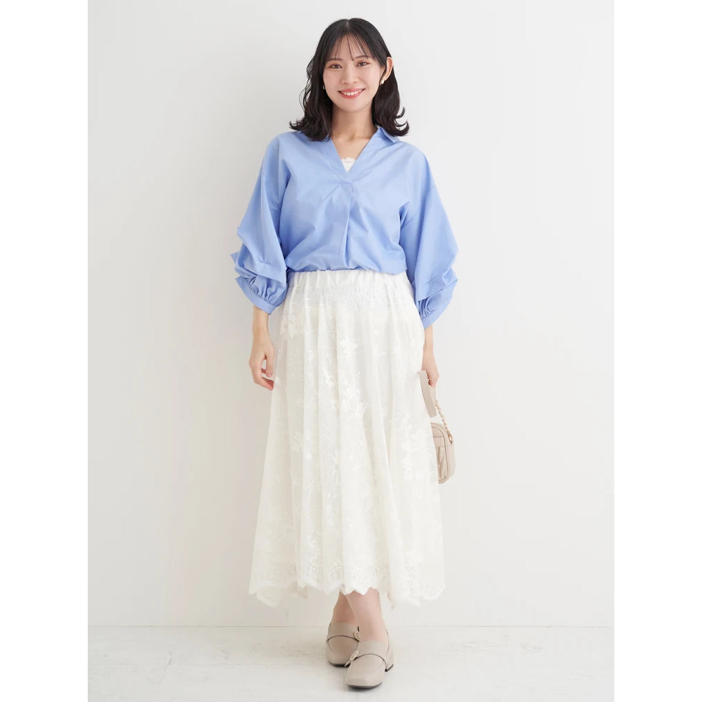 ブラウスなどと合わせたフェミニンなスタイルはもちろん、シンプルなニットやキレイめトップスと合わせて、スカートを主役にするコーディネートがおすすめです。
