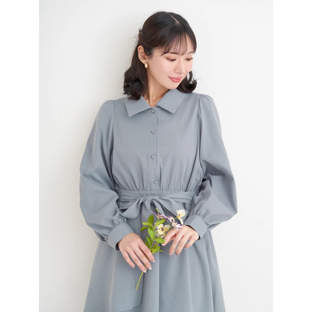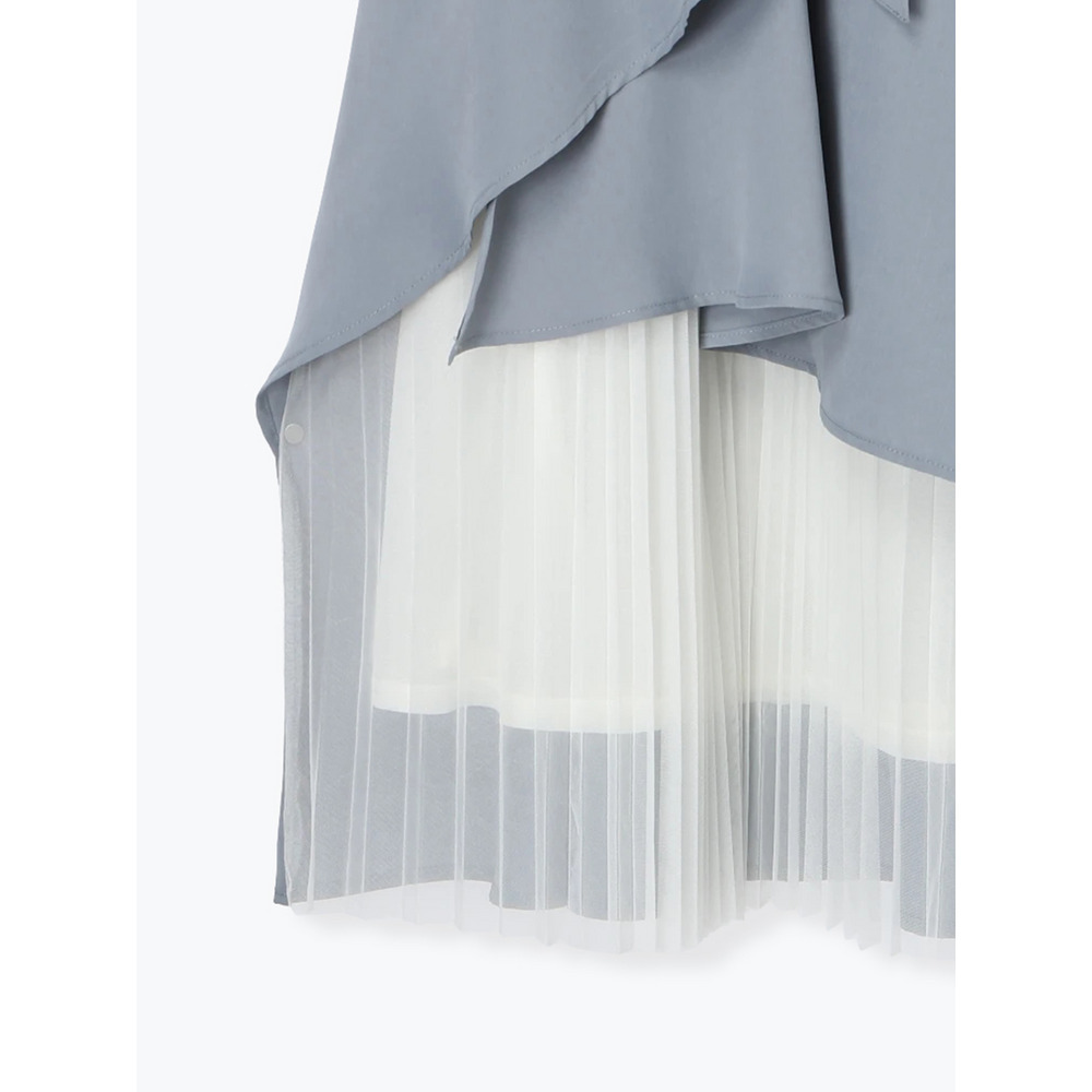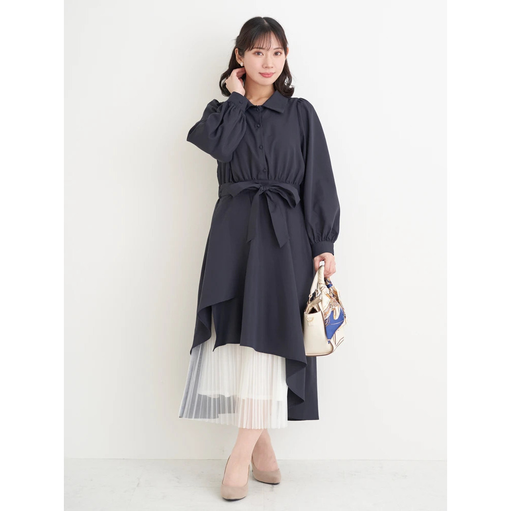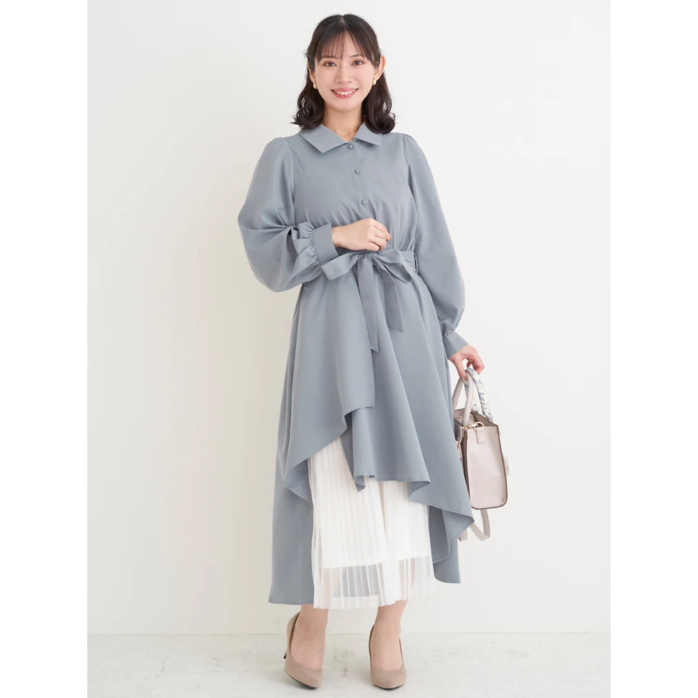 裾チュールアシメ切り替えシャツワンピース