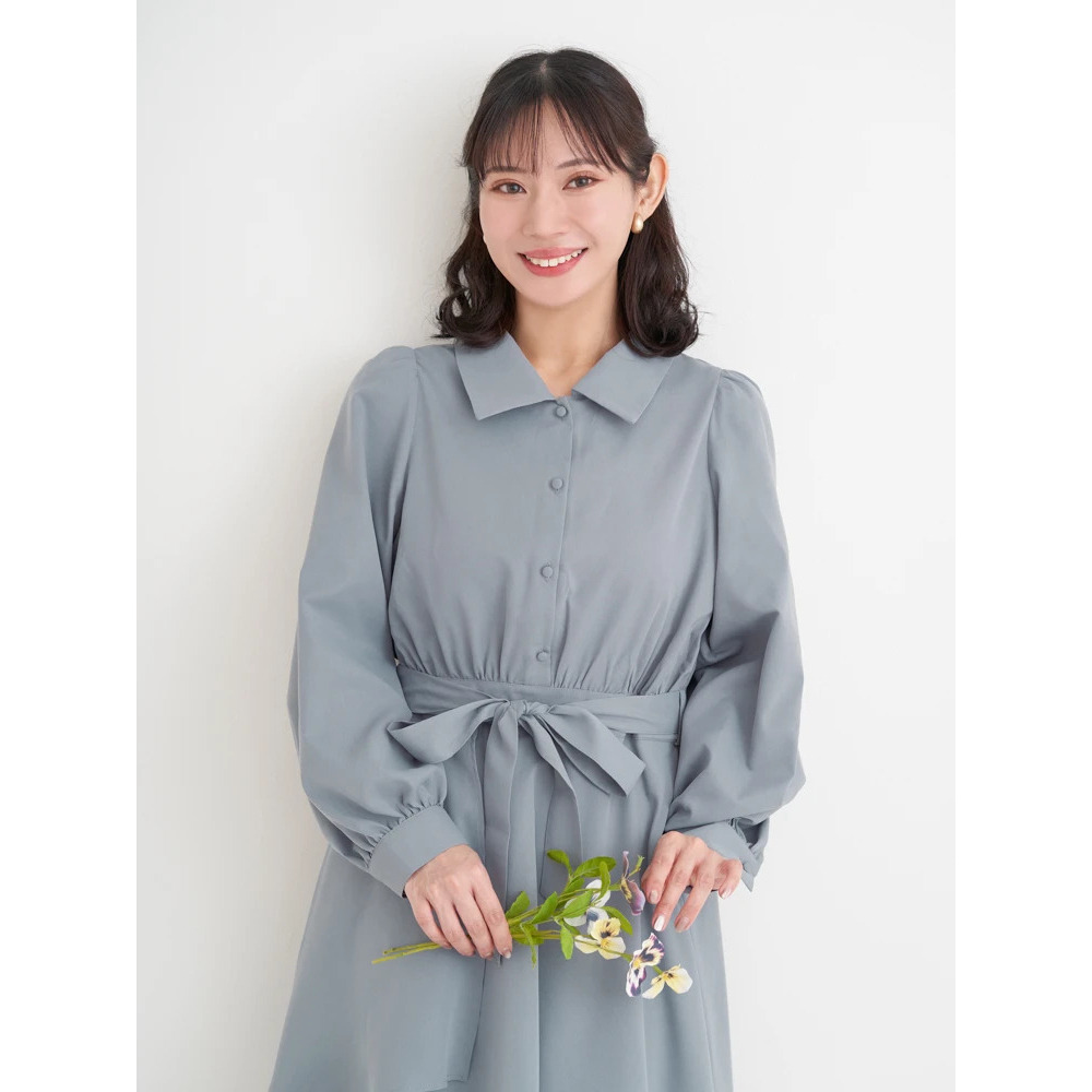 ・ウエストマークに映えるリボンベルトも愛らしいアクセントをプラス。