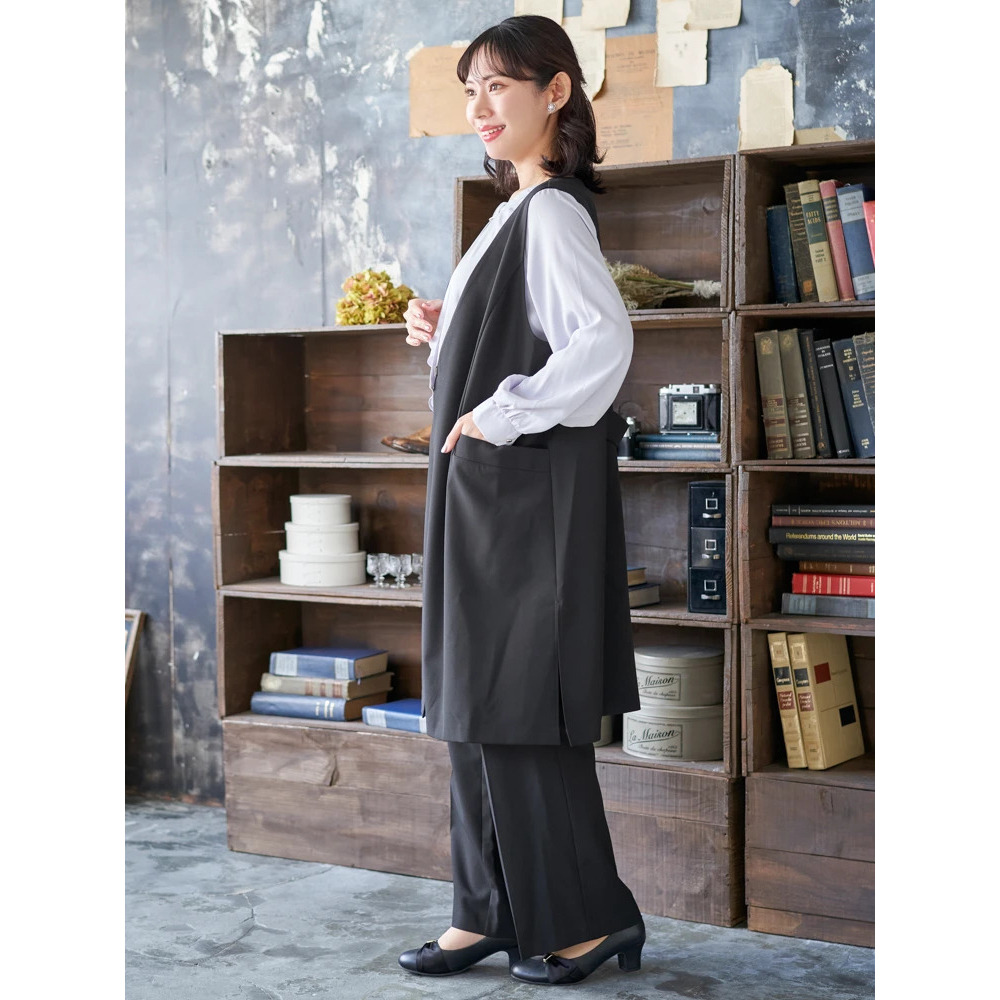 ベーシックなトップスと合わせるだけで簡単キレイ見えするのが嬉しいジレは1枚あると重宝するアイテム!