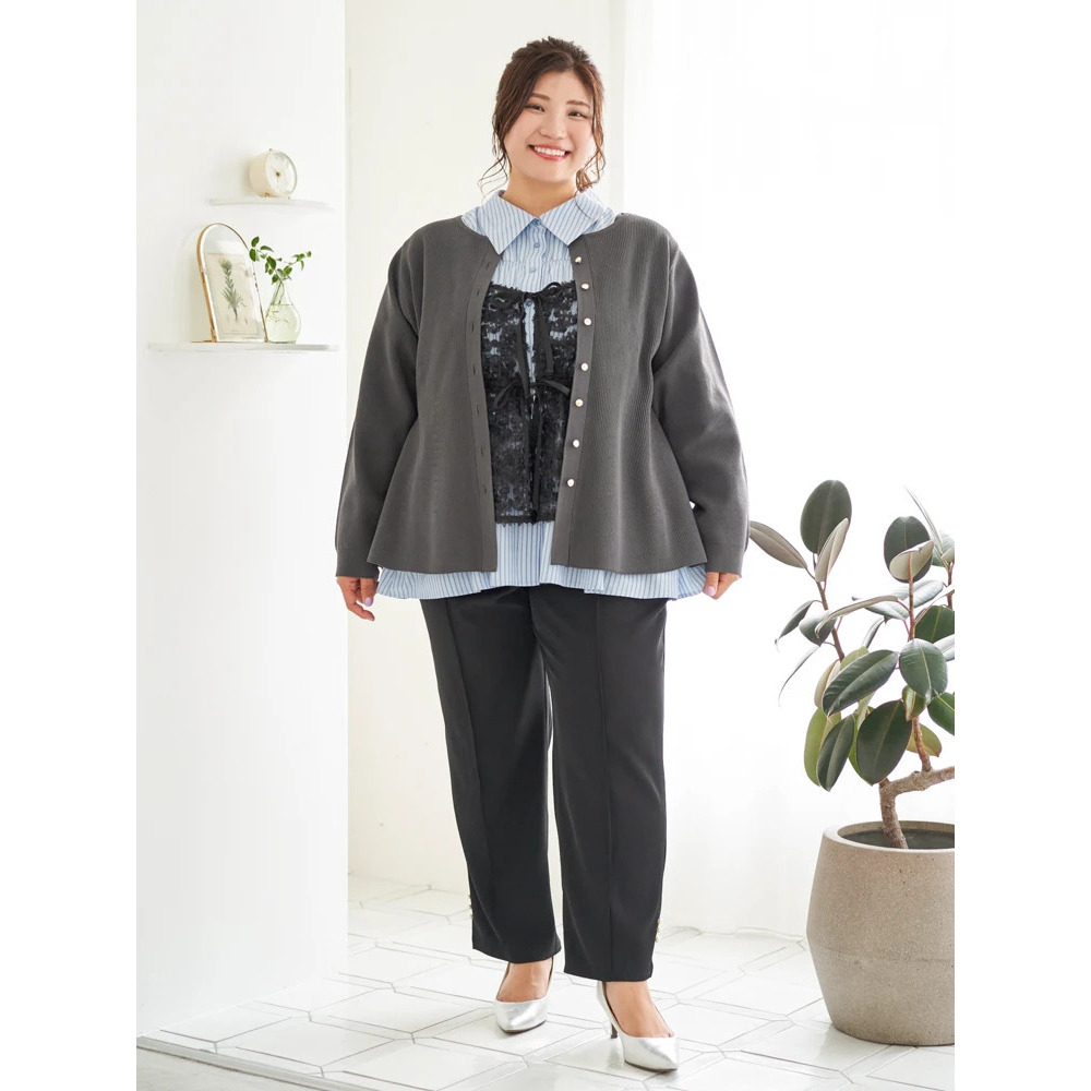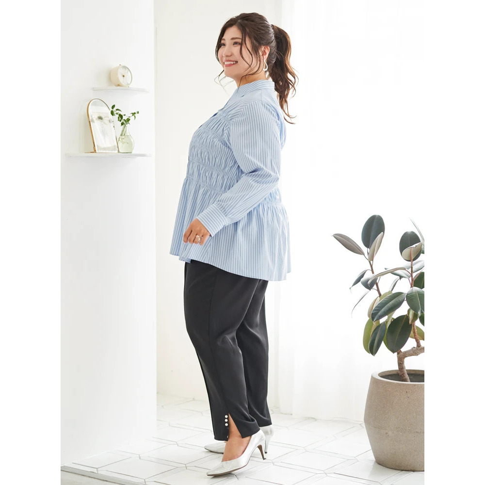 ペプラムシルエットやチュニック丈のトップスと合わせれば、体系カバーも叶うメリハリのあるスタイリングに決まります♪