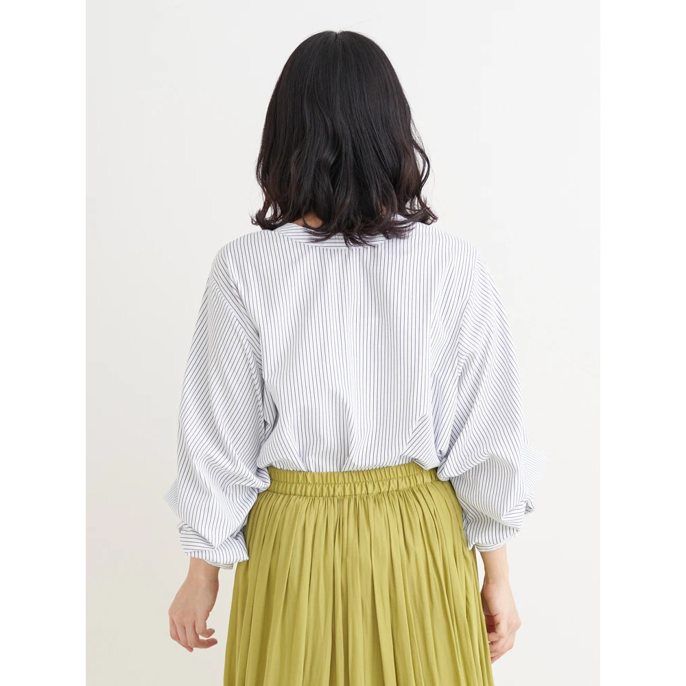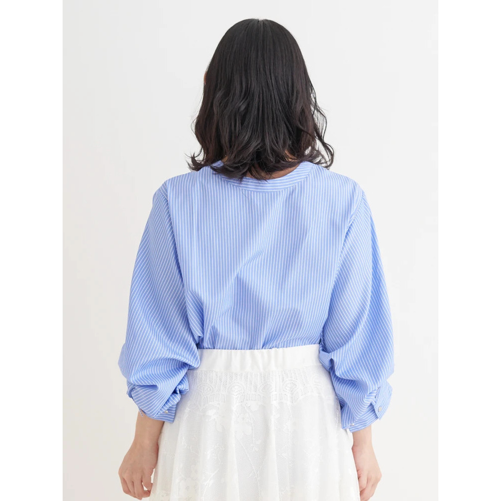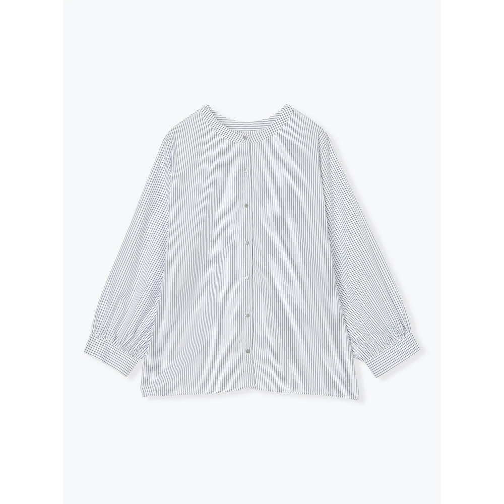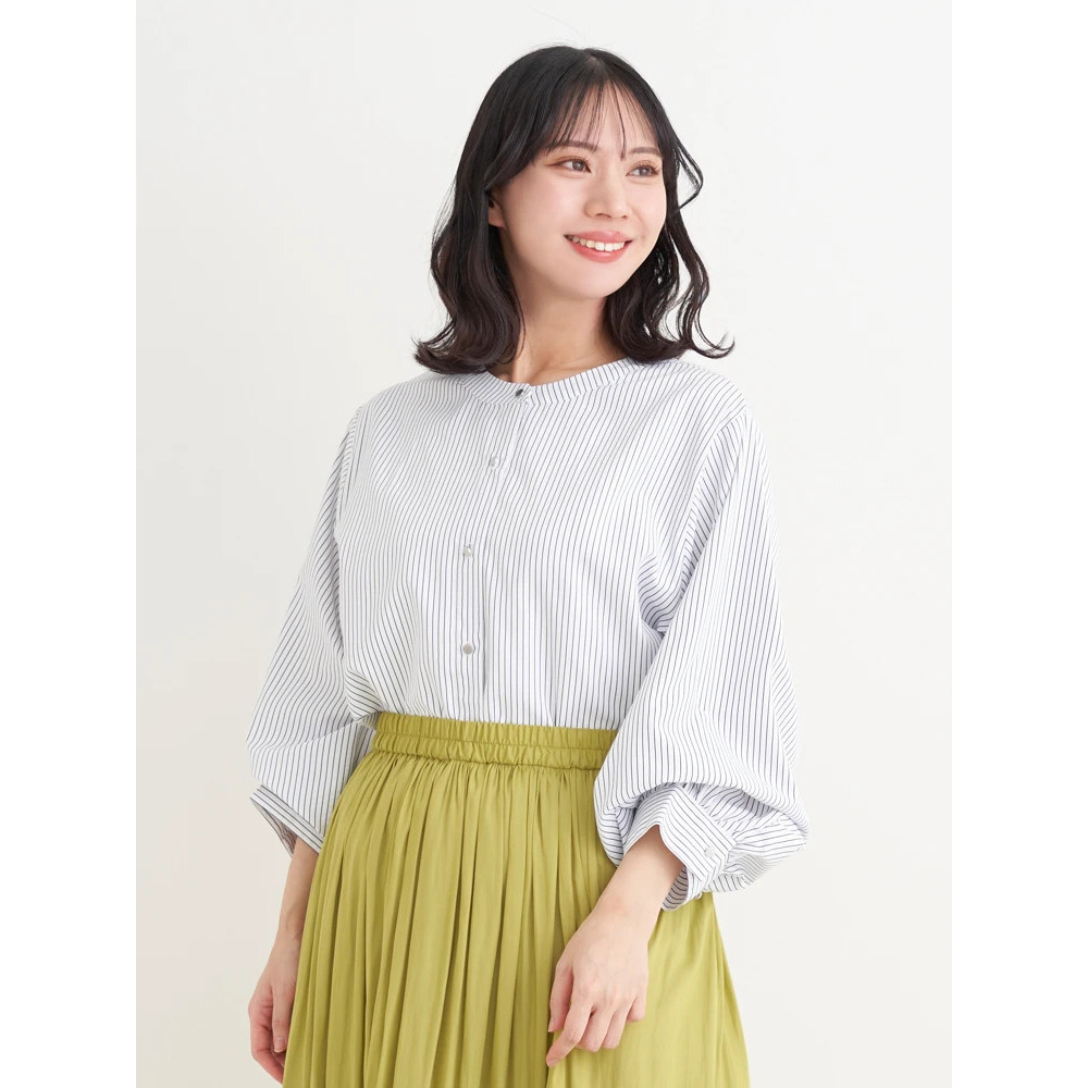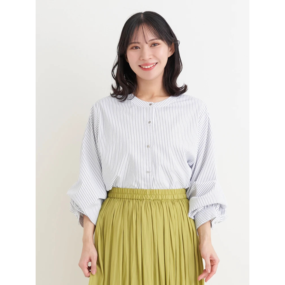 [2WAYスリーブ]ストライプ柄ノーカラーシャツ