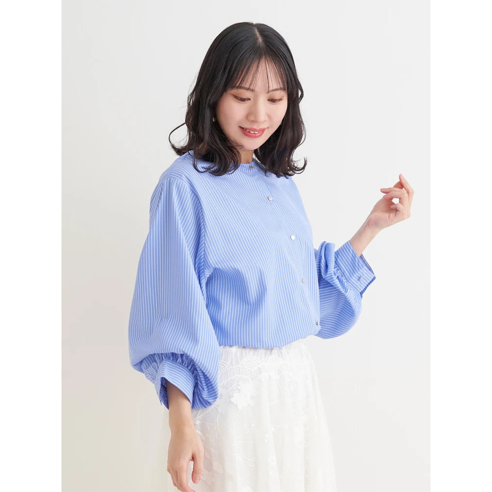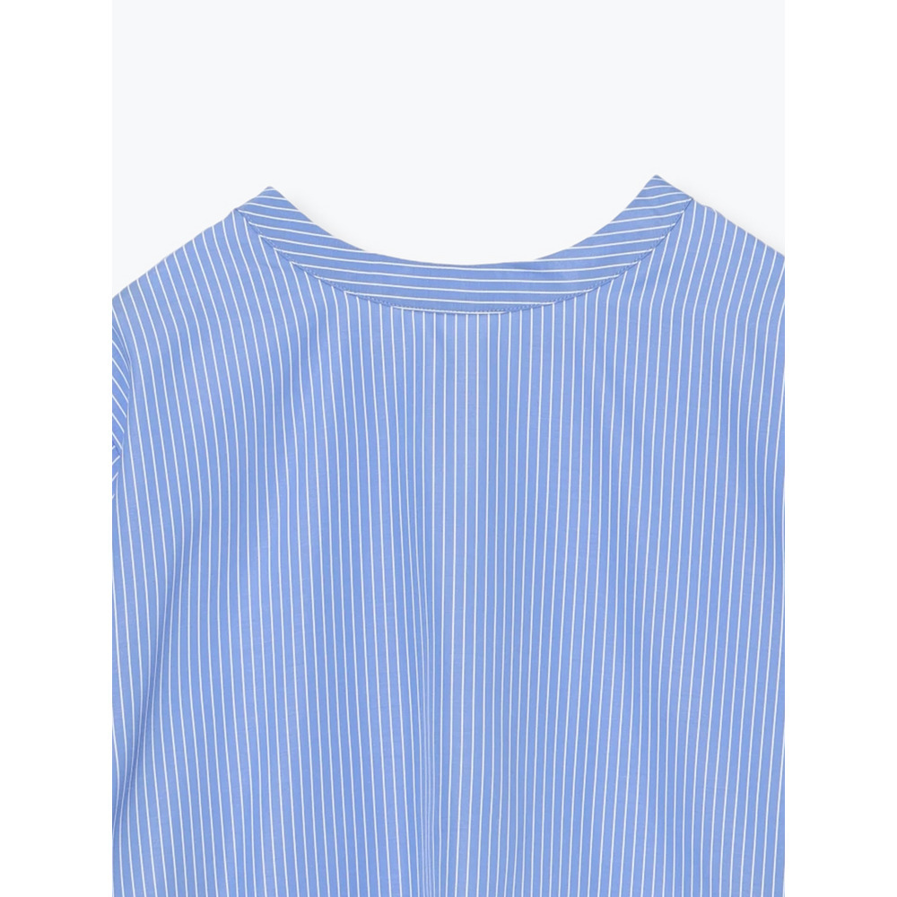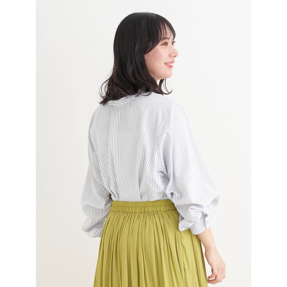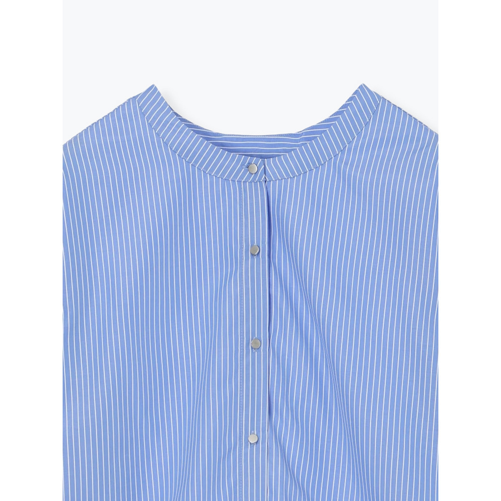 [2WAYスリーブ]ストライプ柄ノーカラーシャツ
