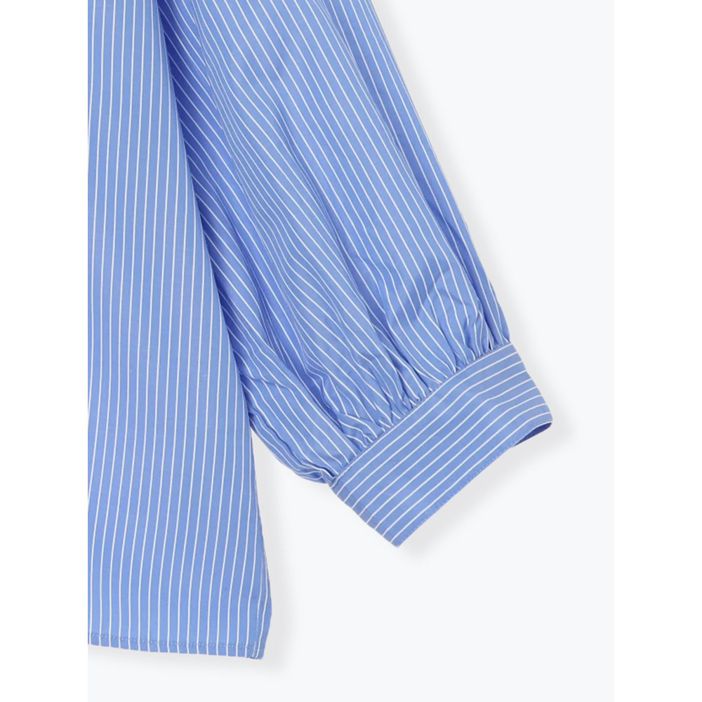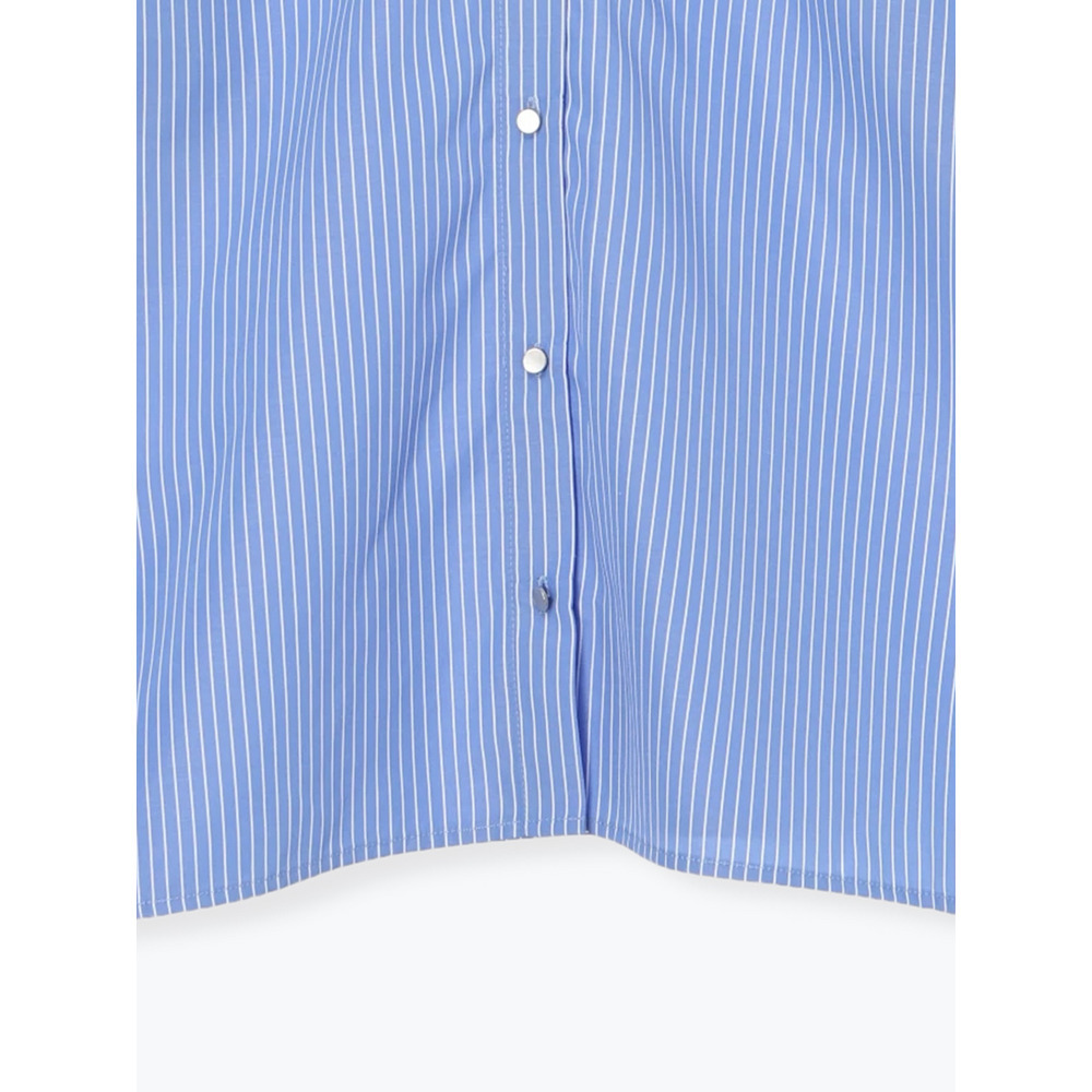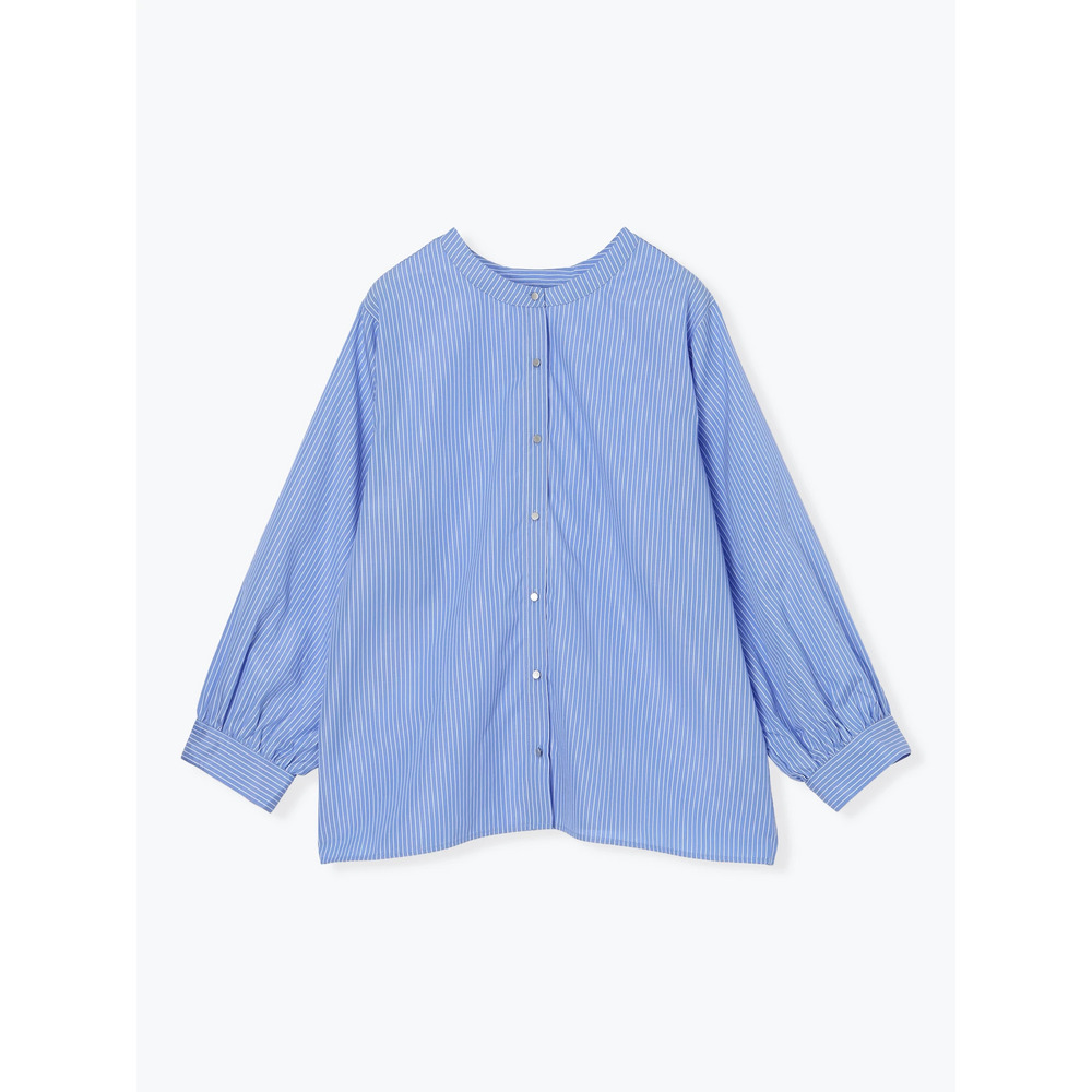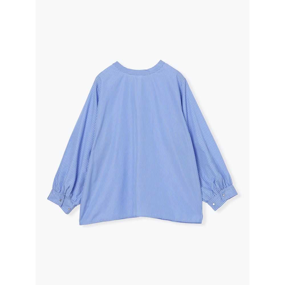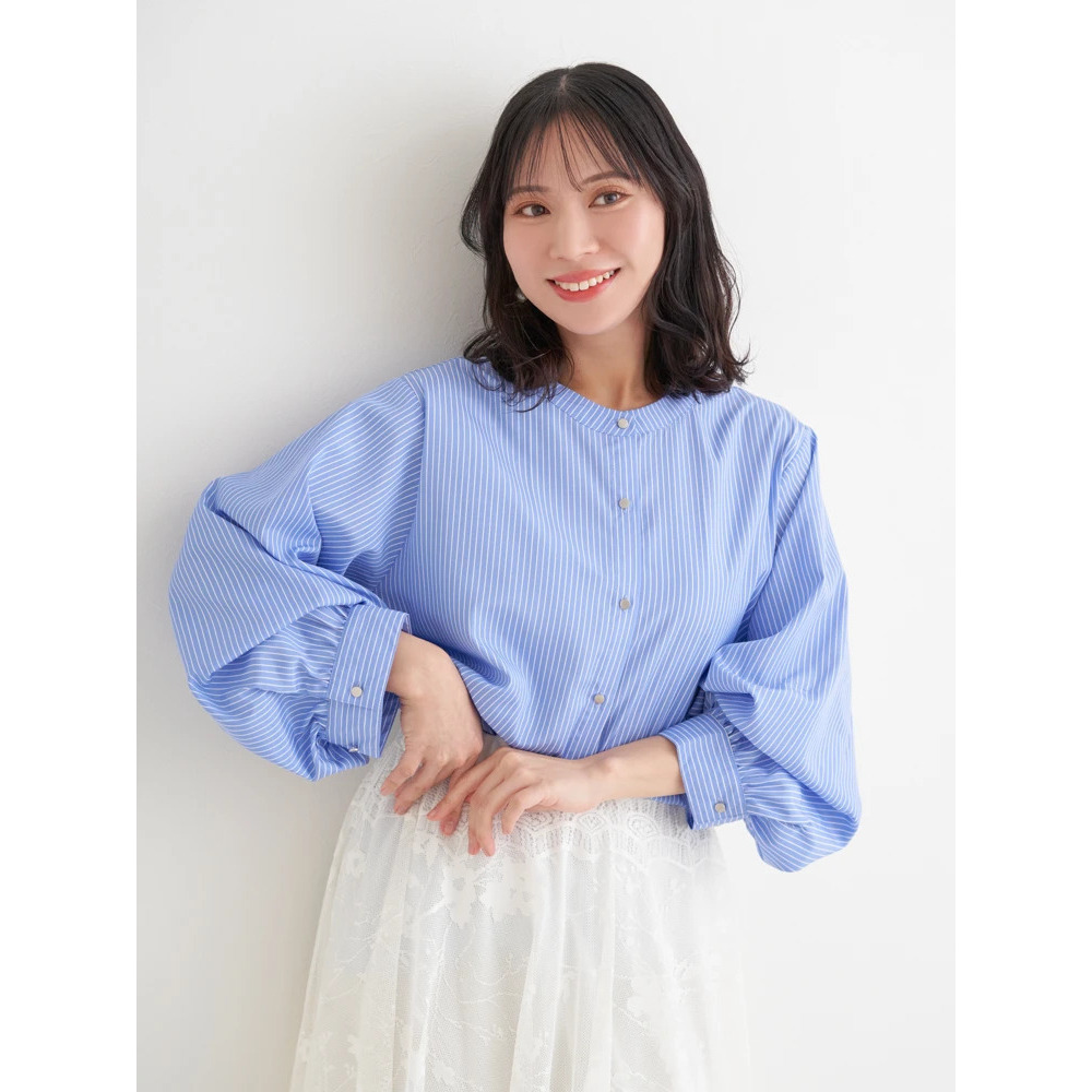 [2WAYスリーブ]ストライプ柄ノーカラーシャツ