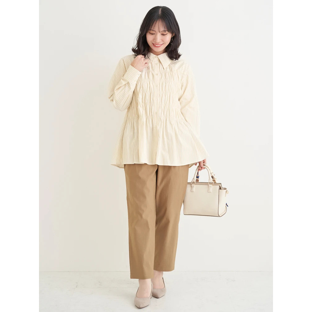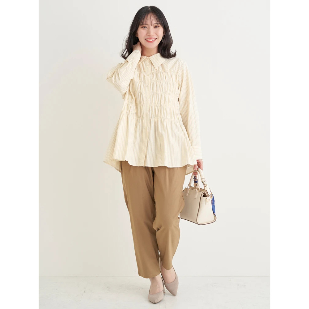・ウエスト下のタックが程よく立体感を生み出し、肉感を拾いにくいデザイン。