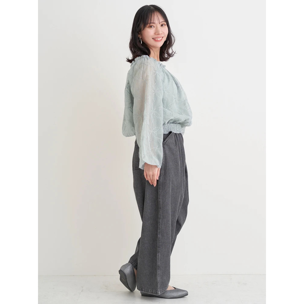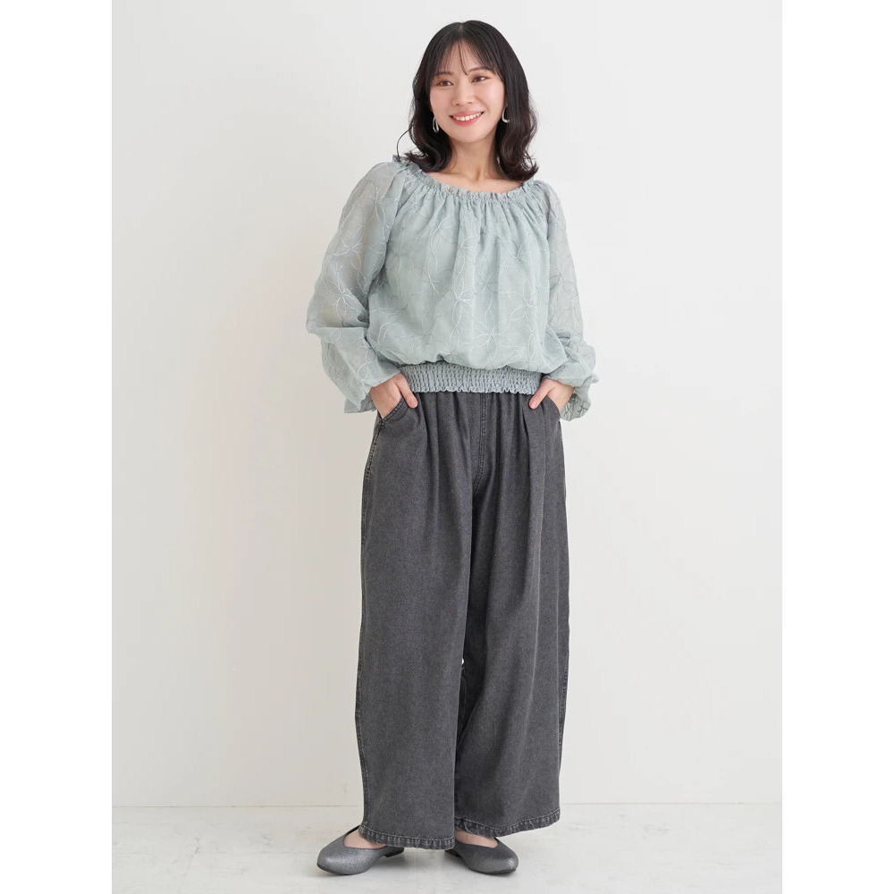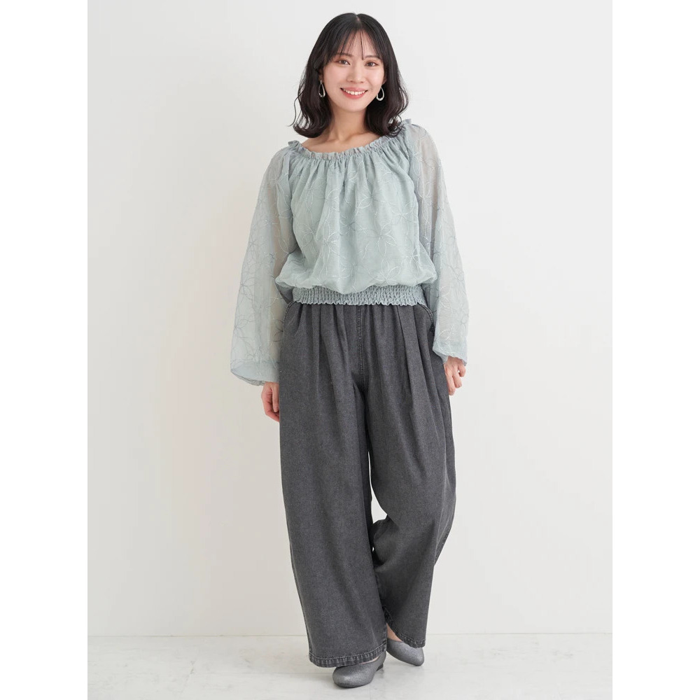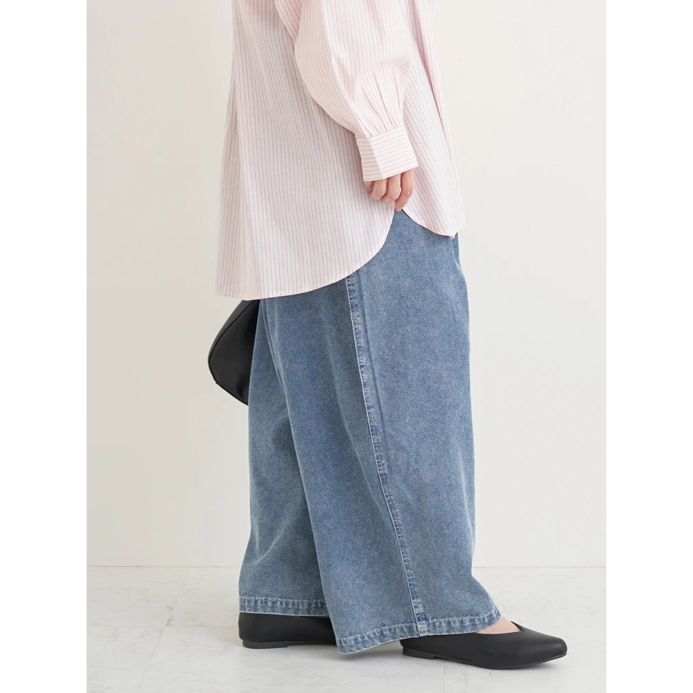・ワイドなシルエットが肉感をぼかし、体系カバー効果◎。