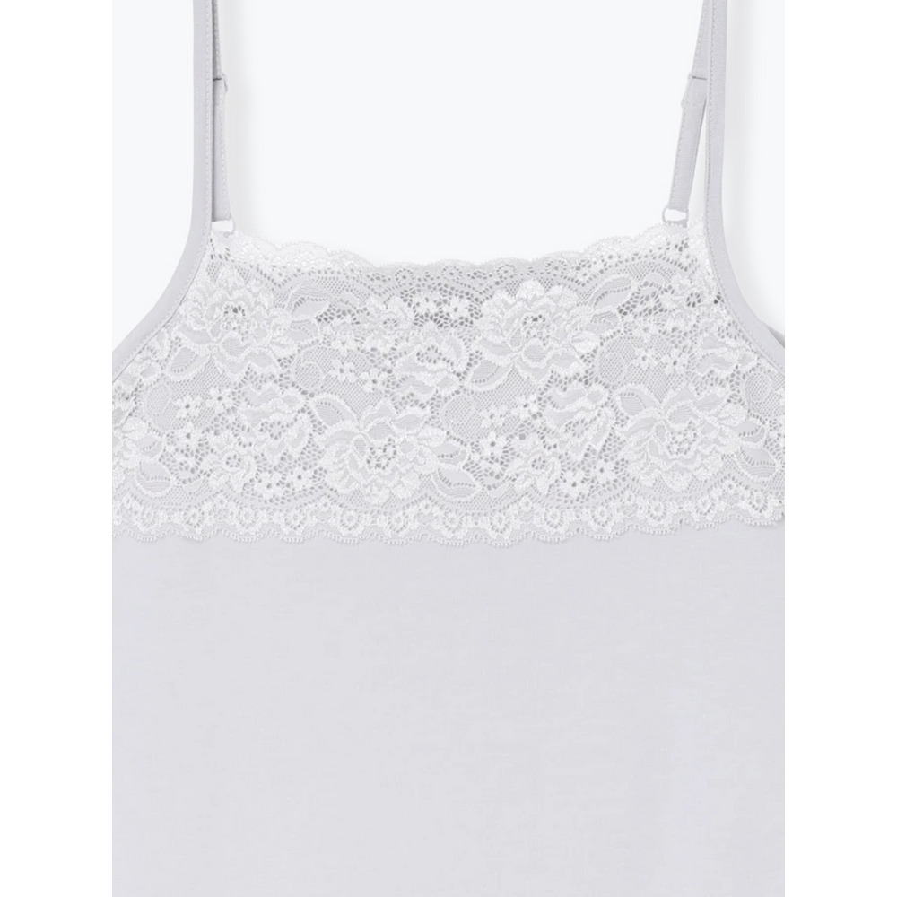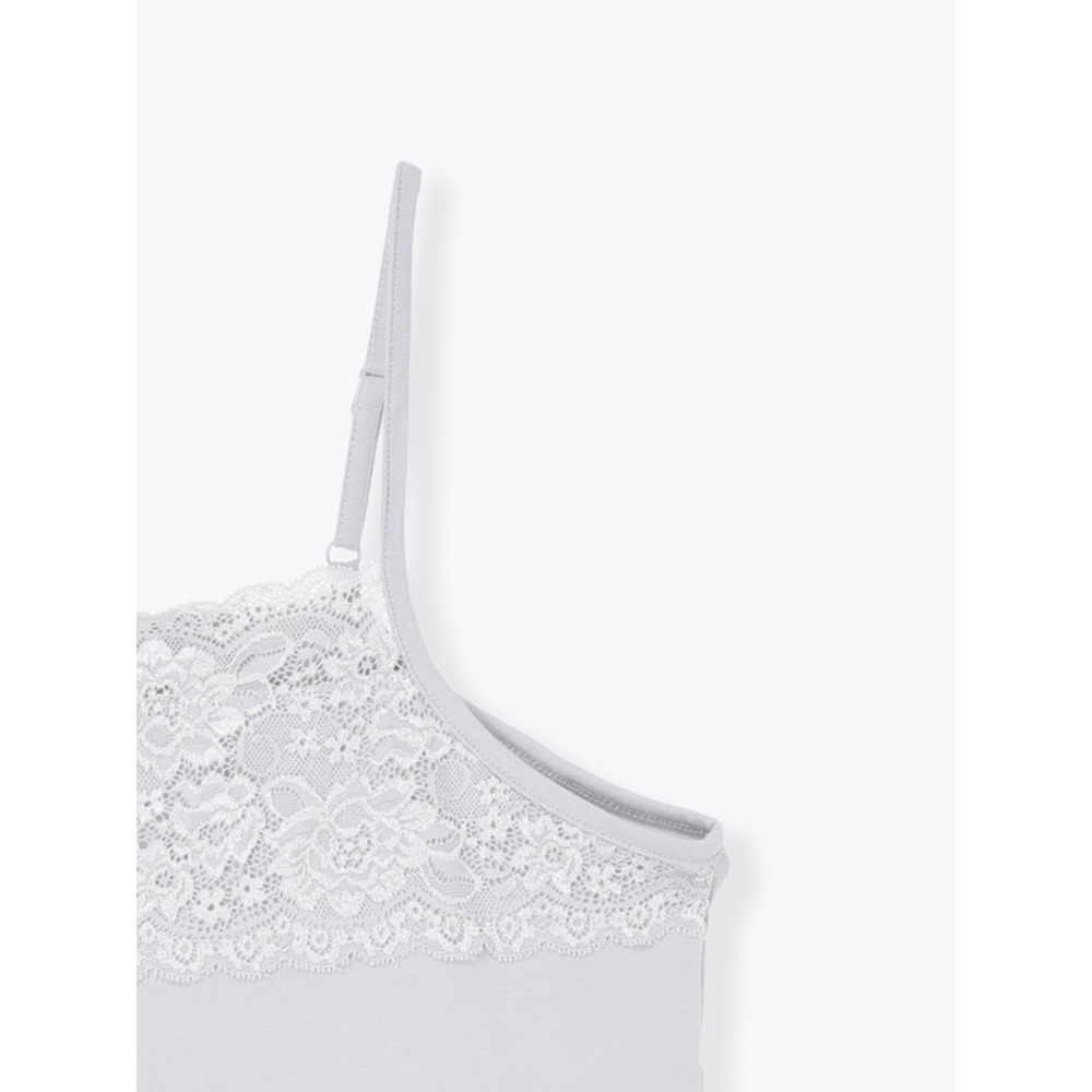・胸元にあしらった太幅のフラワーモチーフレースがレイヤードスタイルにフェミニンさをプラス。
