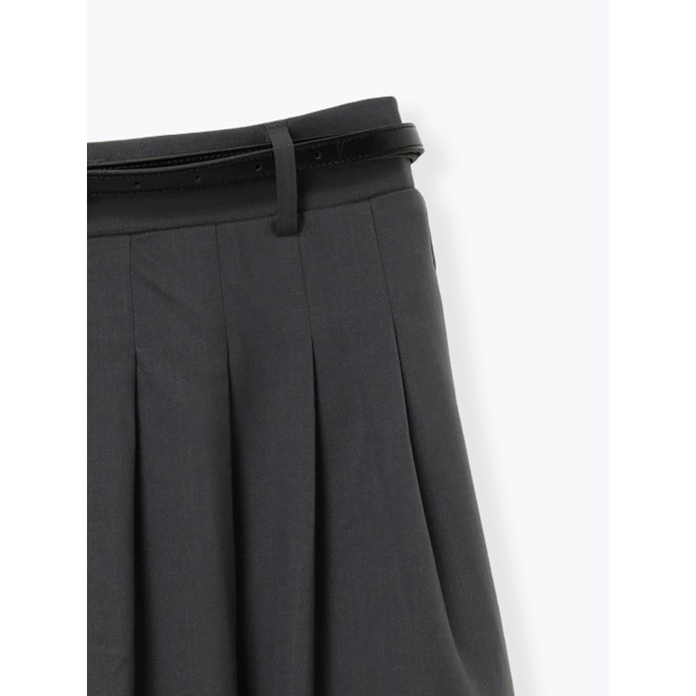 ベルト付きツイルタックワイドパンツ