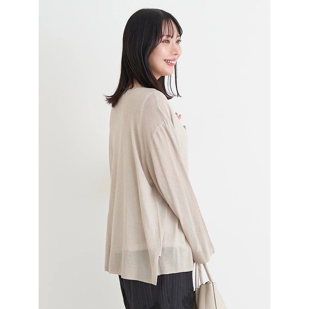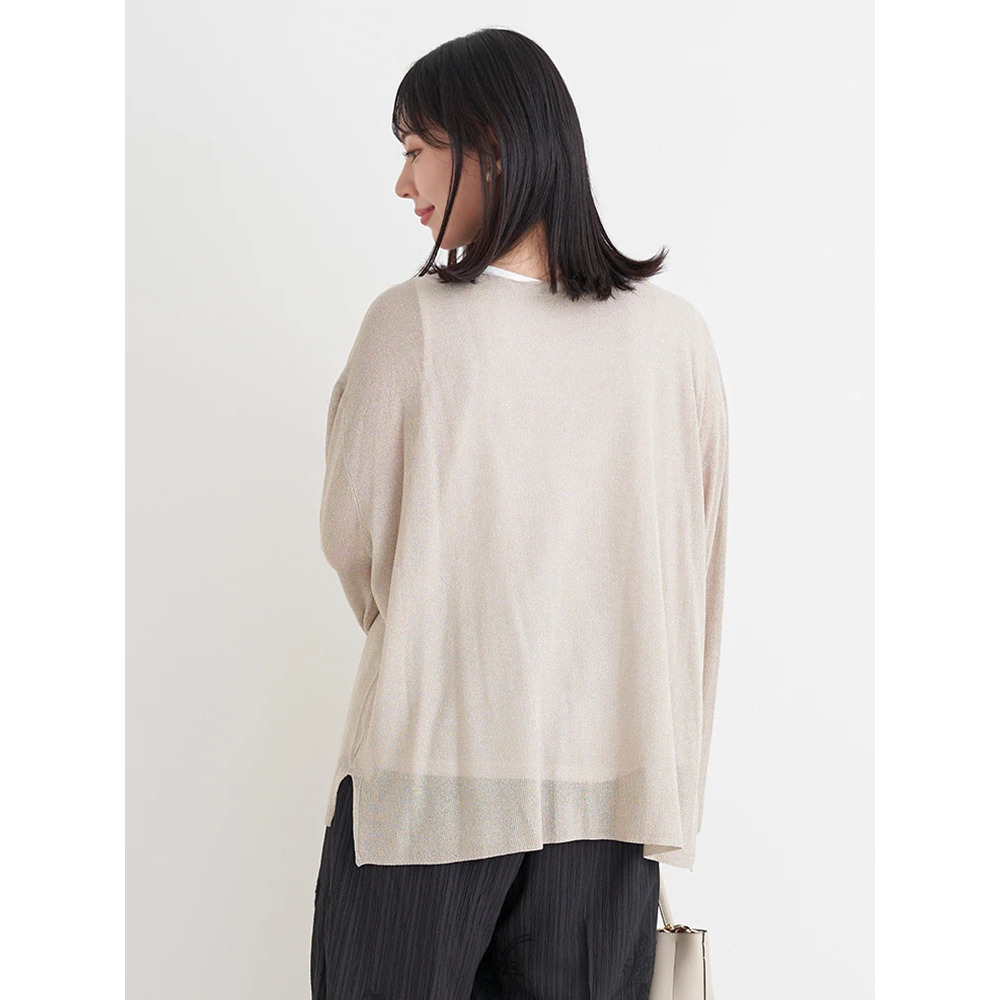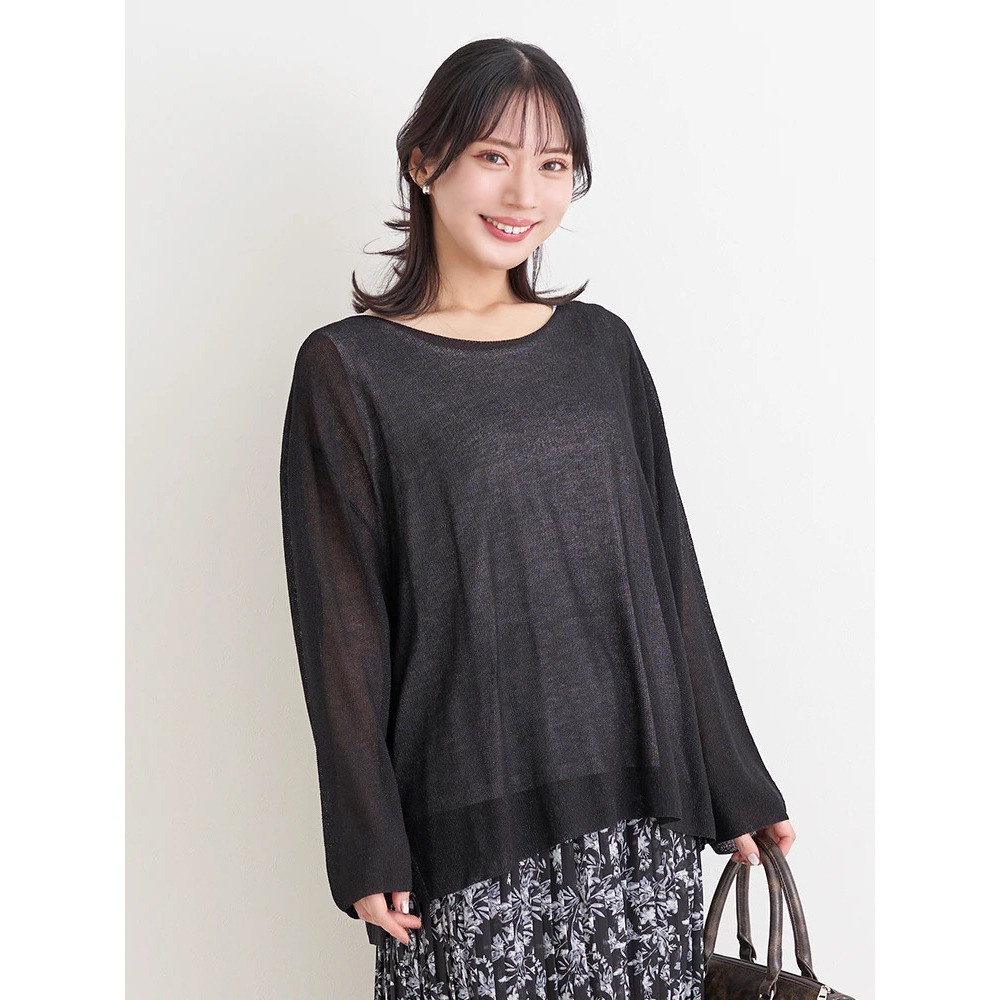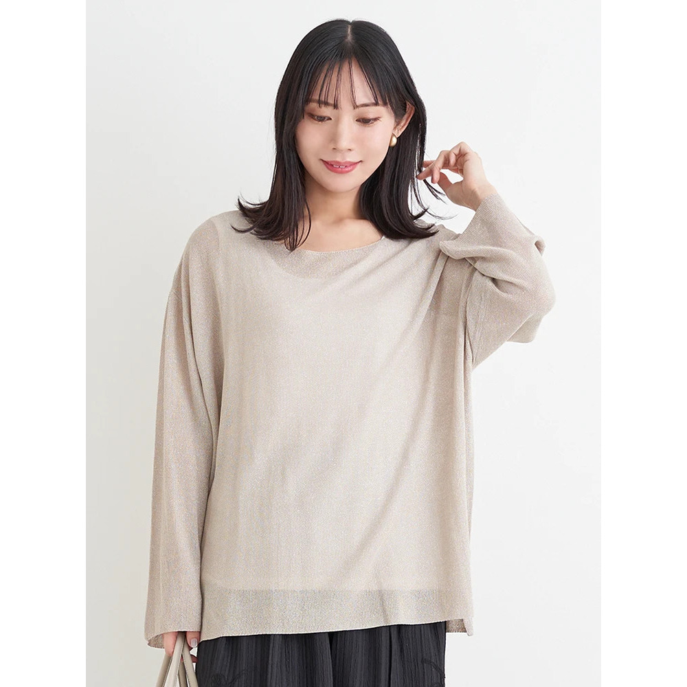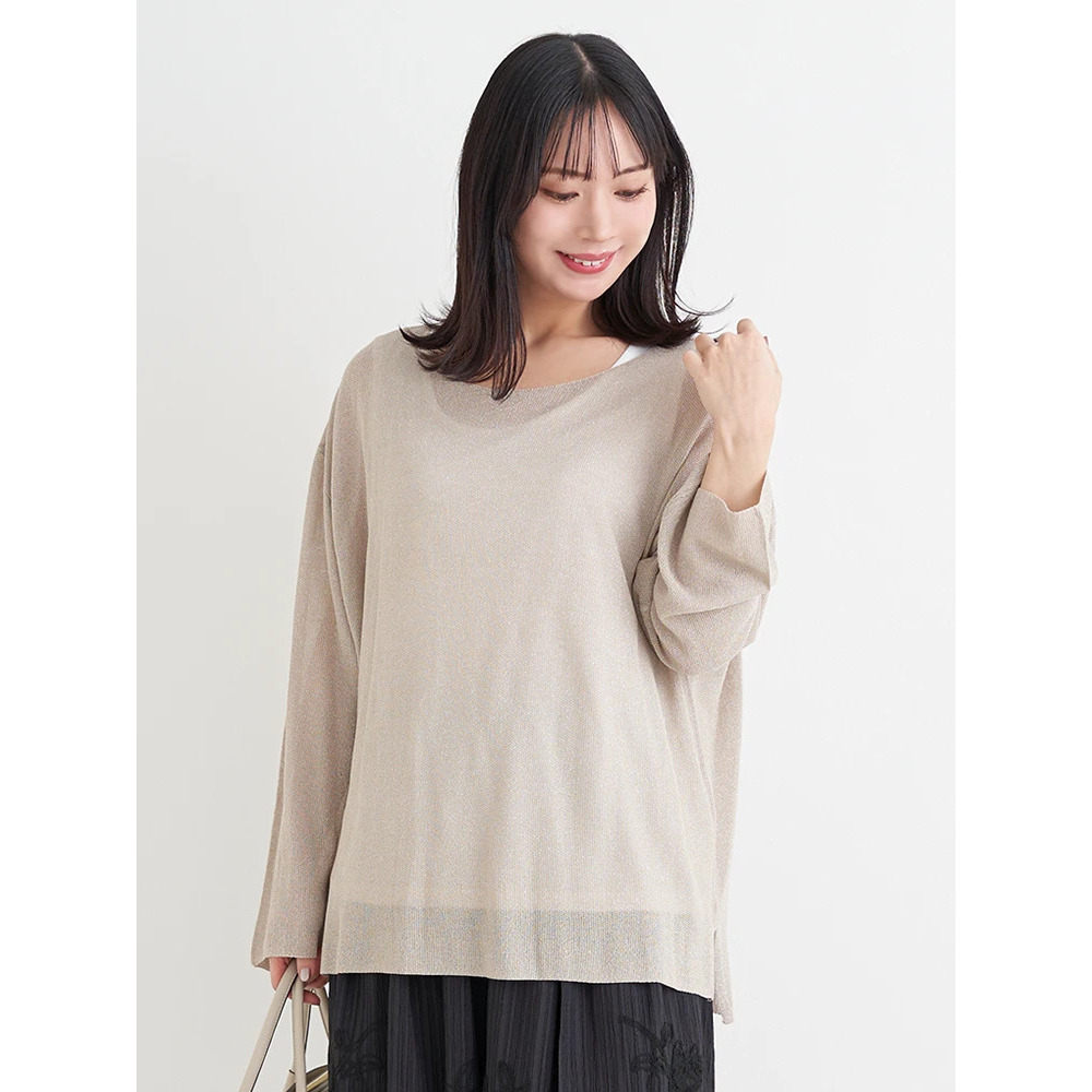 涼しげな透かし編みのラメ入りニット×やわらかく肌触りの良いレーヨン混素材。