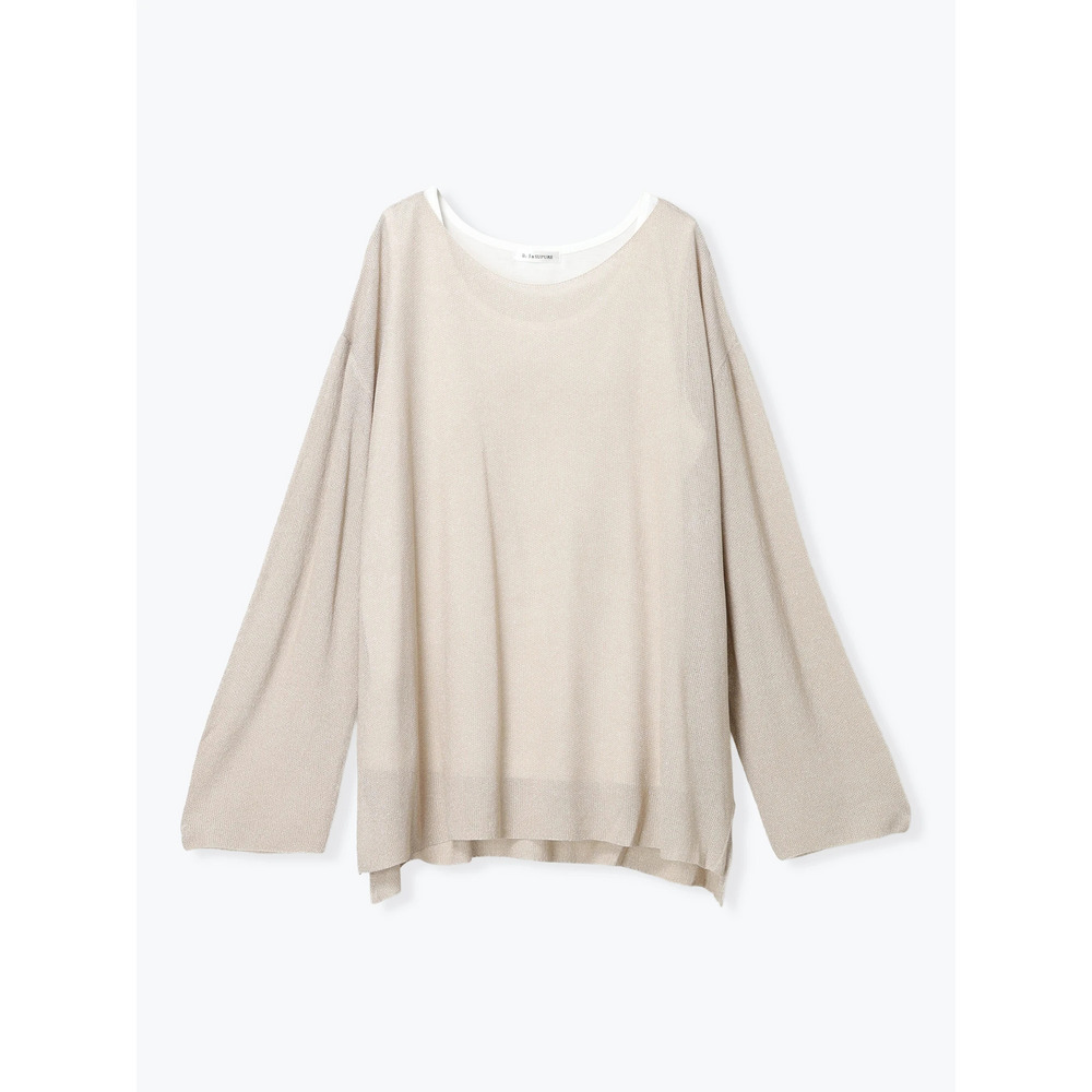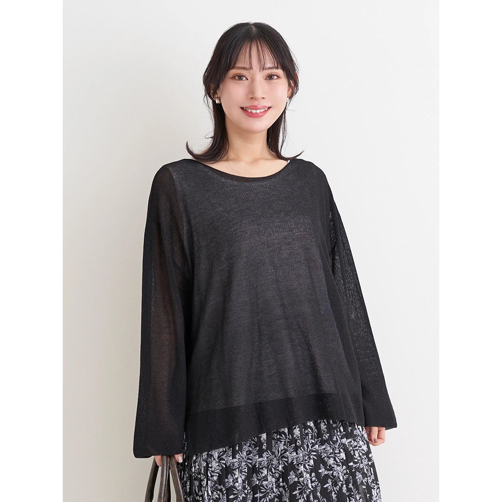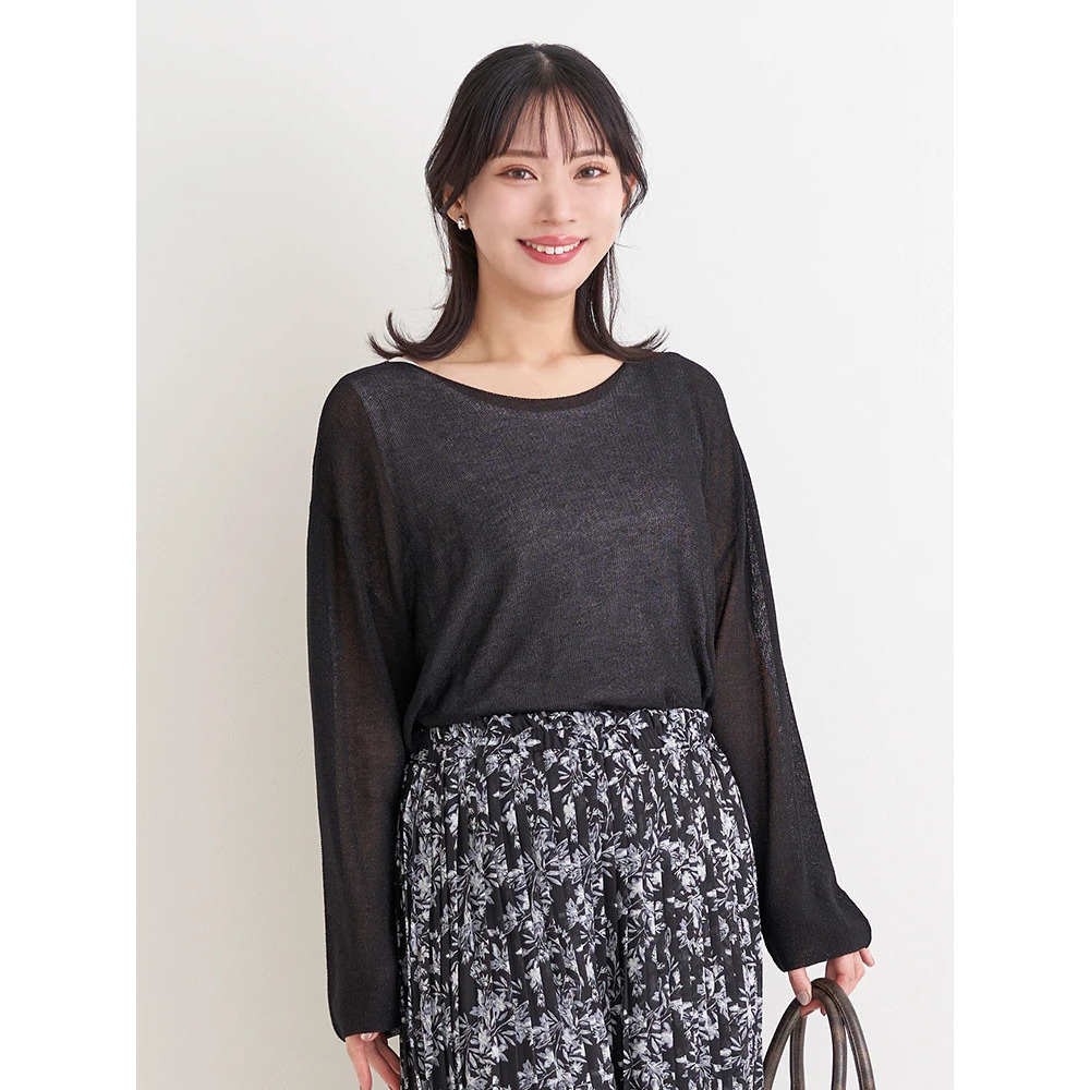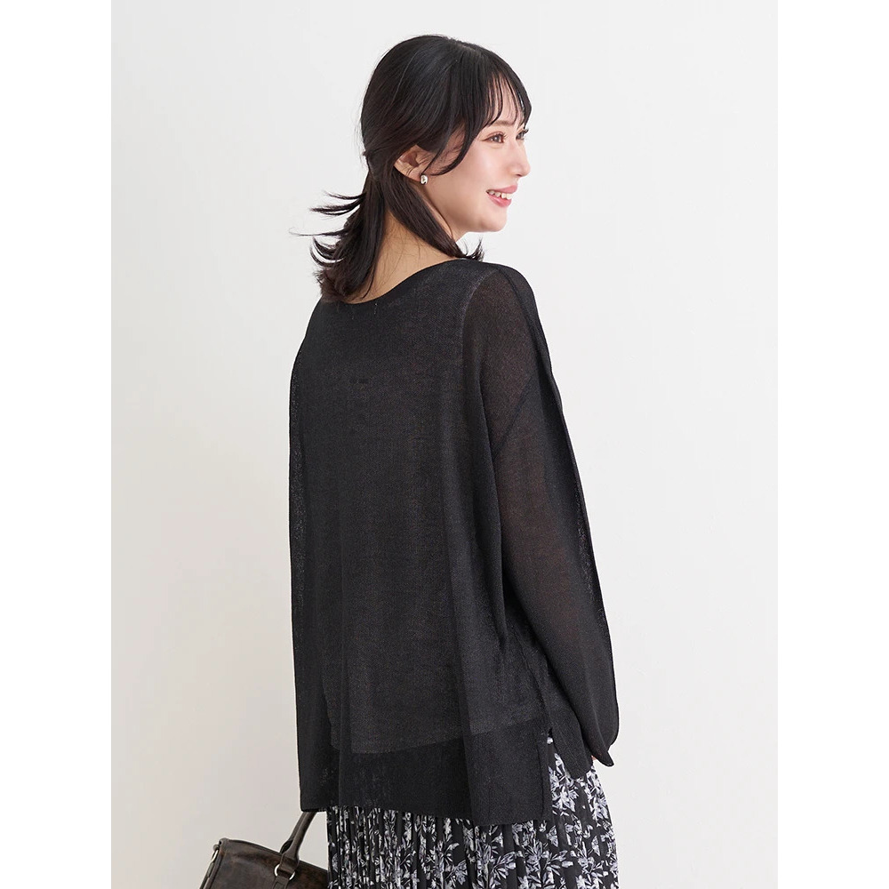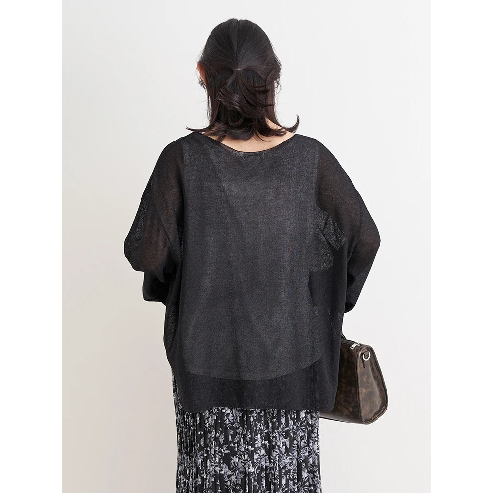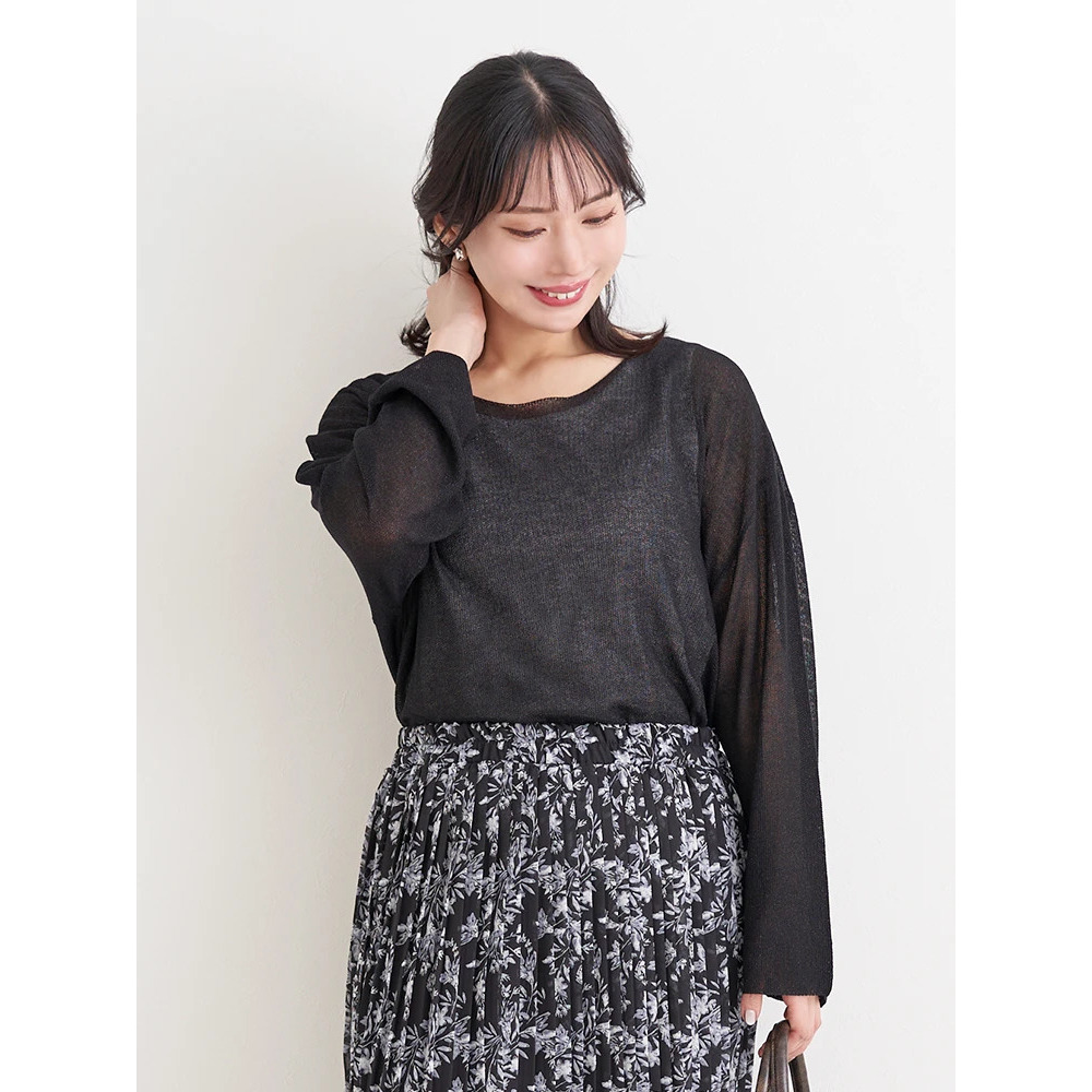 涼しげな透かし編みのラメ入りニット×やわらかく肌触りの良いレーヨン混素材。