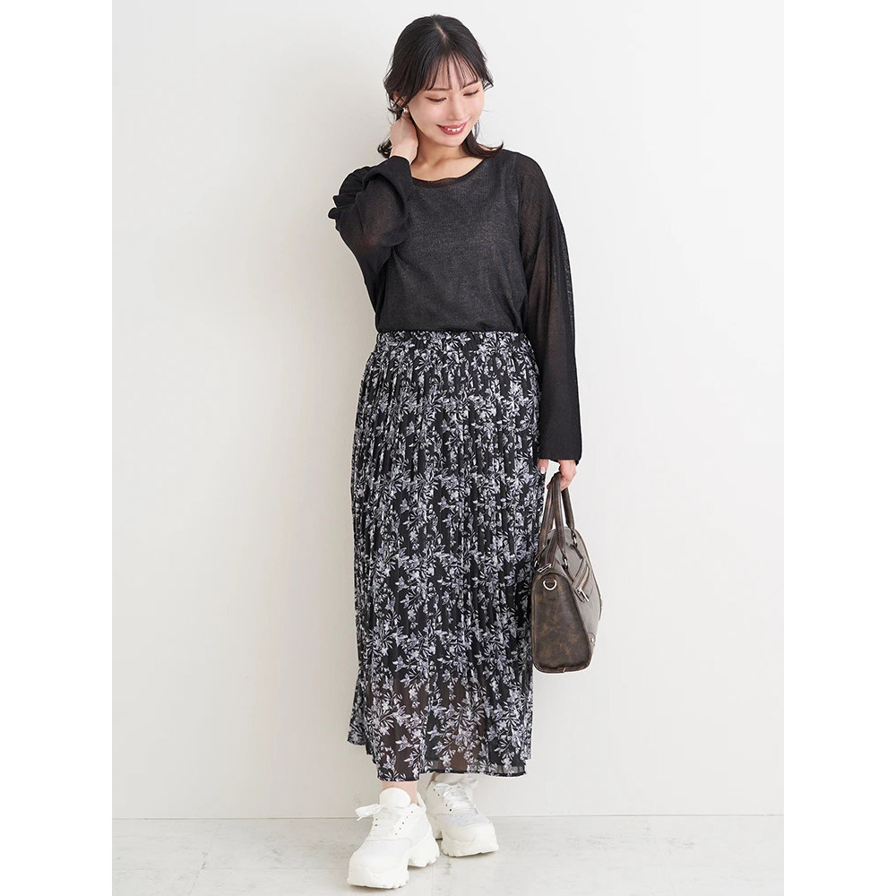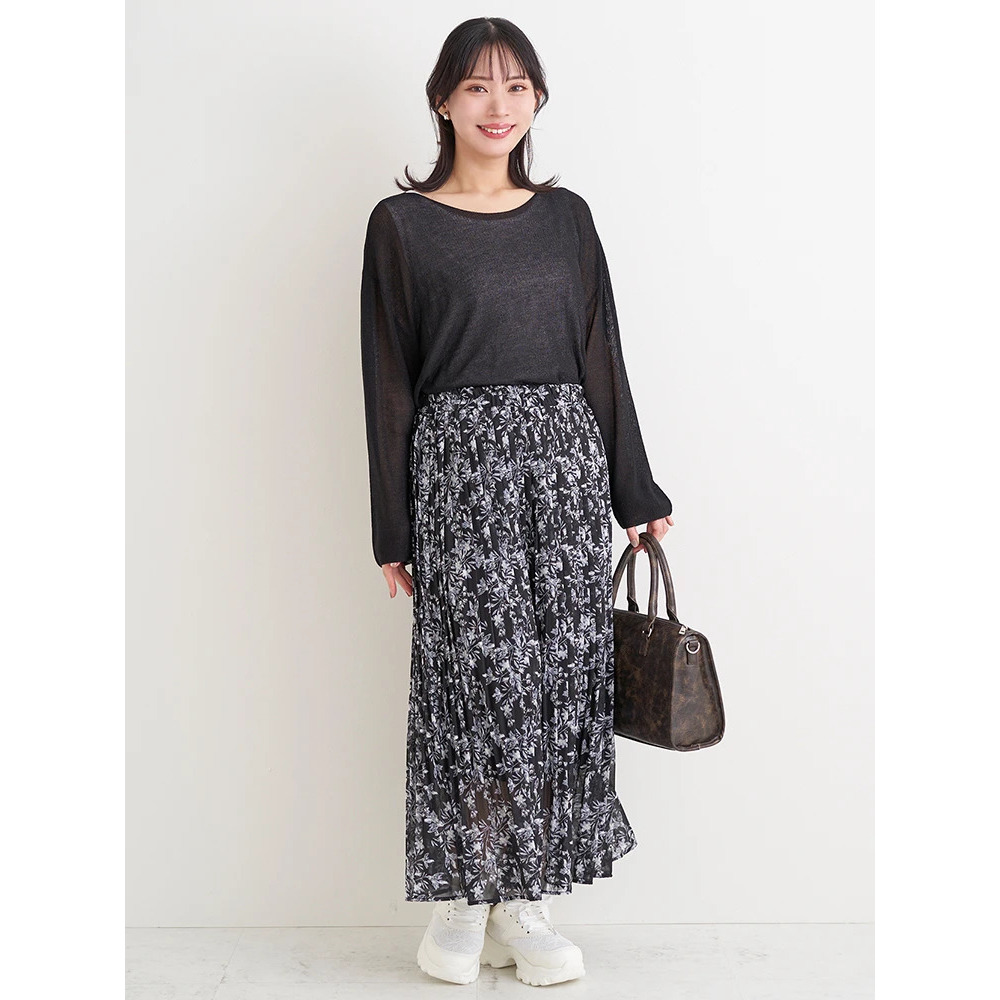 スカート合わせで甘さをプラスすればフェミニンなムード漂うリラックスコーデに。