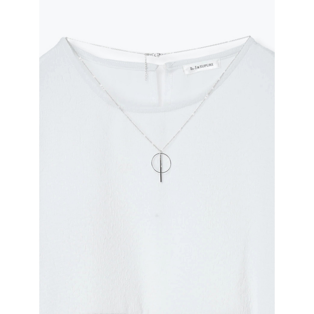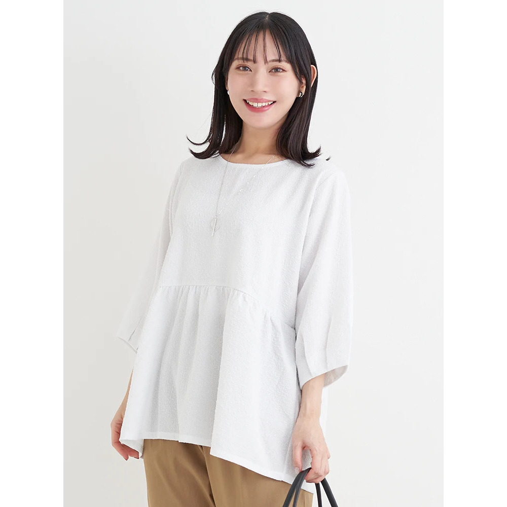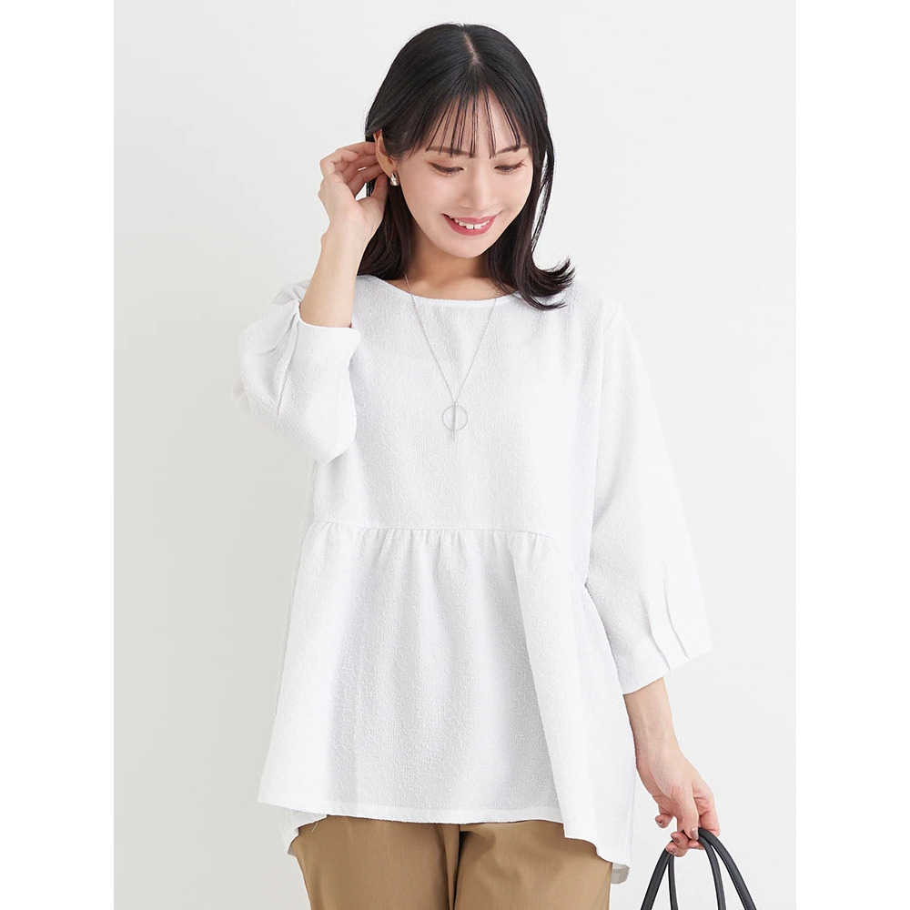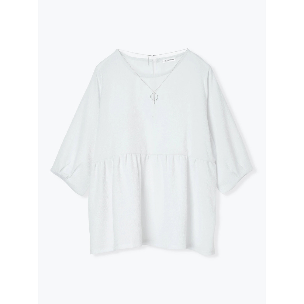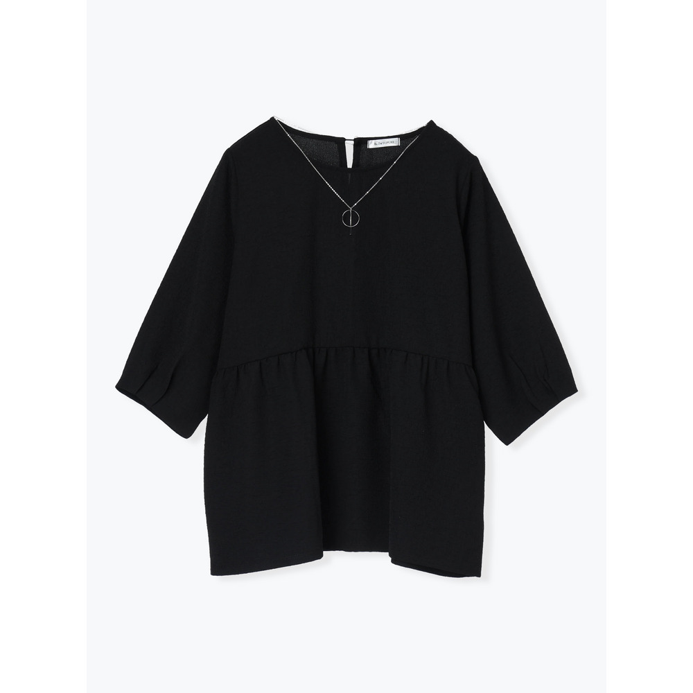 アクセサリー付き7分袖ぺプラムプルオーバー