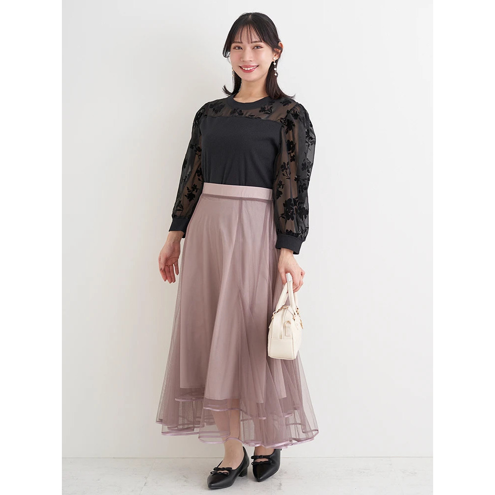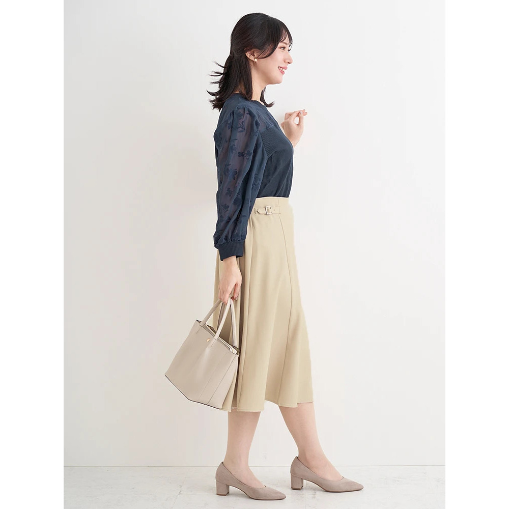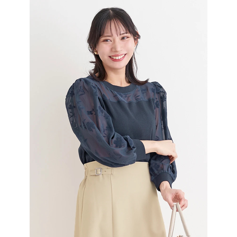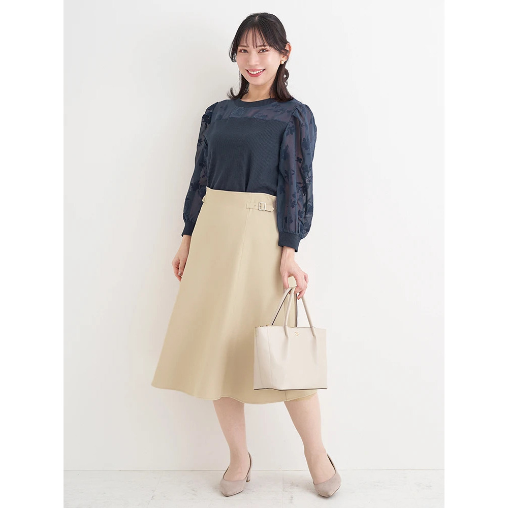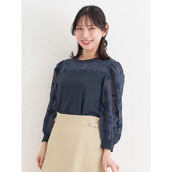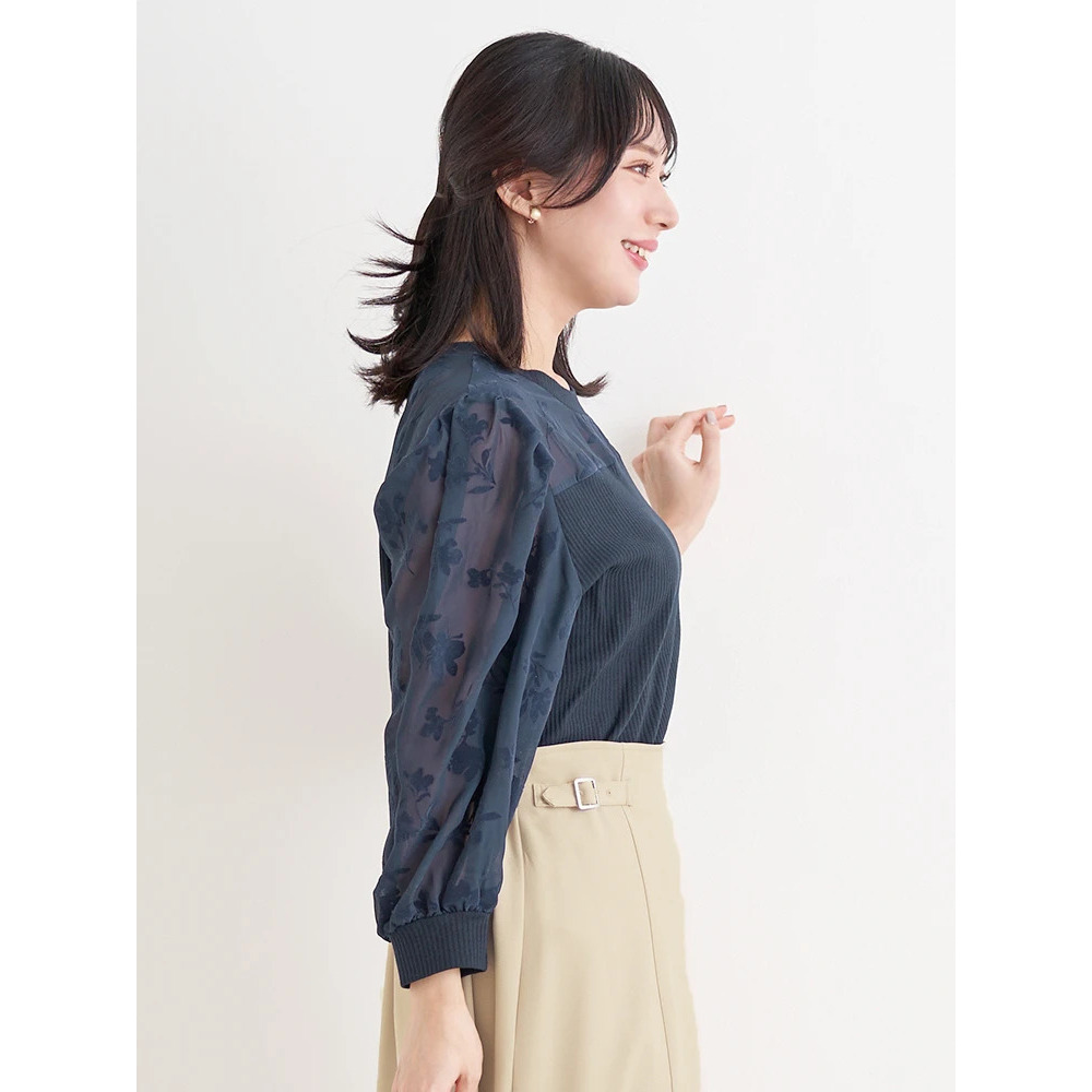 ・タックを寄せてふわっとさせた袖のデザインが、二の腕をカバーしつつ、コーディネートのポイントに。