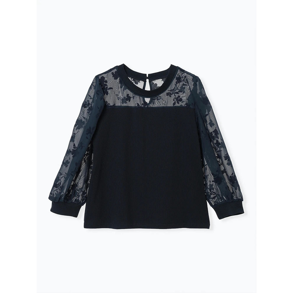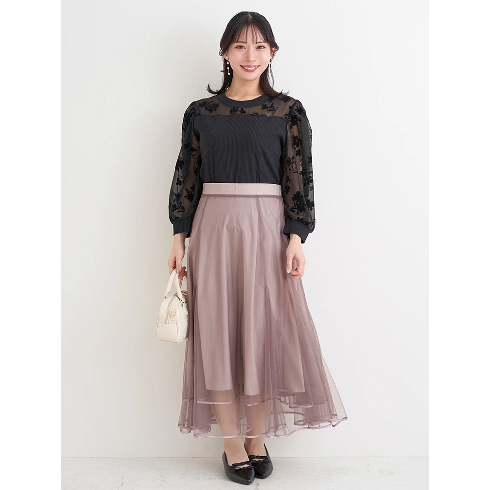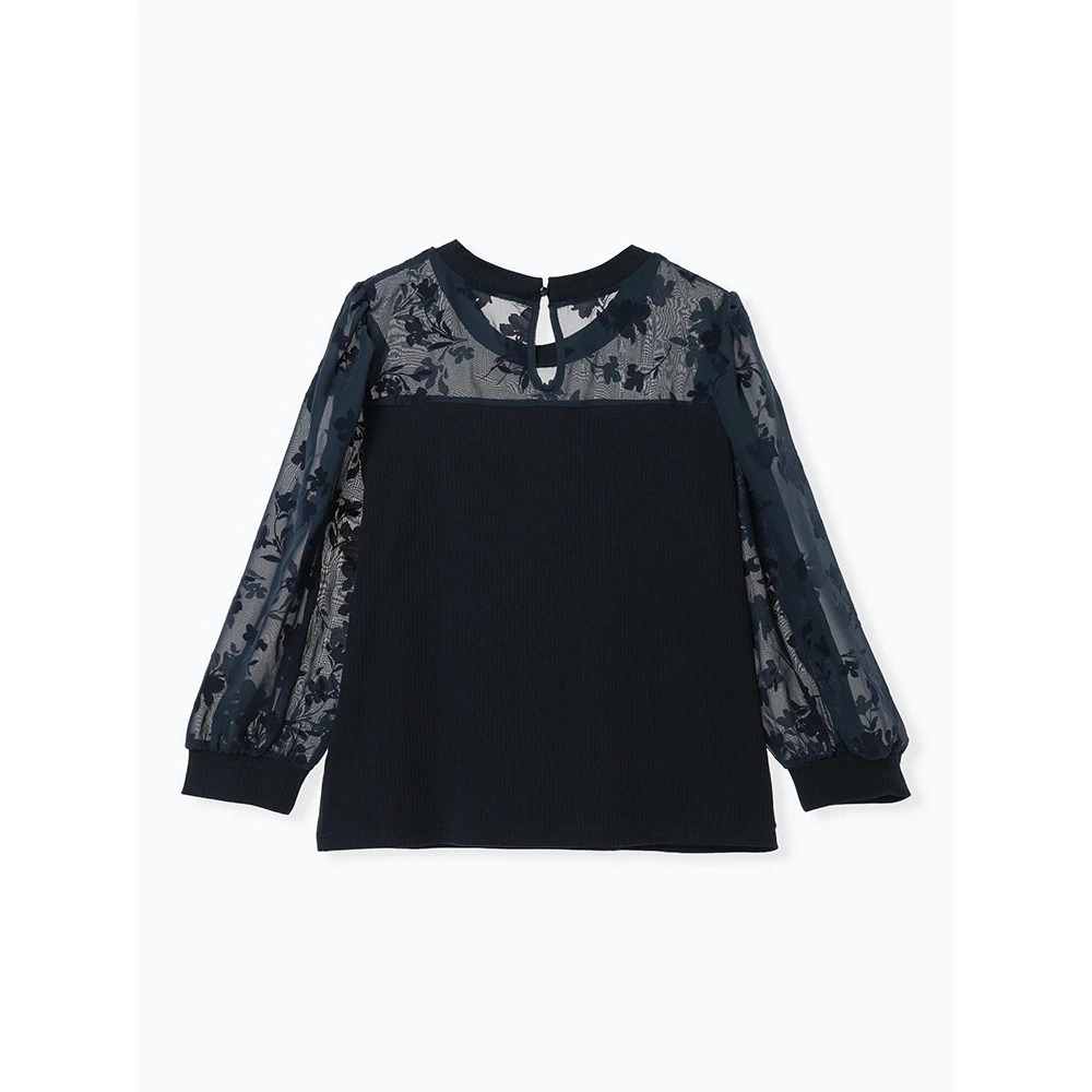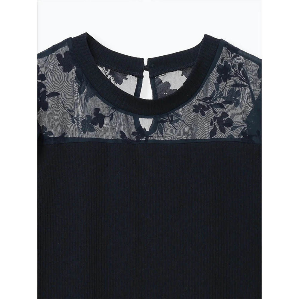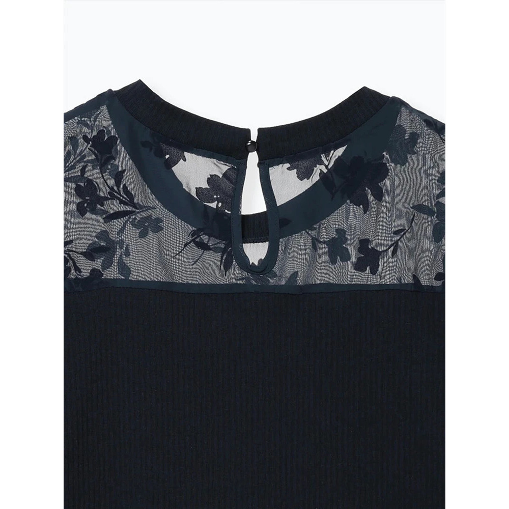 花柄のフロッキープリントを施したシアー素材と、伸縮性のあるテレコ素材を使用。
