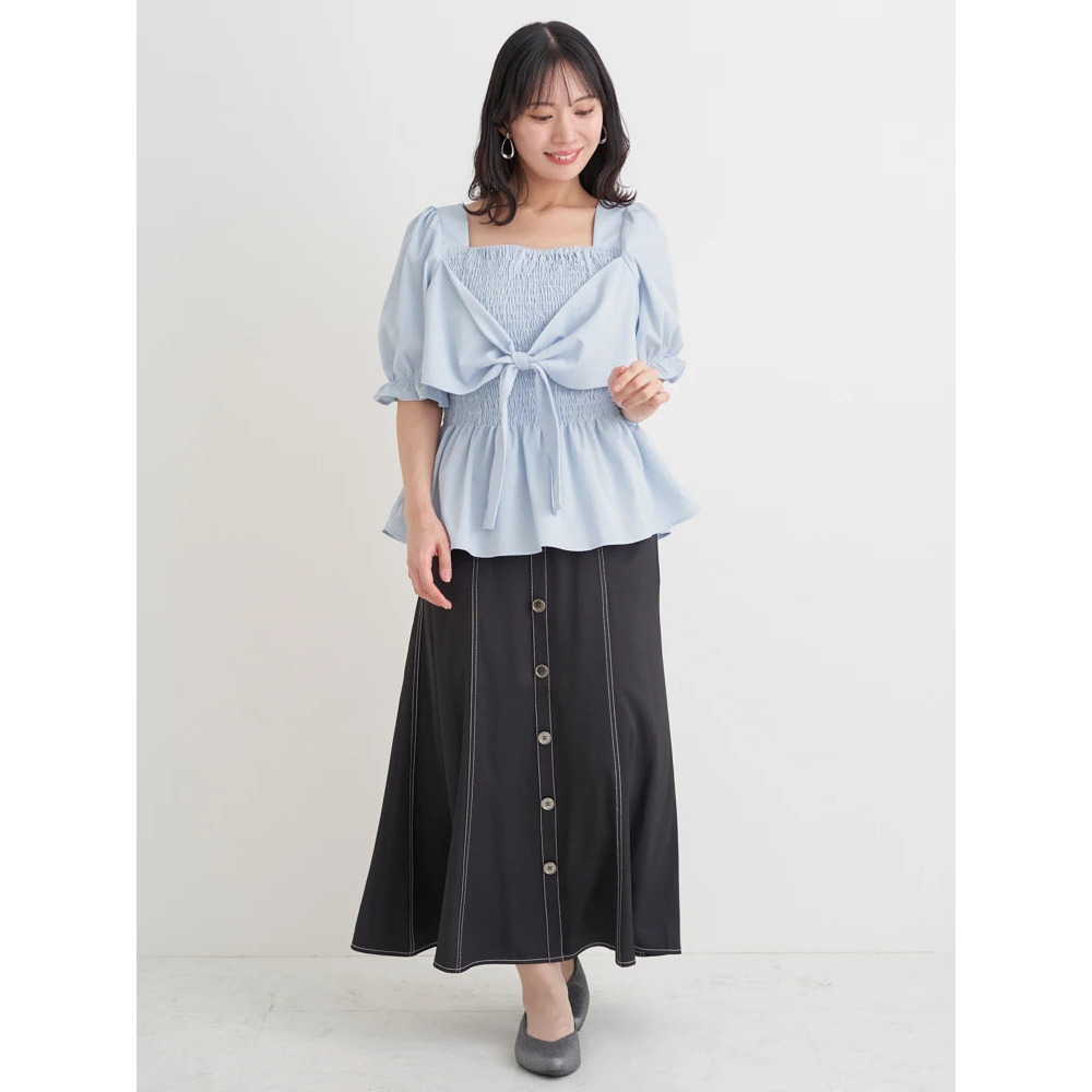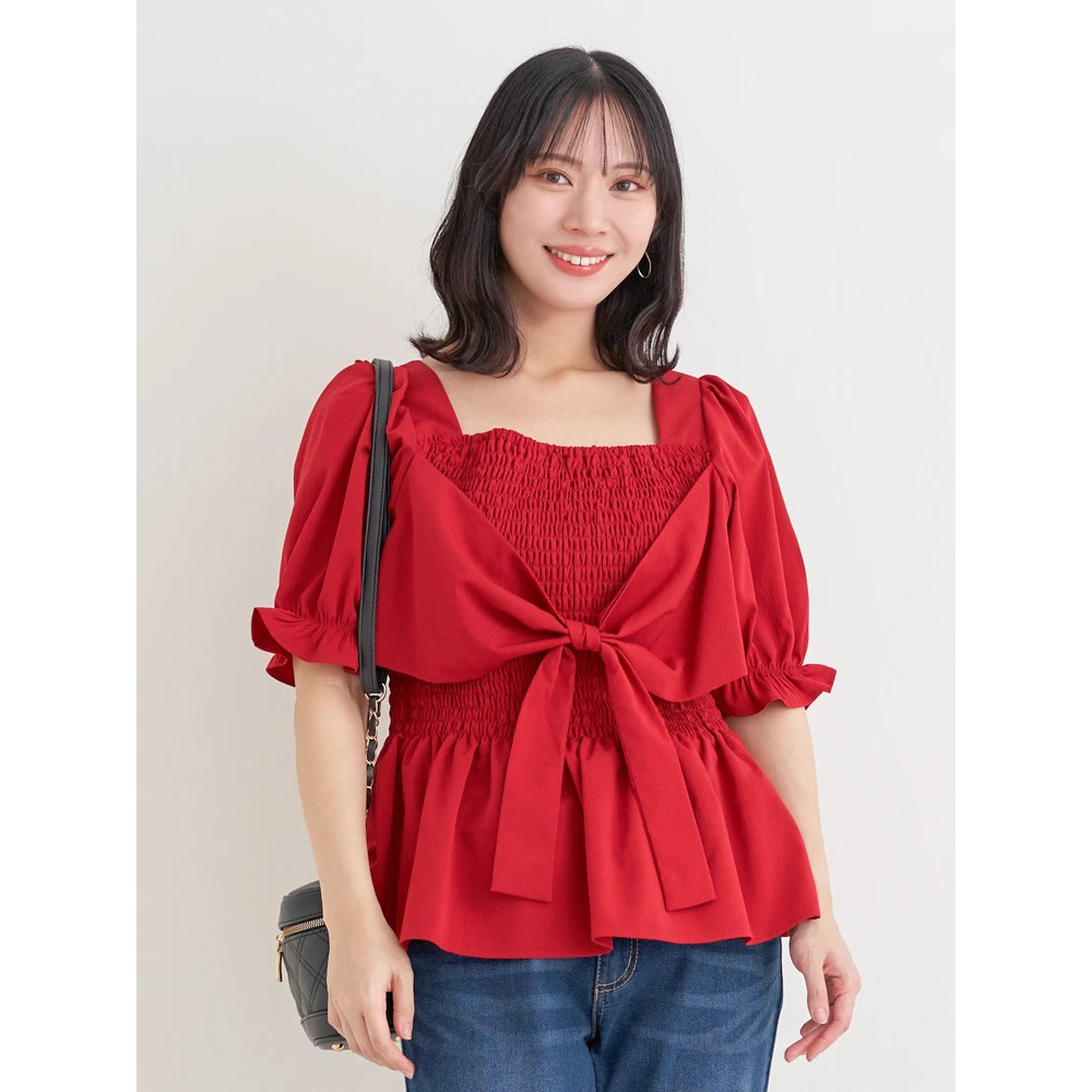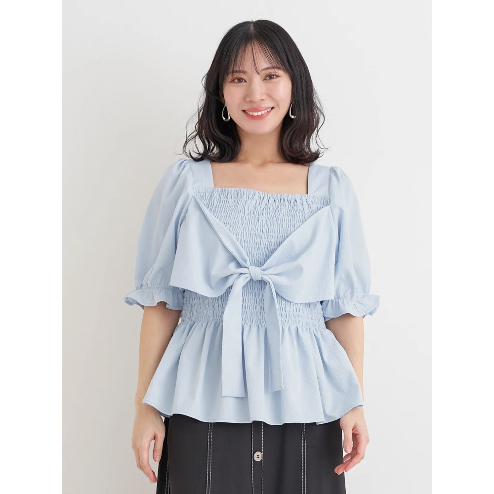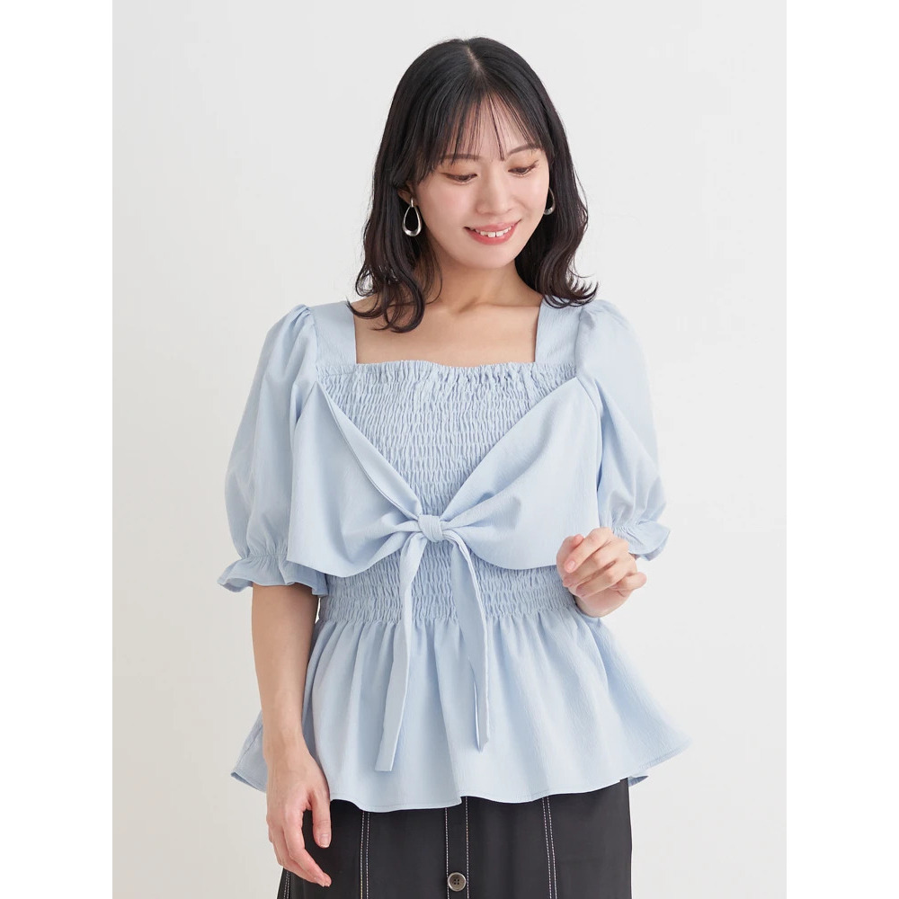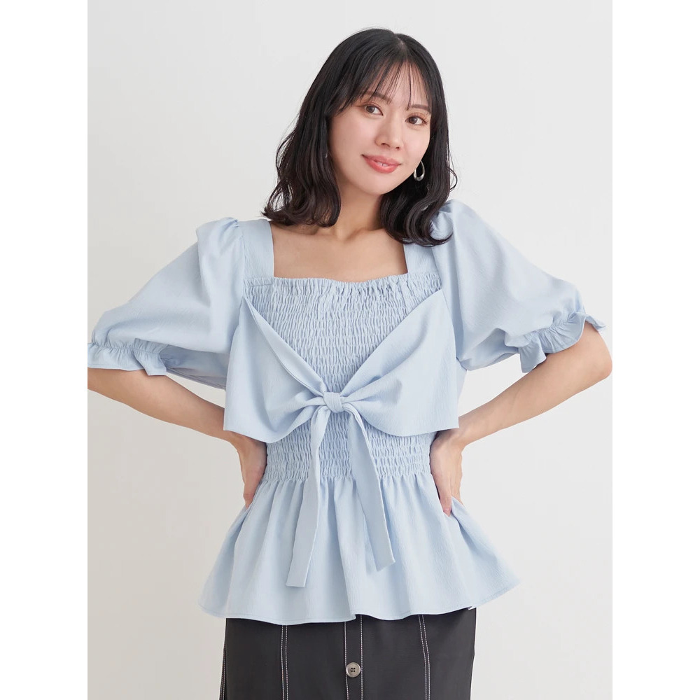 シャーリングリボンブラウス