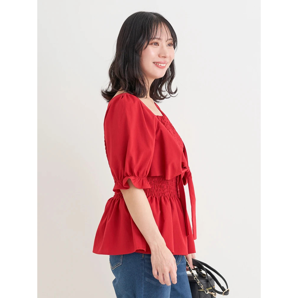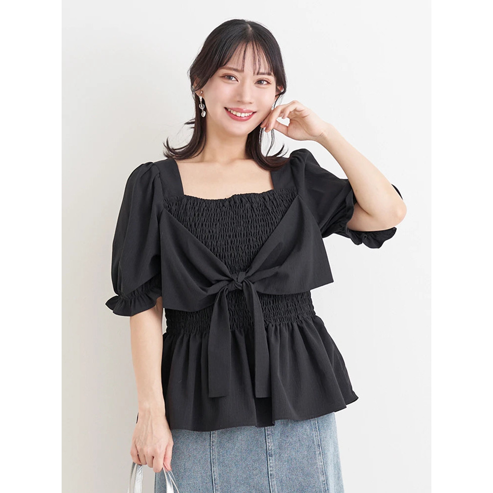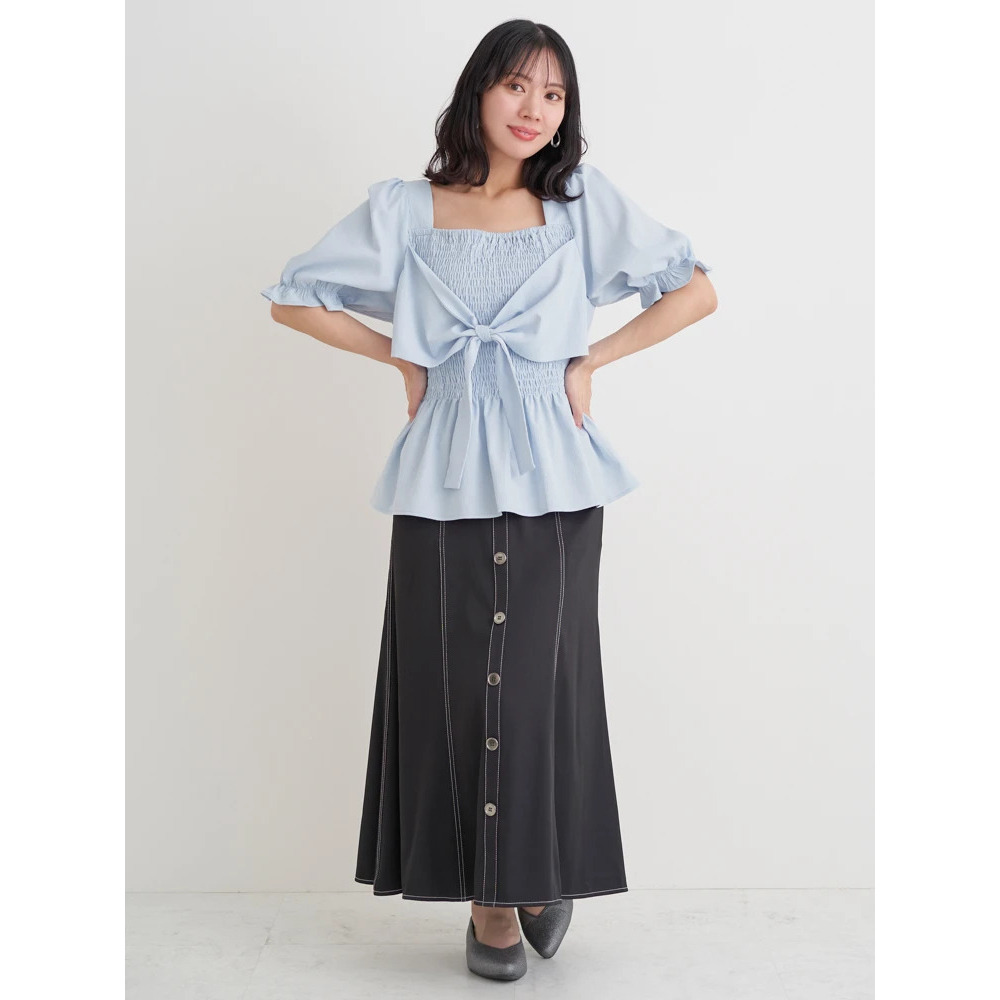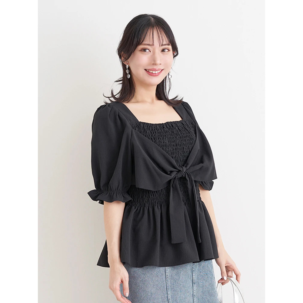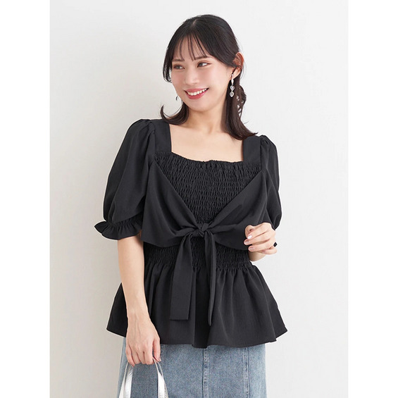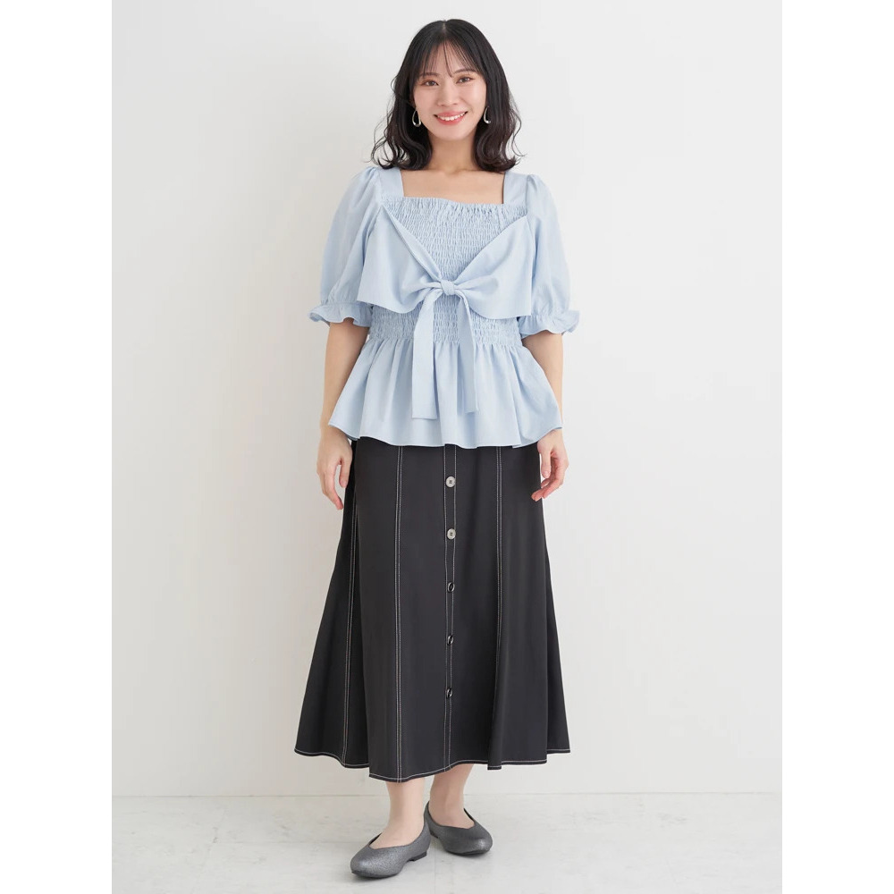 シャーリングリボンブラウス