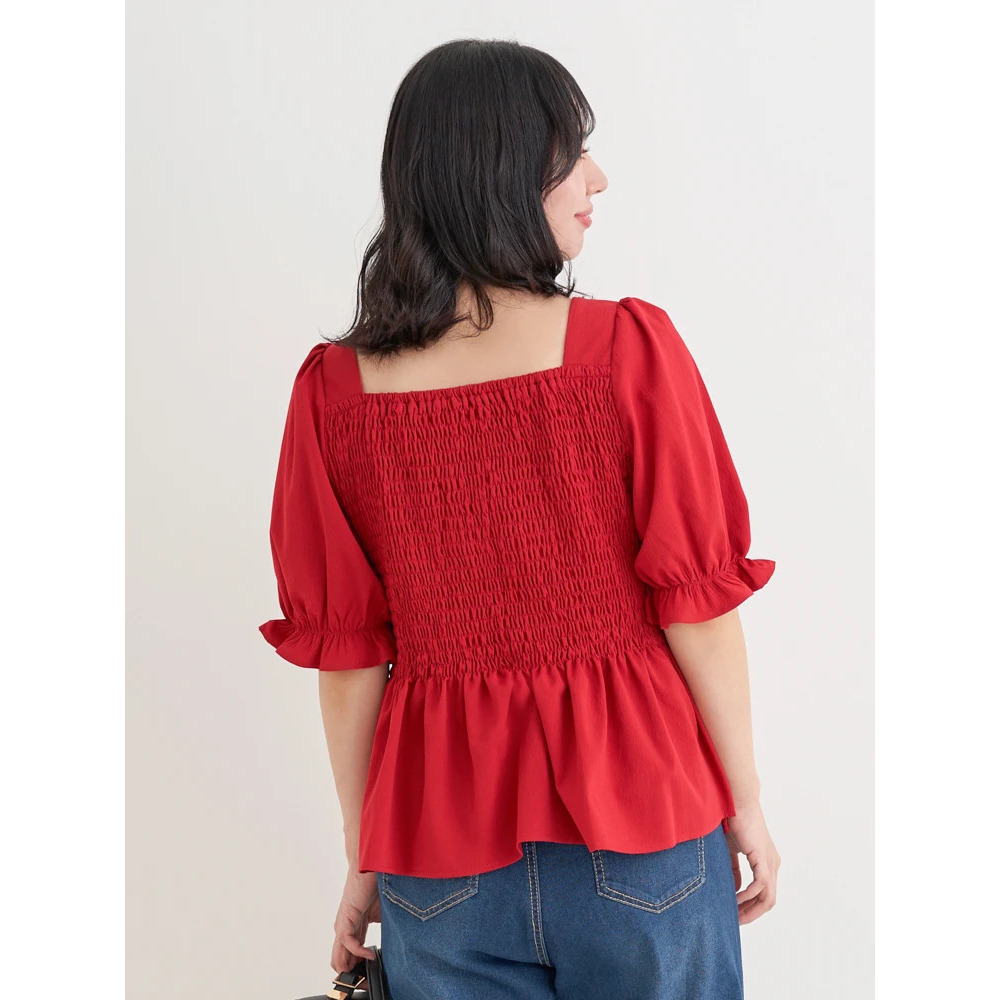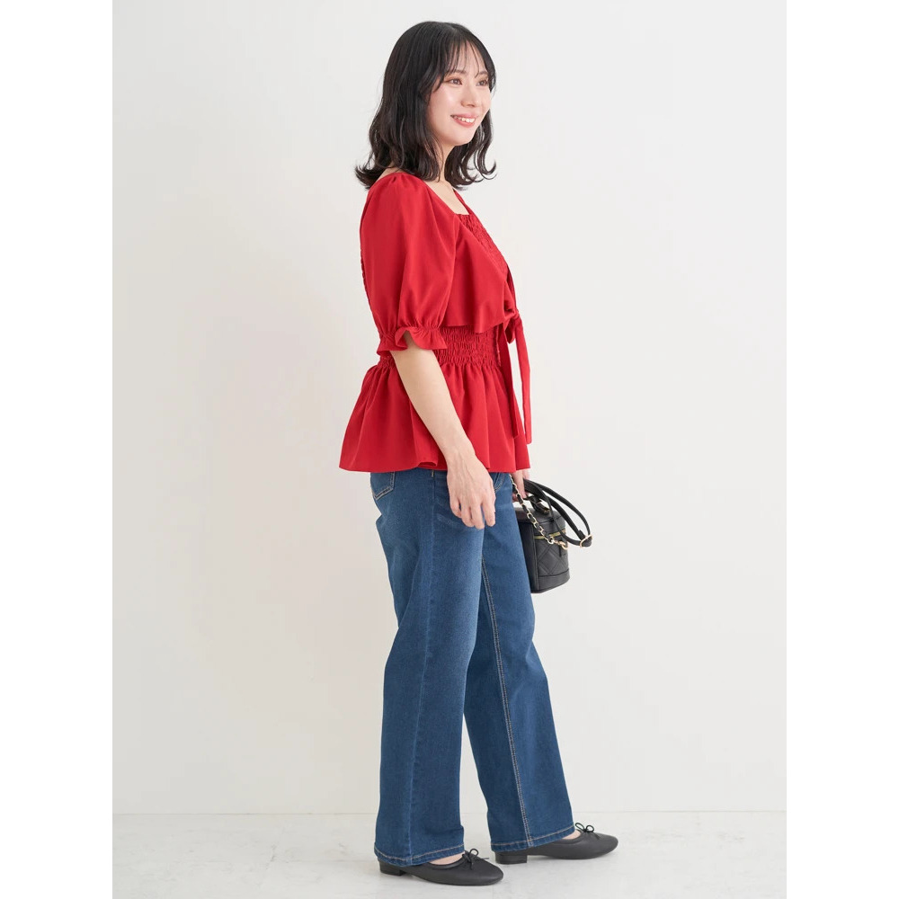 ・胸元はシャーリングで伸縮性があり、引き締め効果もありながら着心地がよいのも嬉しいポイント♡