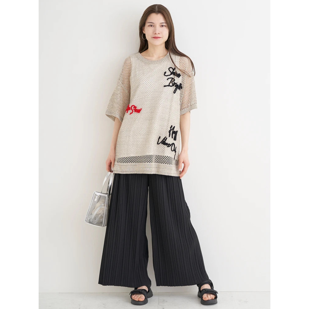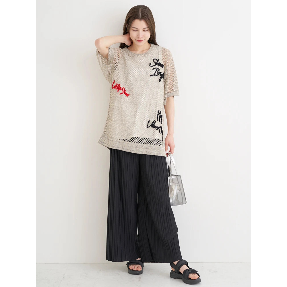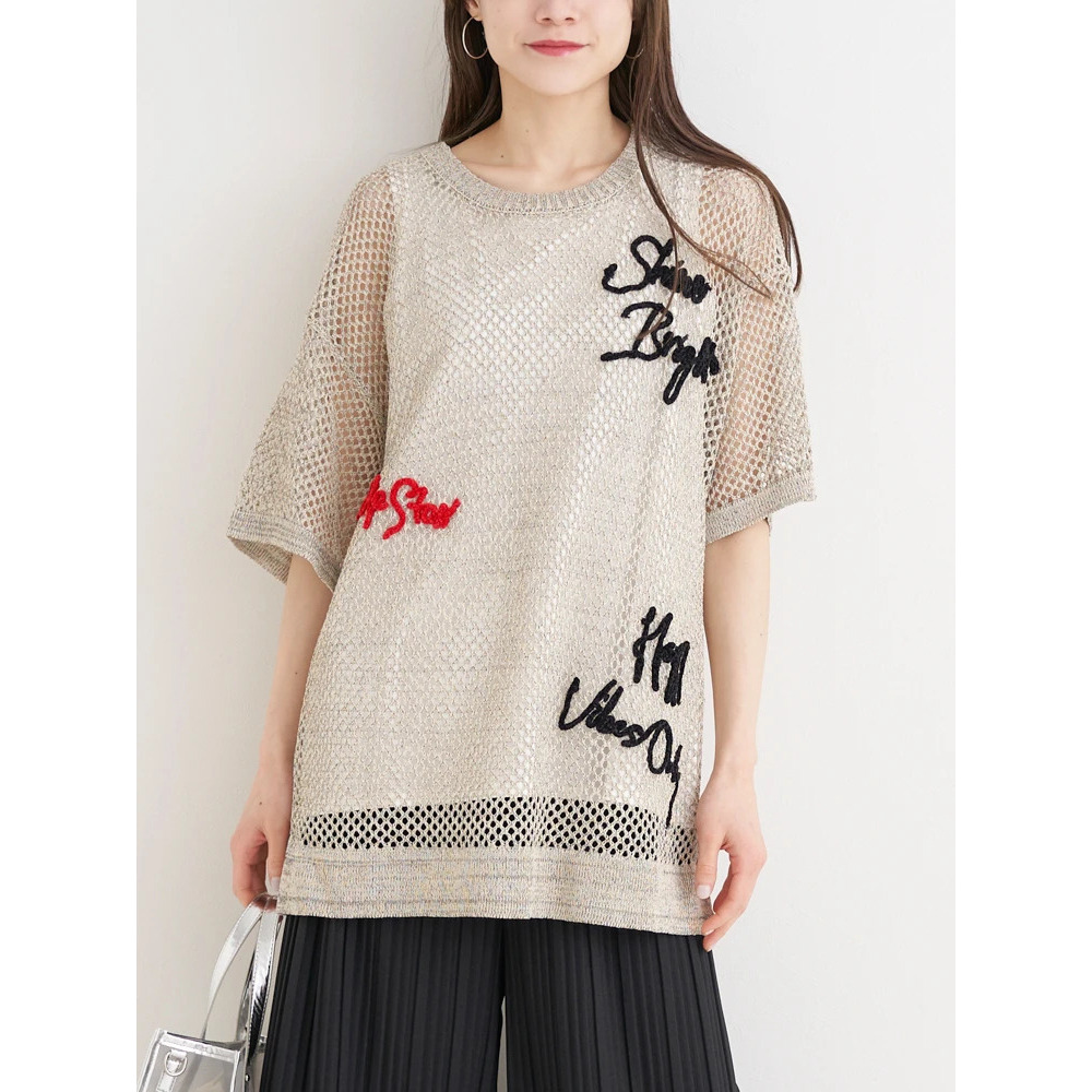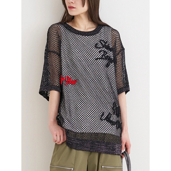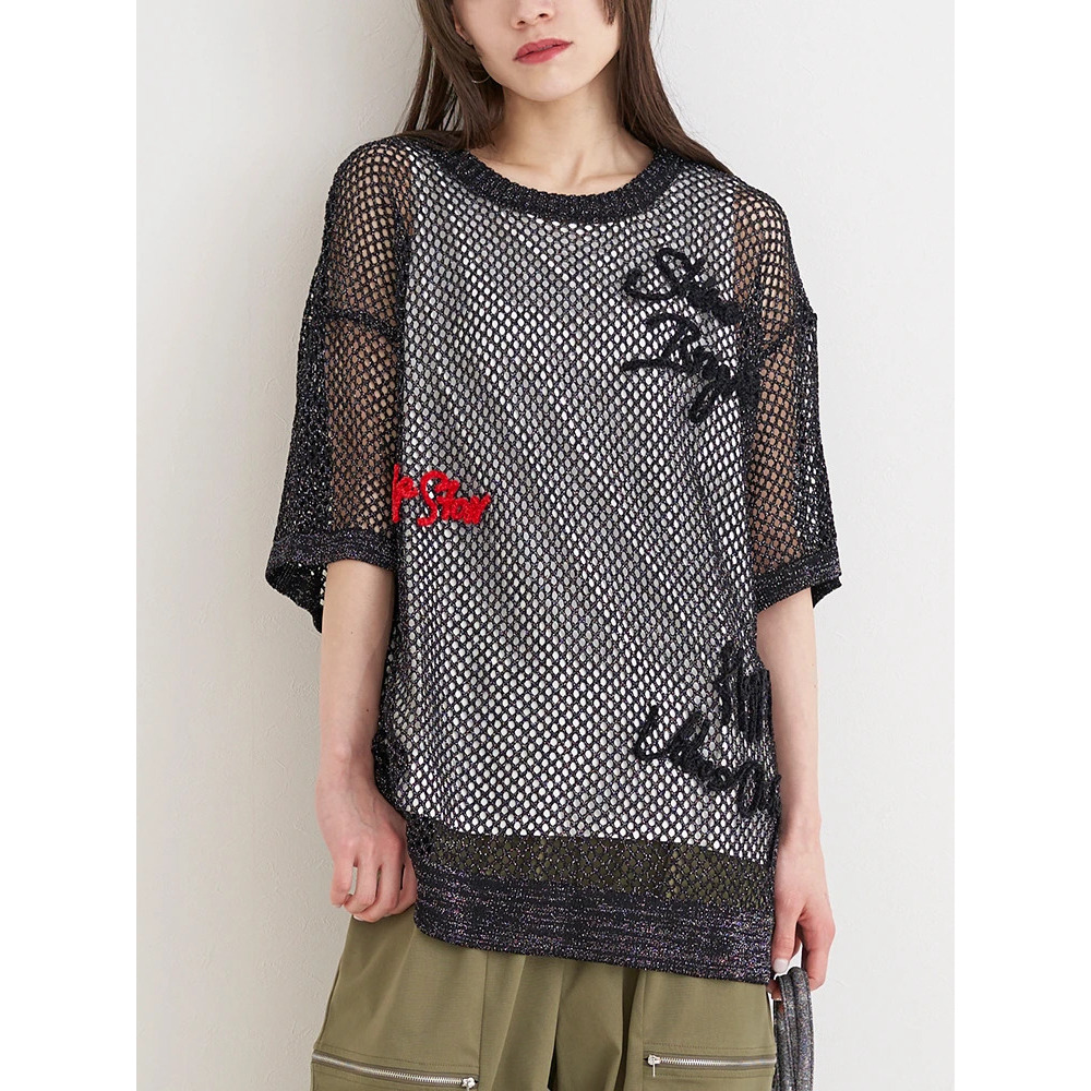 軽やかで涼しげな印象のメッシュニット素材。(黒のみラメ入り)
