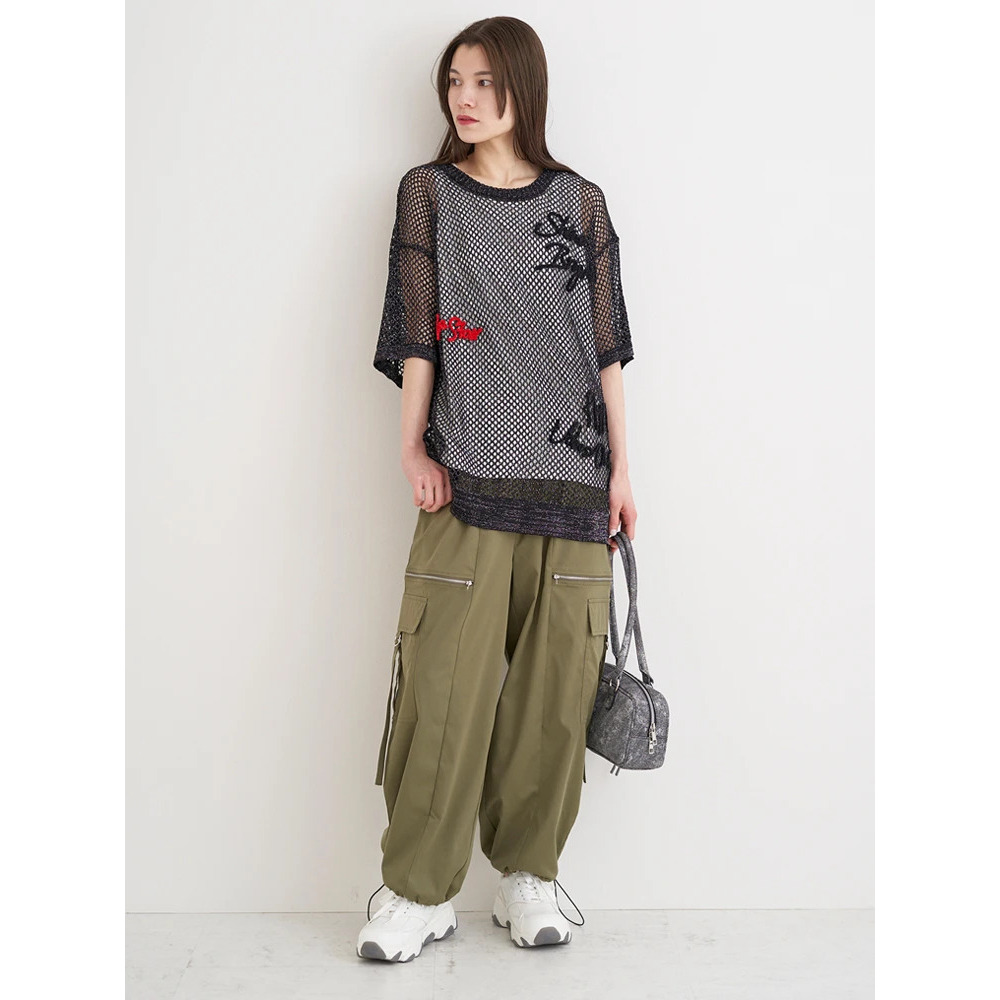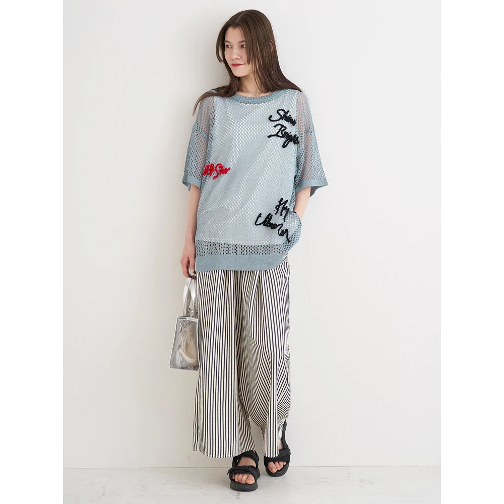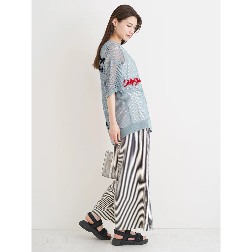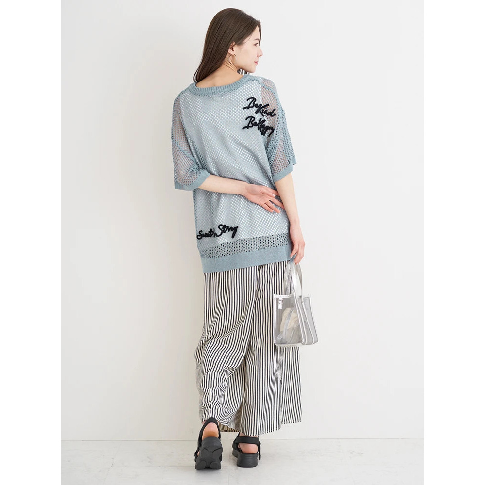 ・ざっくりとしたメッシュ編みニットが軽やかな印象を与え、スタイリングにで抜け感を演出。