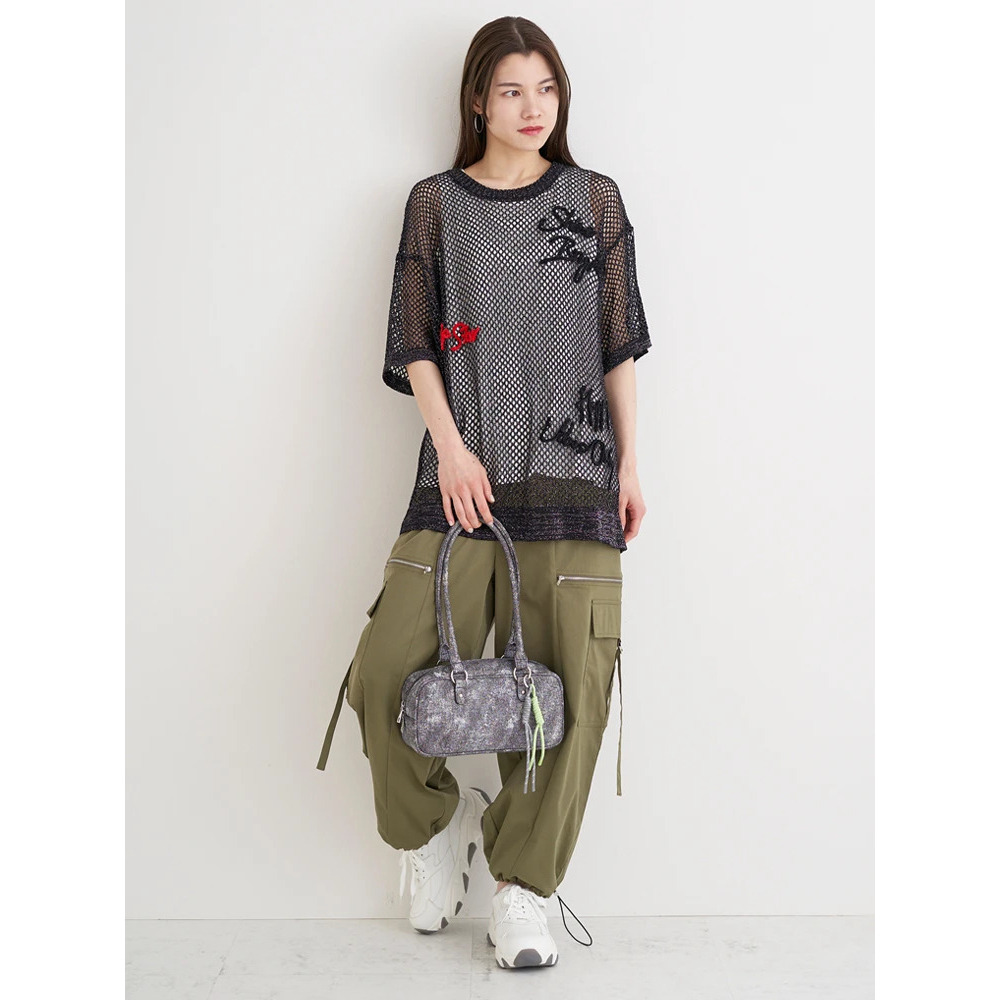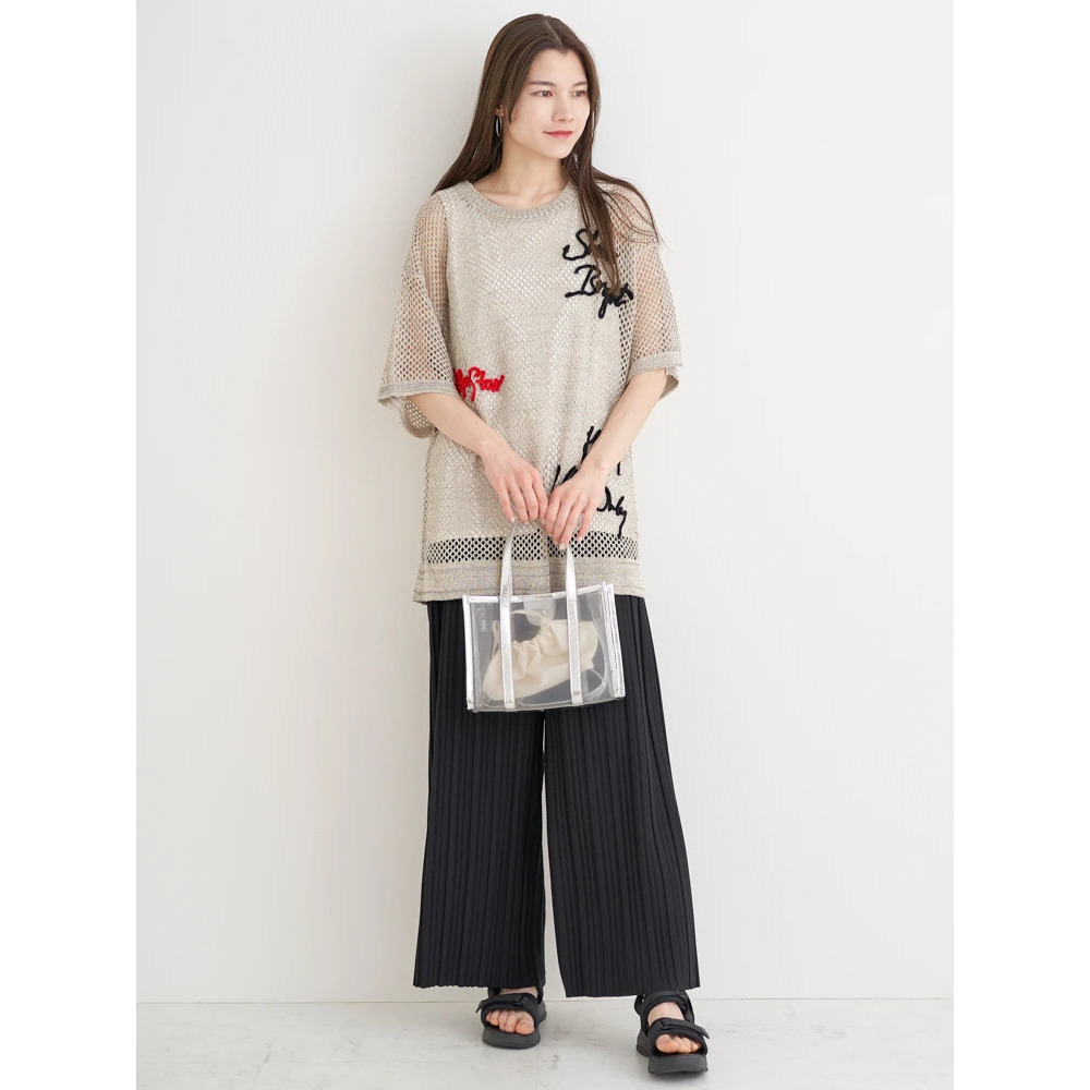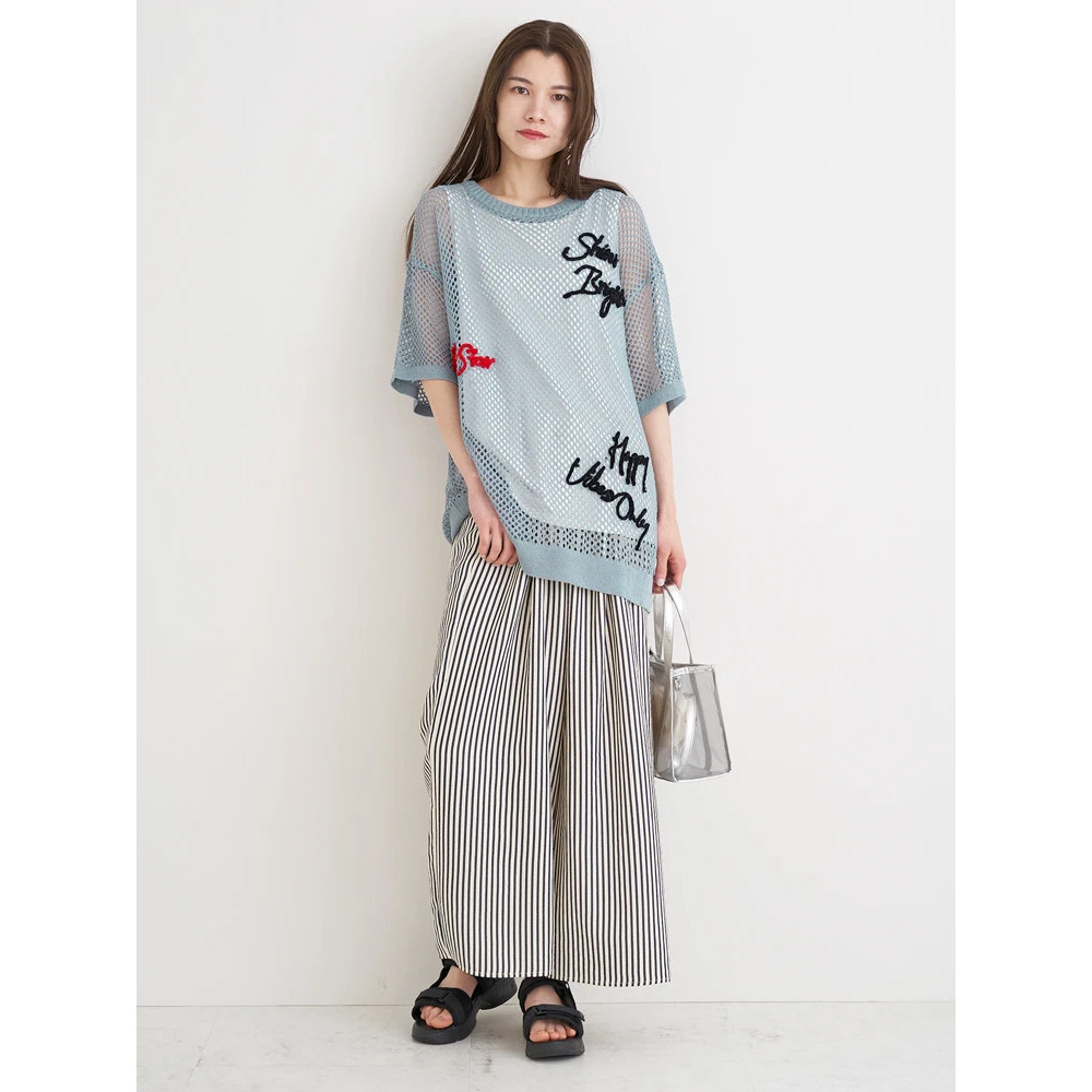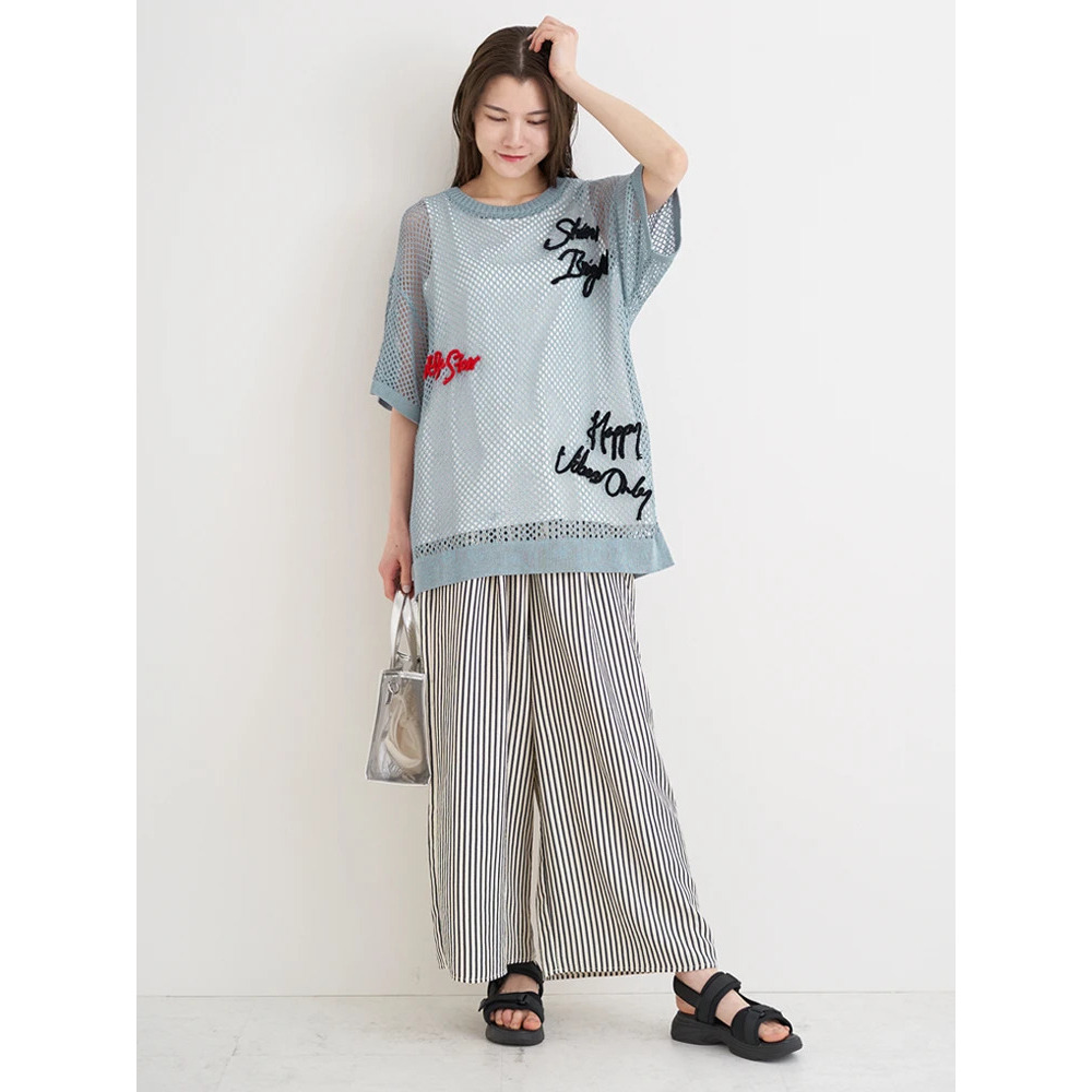 ・ざっくりとしたメッシュ編みニットが軽やかな印象を与え、スタイリングにで抜け感を演出。