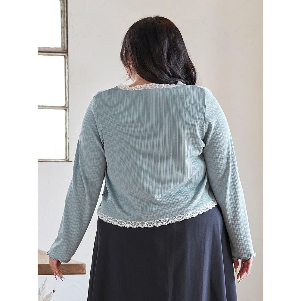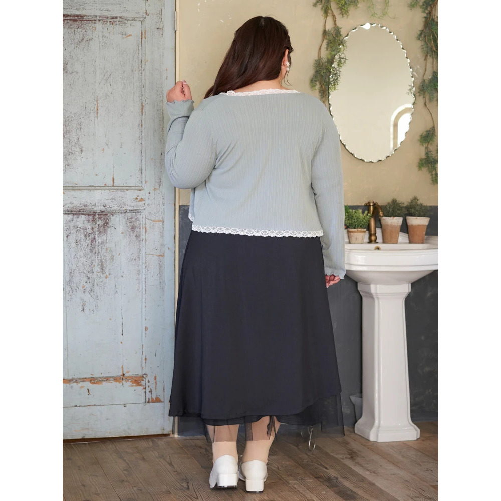 伸縮性がありやわらかなランダムリブテレコ×花柄レース