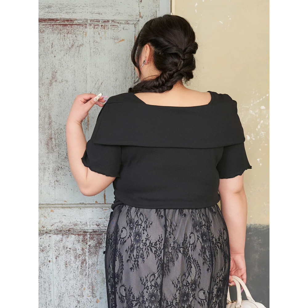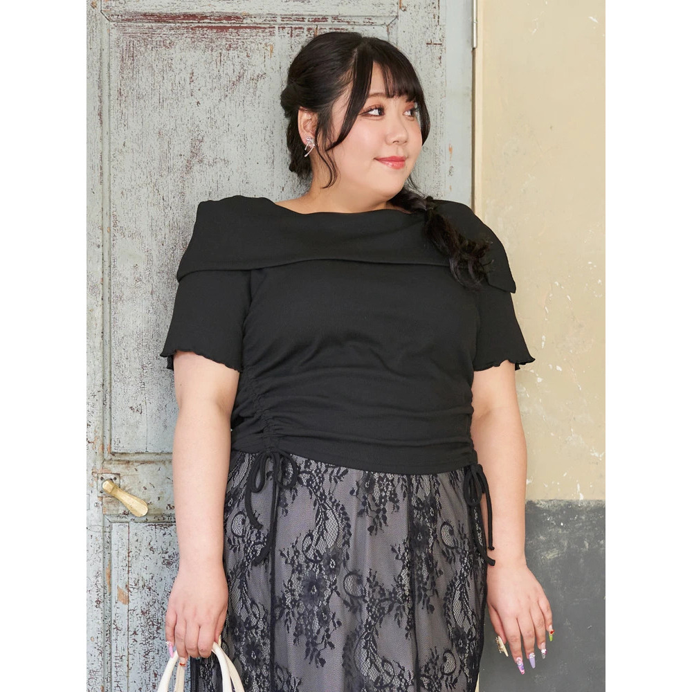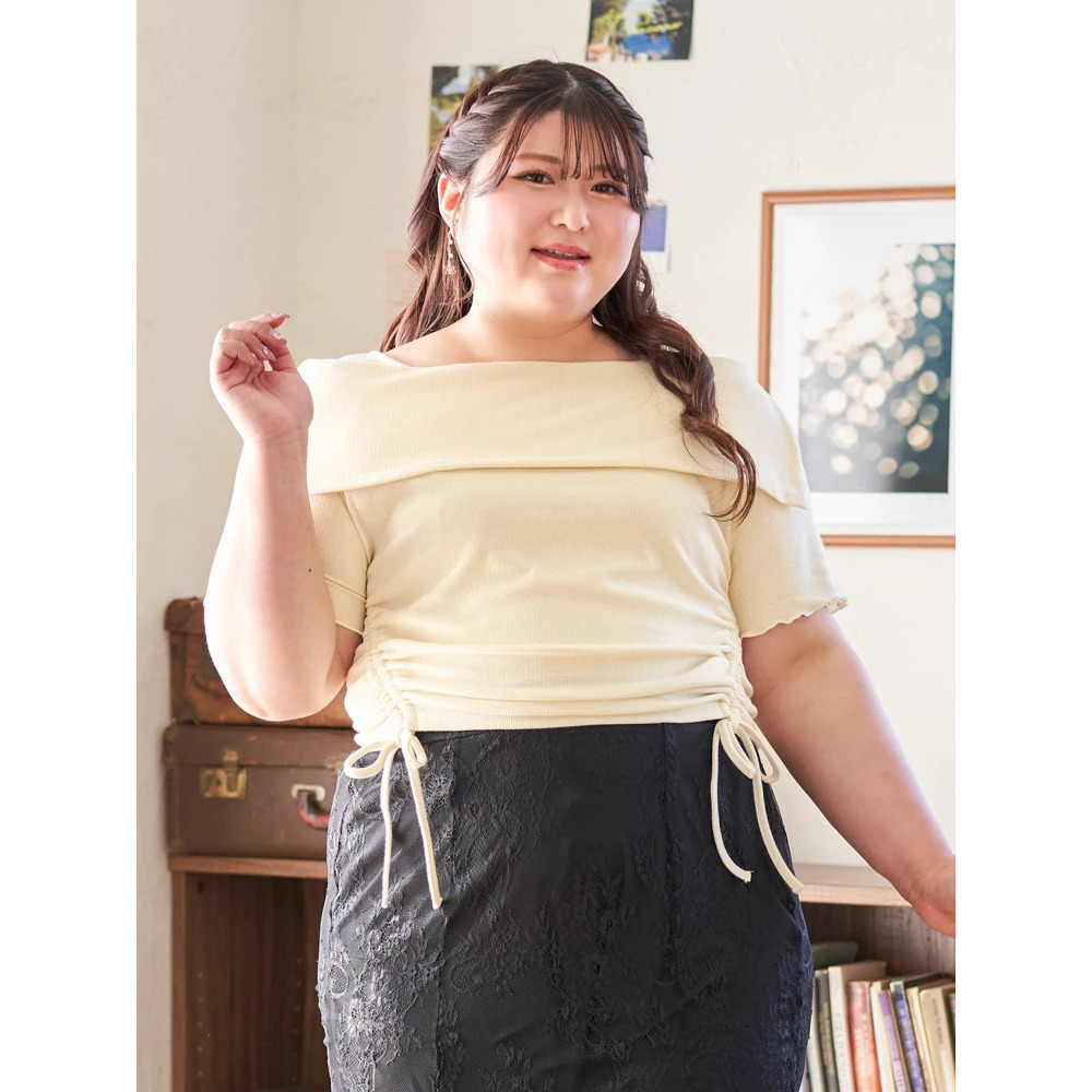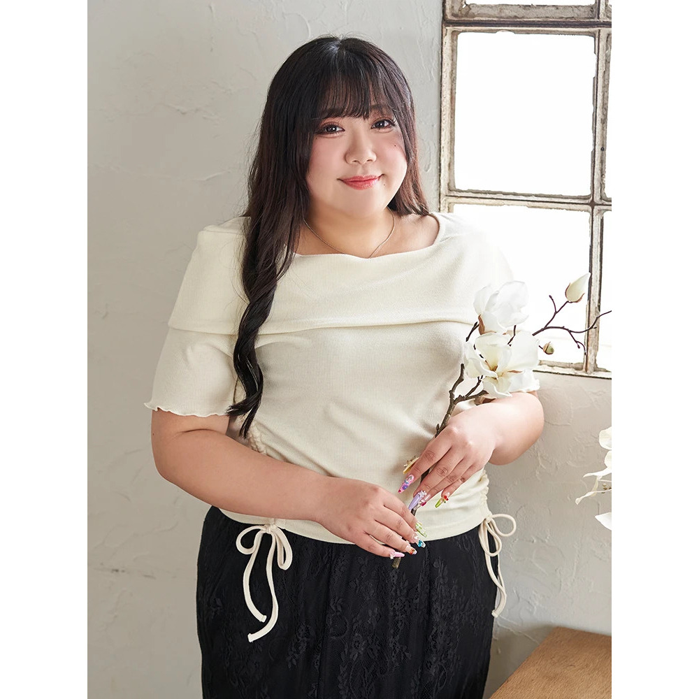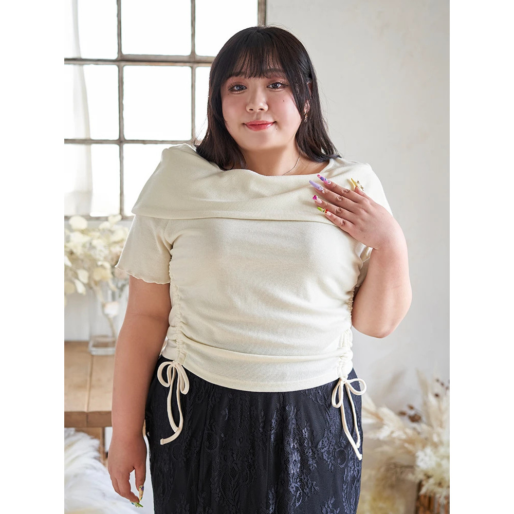・肩部分は下着のストラップ見えが気にならないオフショル風デザイン!