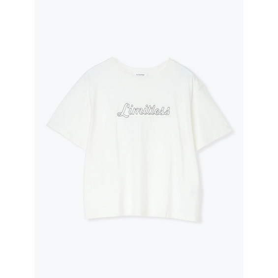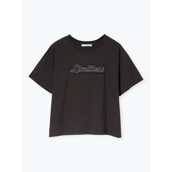 刺繍をした共布を貼り付けたデザインがアクセントをプラスするTシャツ