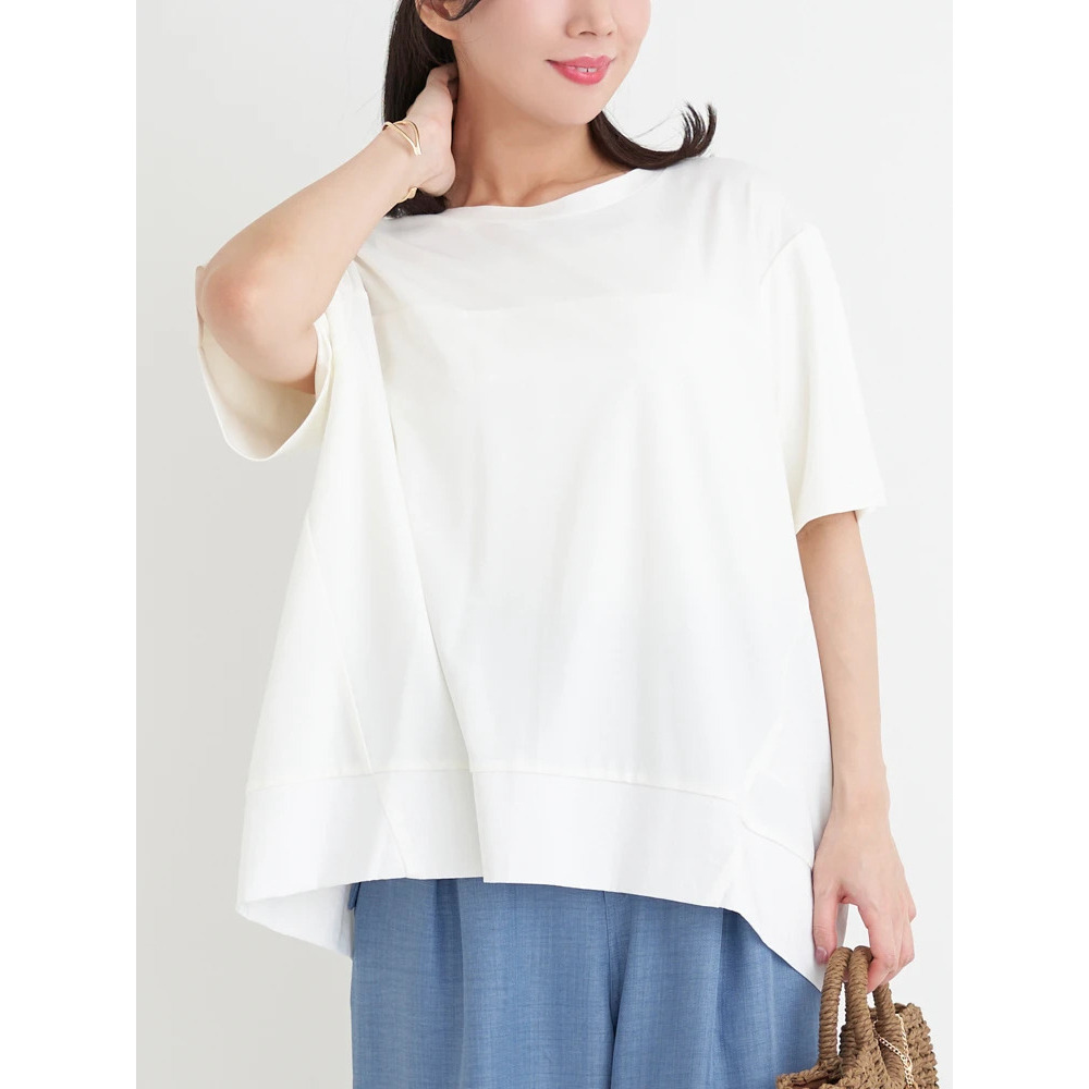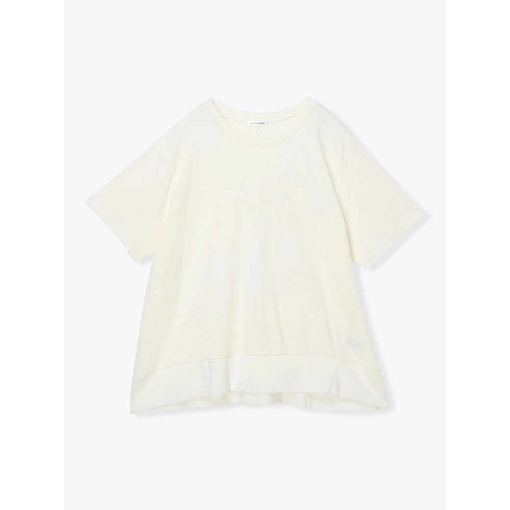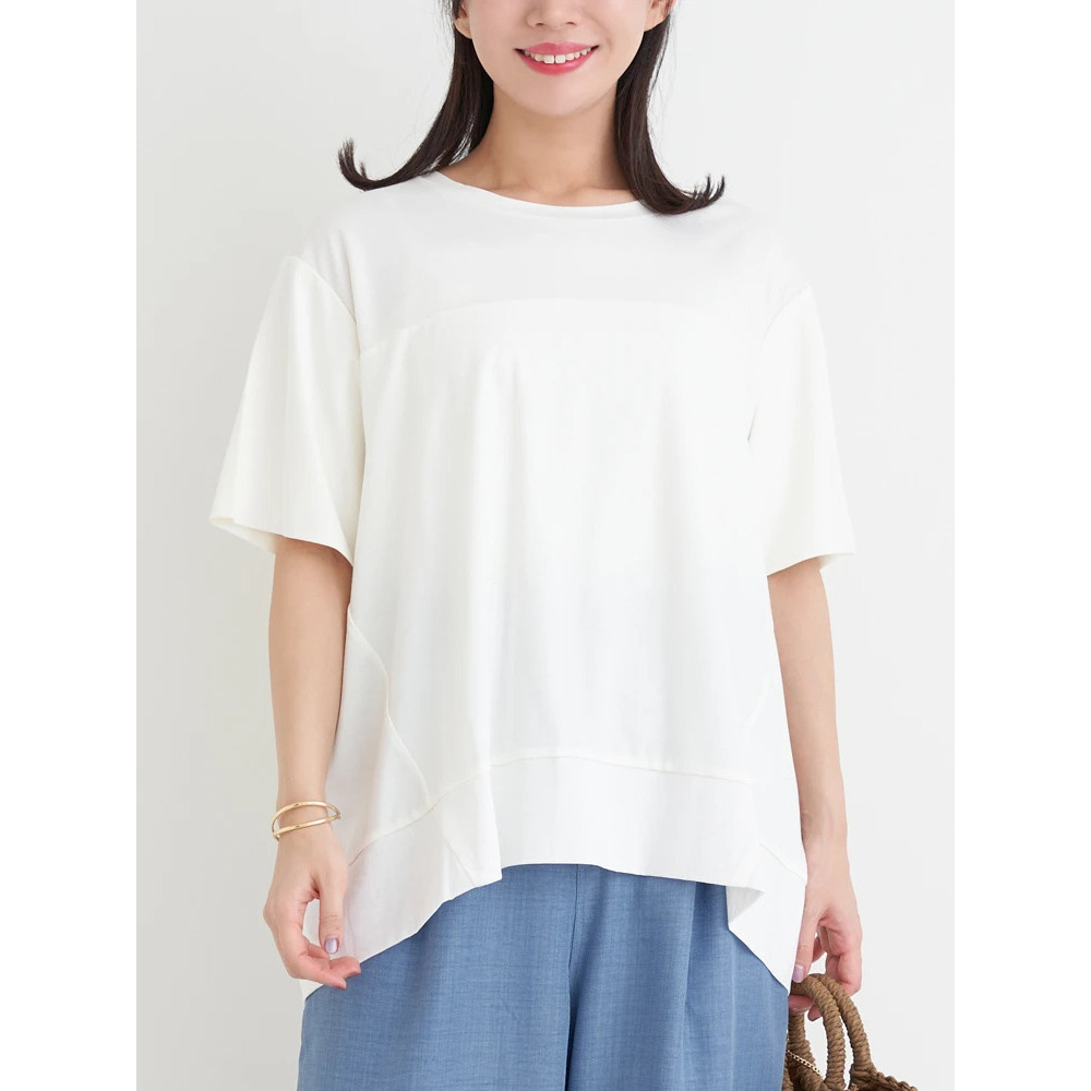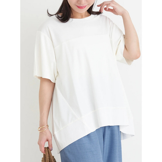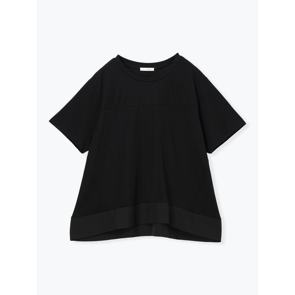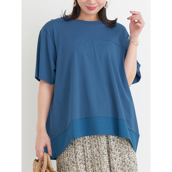 裾の異素材切り替えのデザインがさりげないアクセントをプラスするトップス