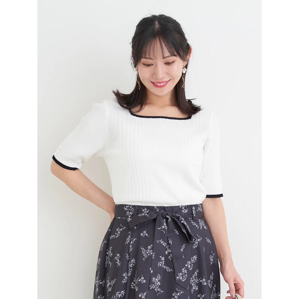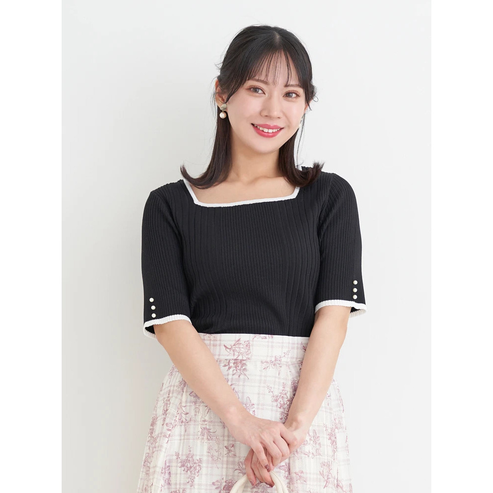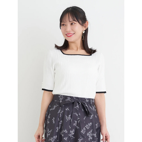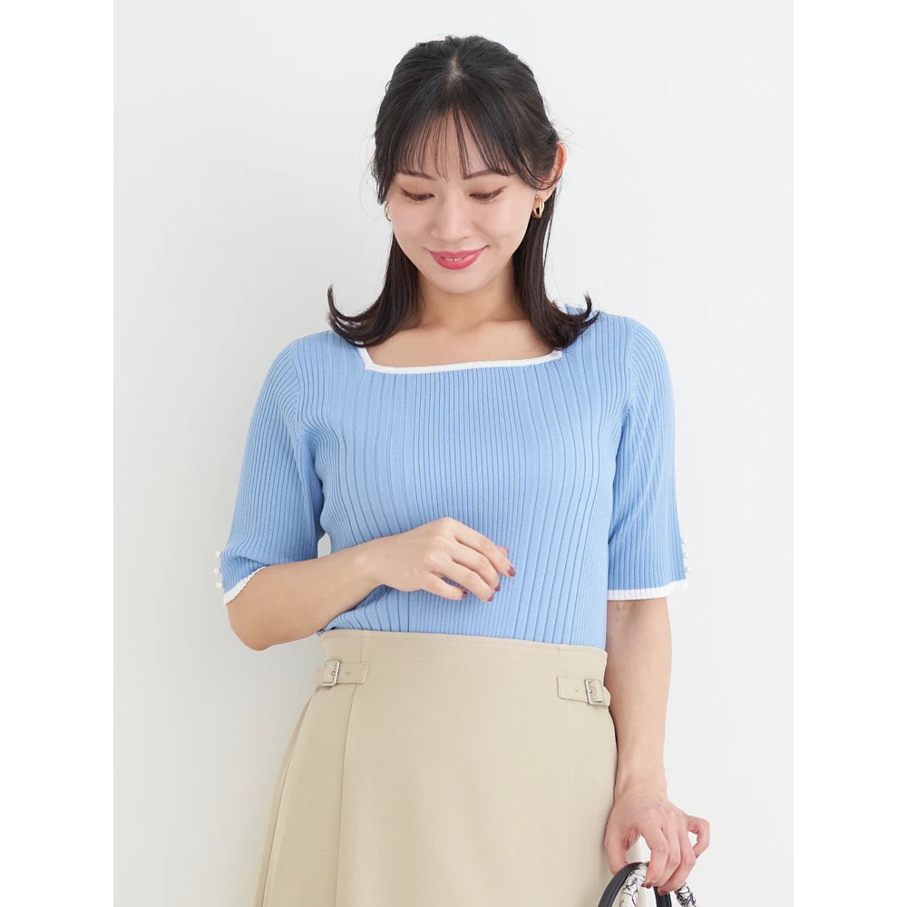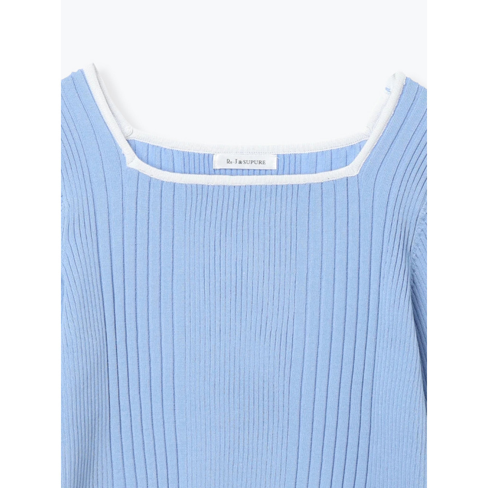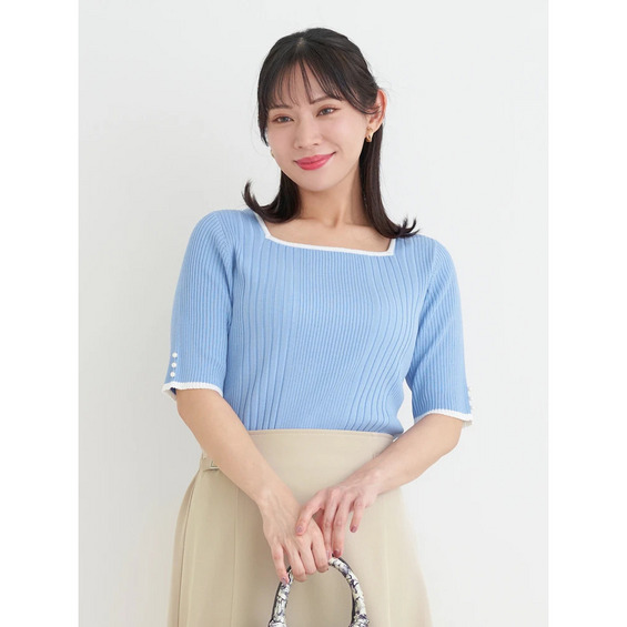 【抗ピル】リネンライクスクエアネックニットトップス