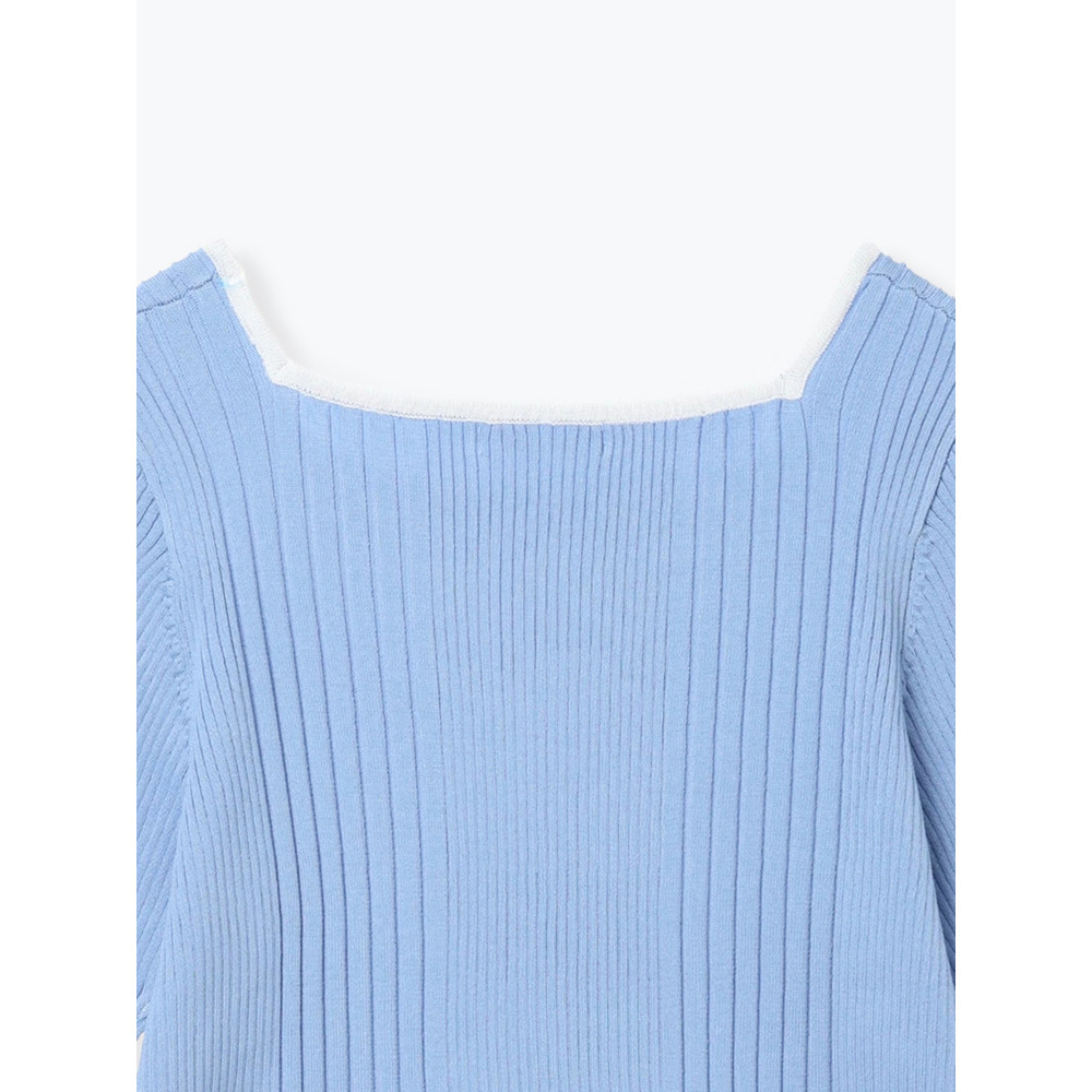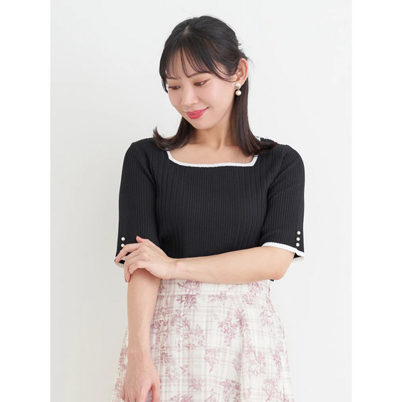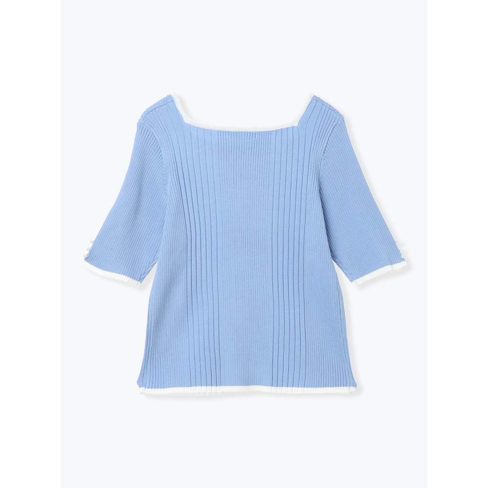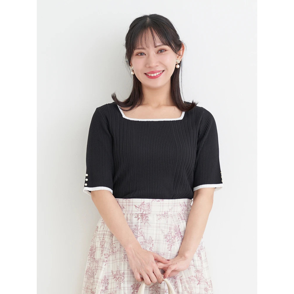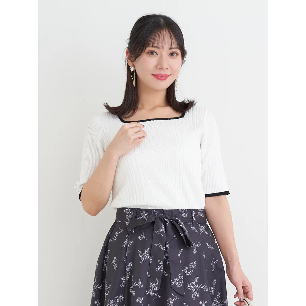 【抗ピル】リネンライクスクエアネックニットトップス
