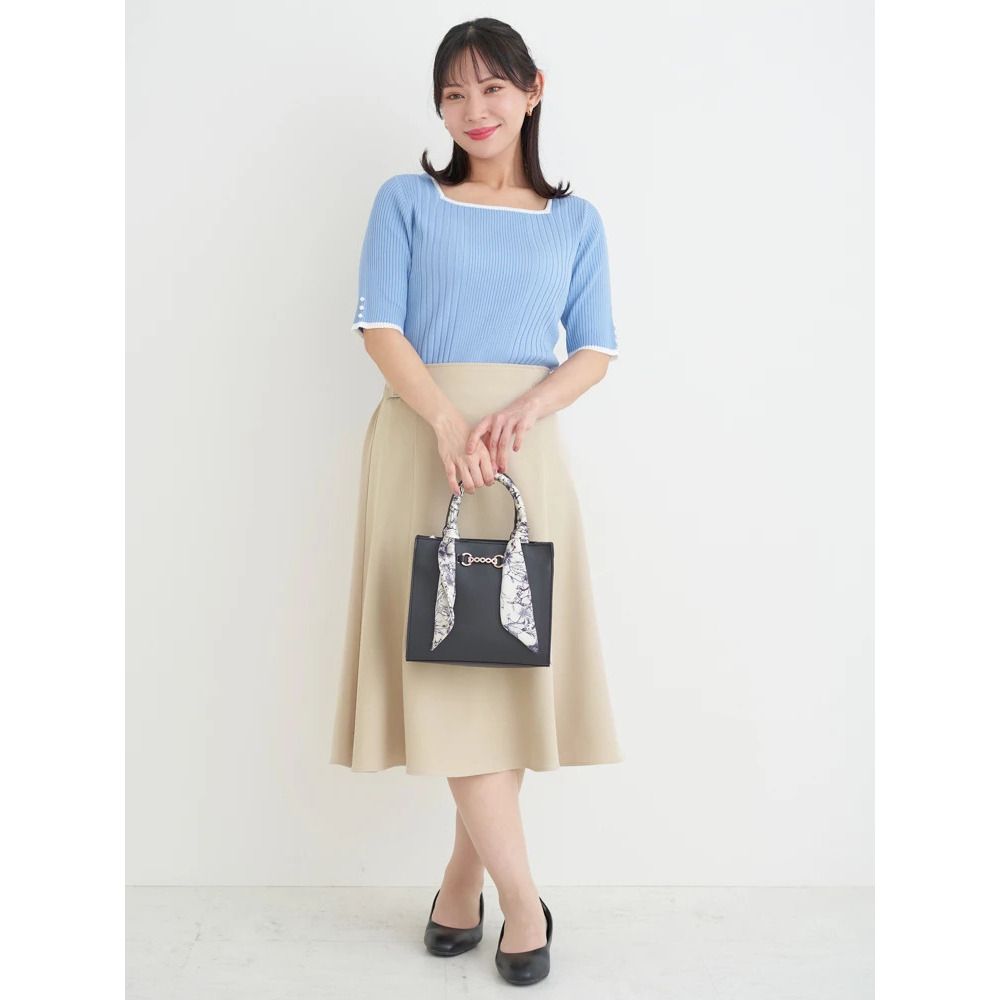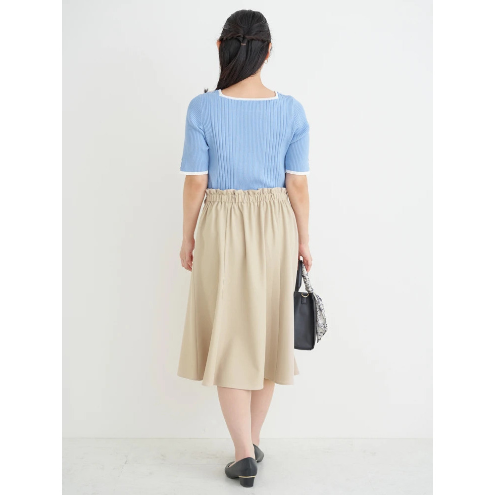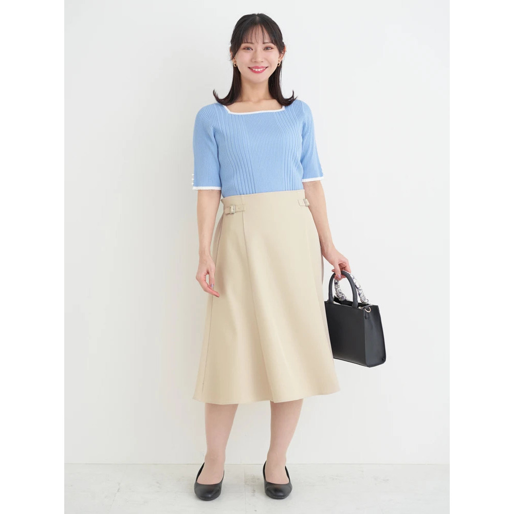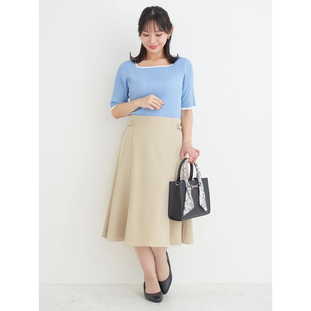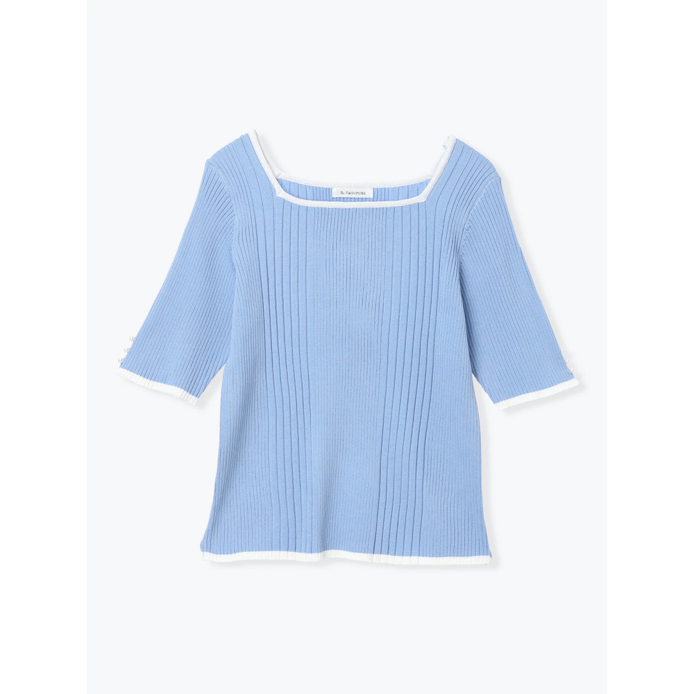【抗ピル】リネンライクスクエアネックニットトップス