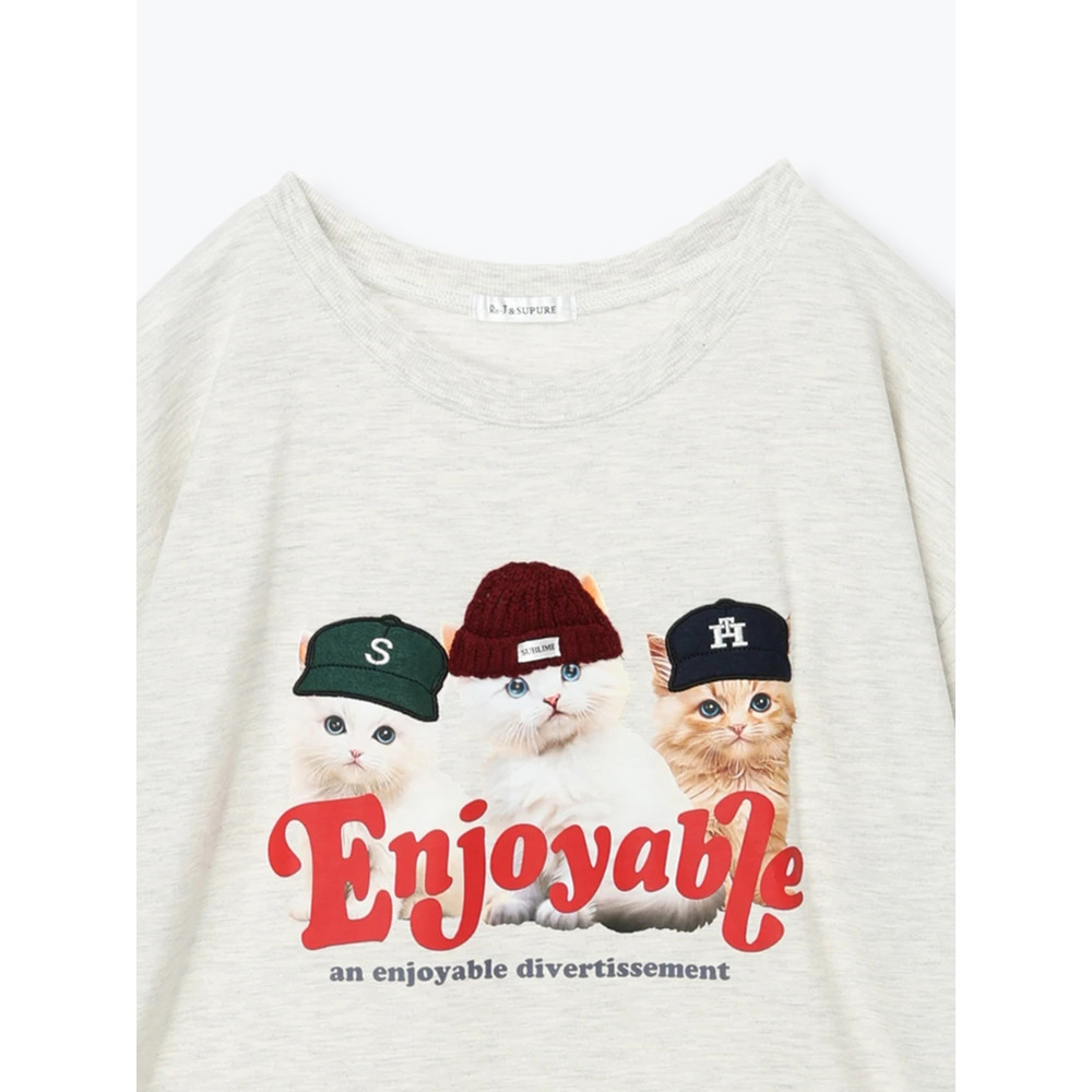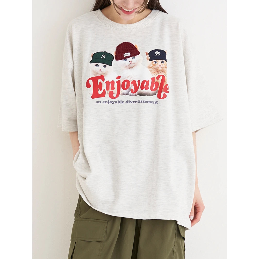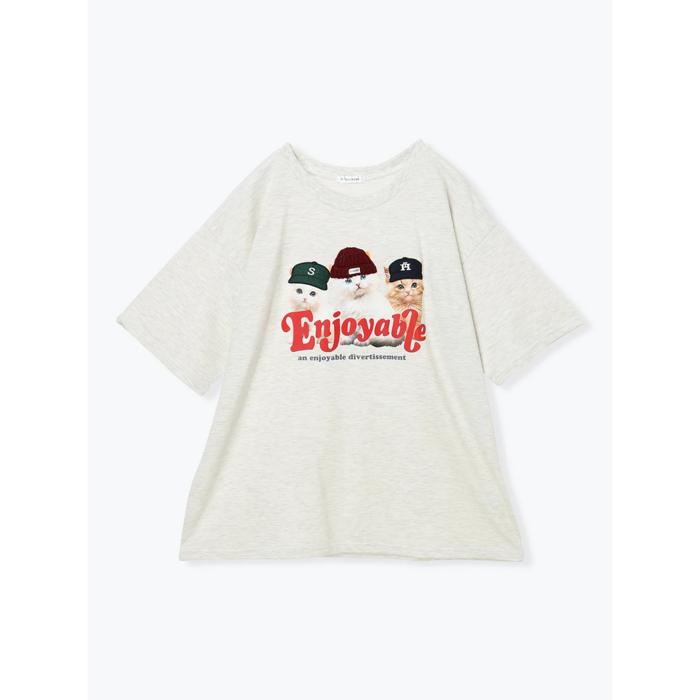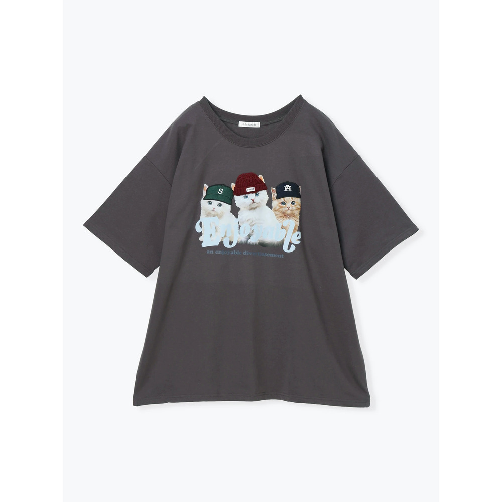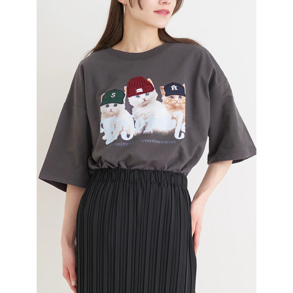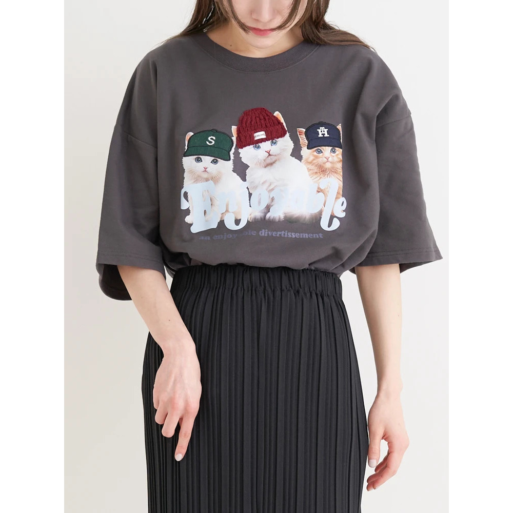 帽子をかぶった3匹のネコがキュートな着映えTシャツ。