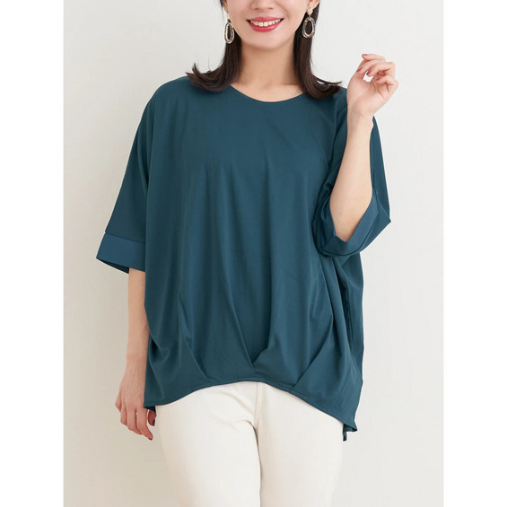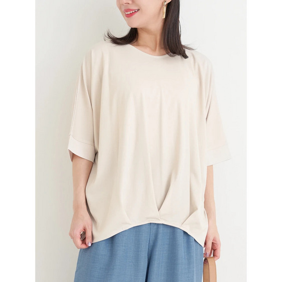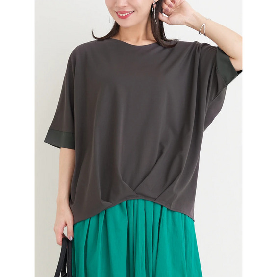 【接触冷感】袖異素材切り替え裾タックプルオーバー