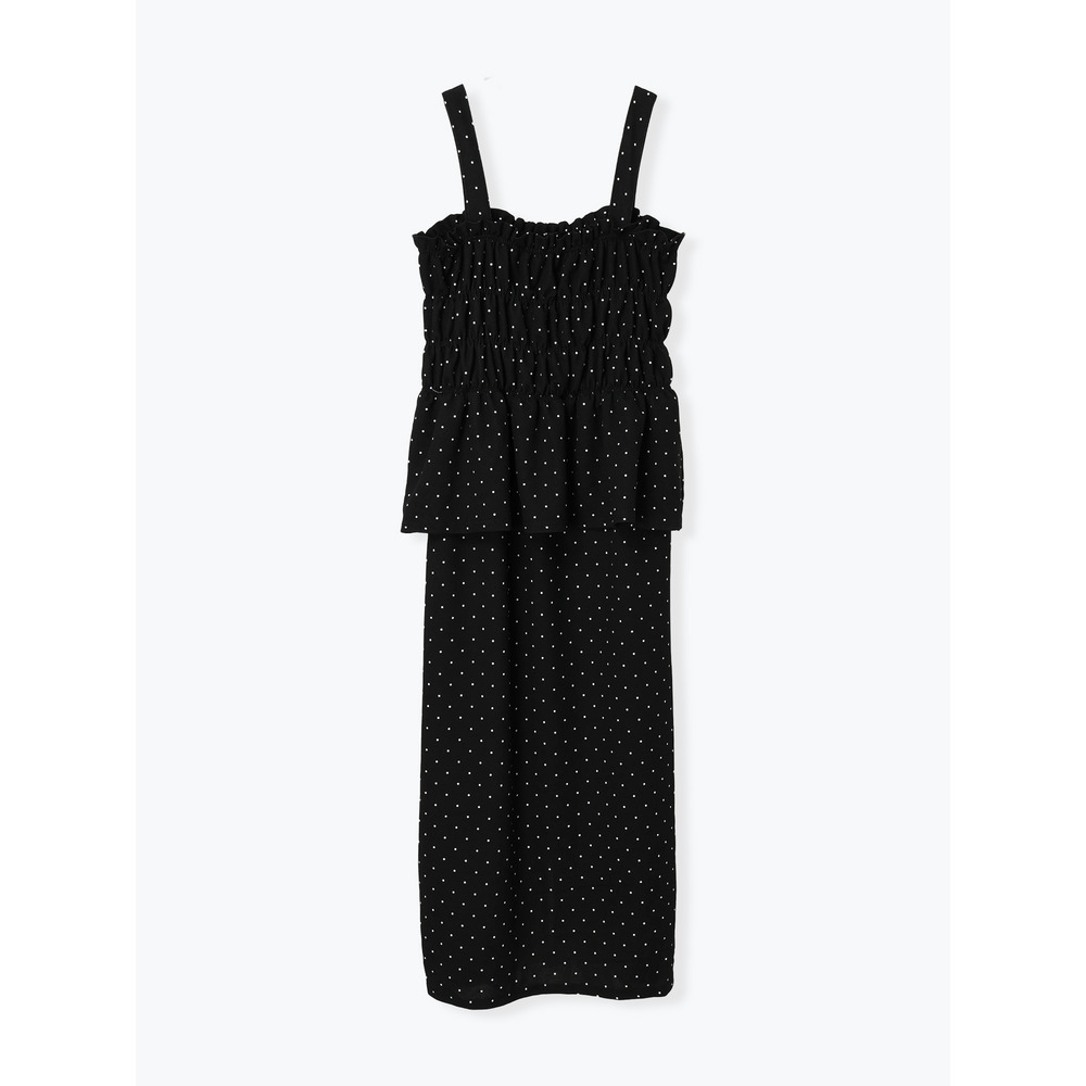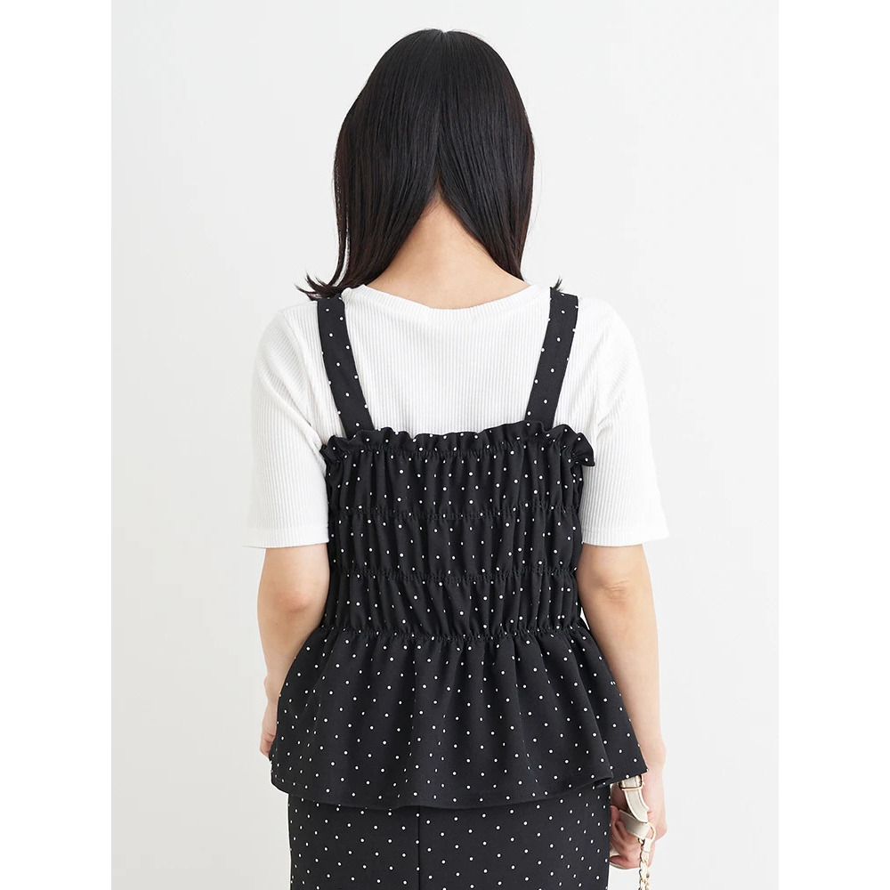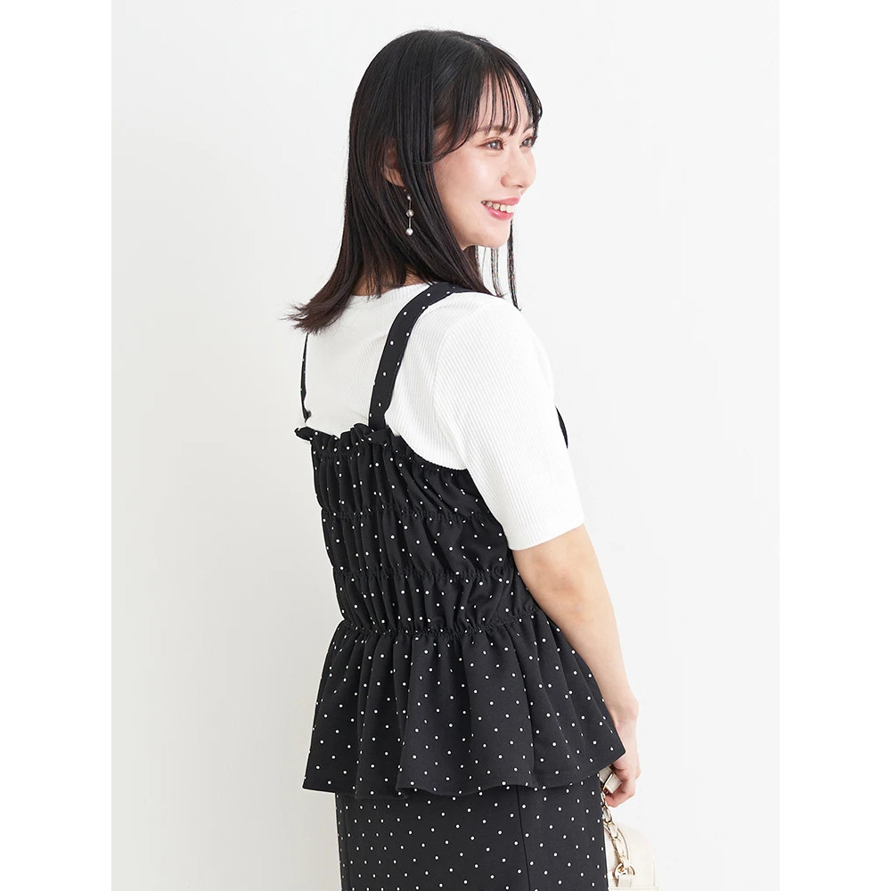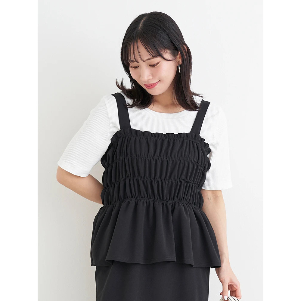 ・シャーリングで引き締めウエストからひらりと広がるペプラムデザインがお腹周りを優しくカバー。