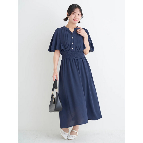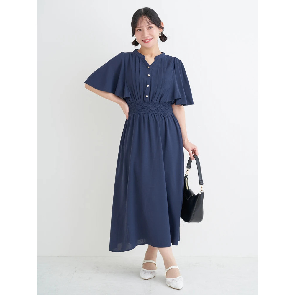 ・ウエスト部分はシャーリングで切り替え、引き締め効果もあり、心地よくフィットする着用感も魅力。