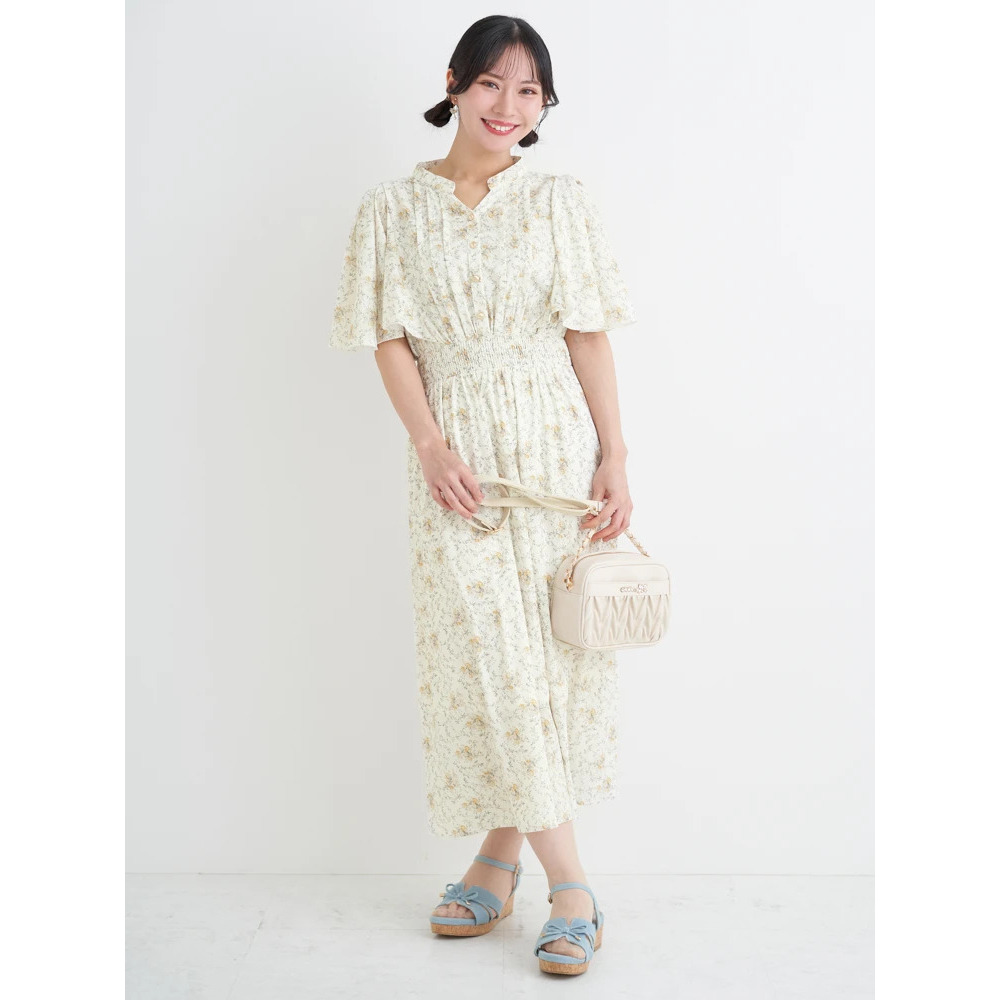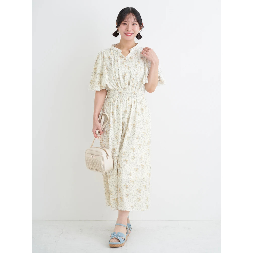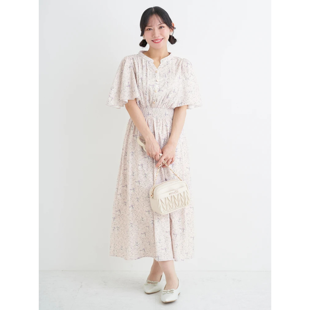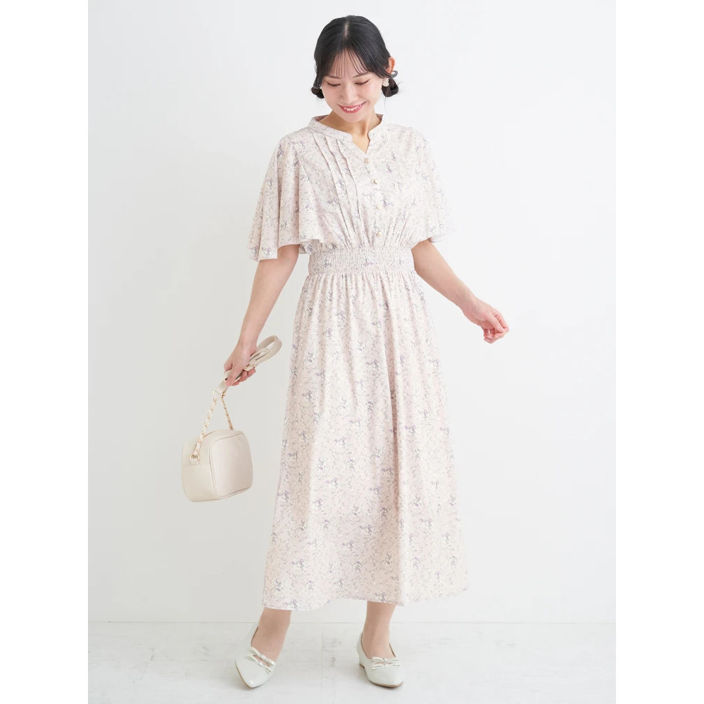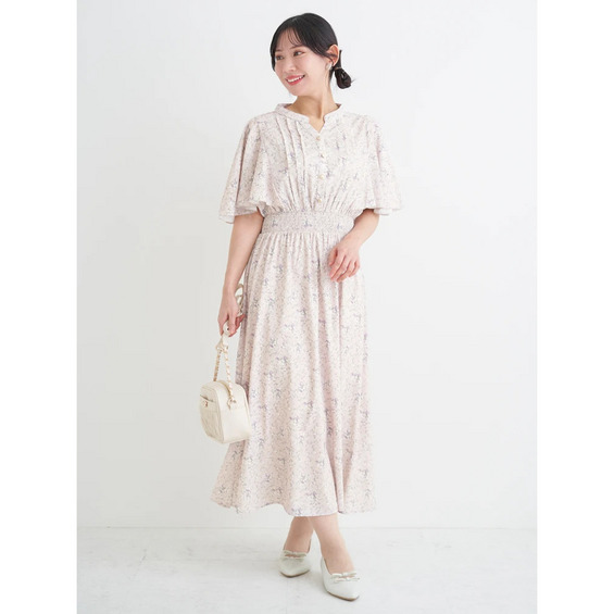 上品な印象の花柄プリントとがフェミニンな華やぎワンピース。
