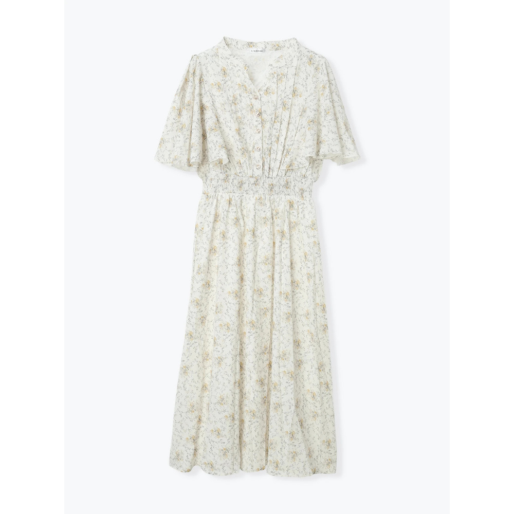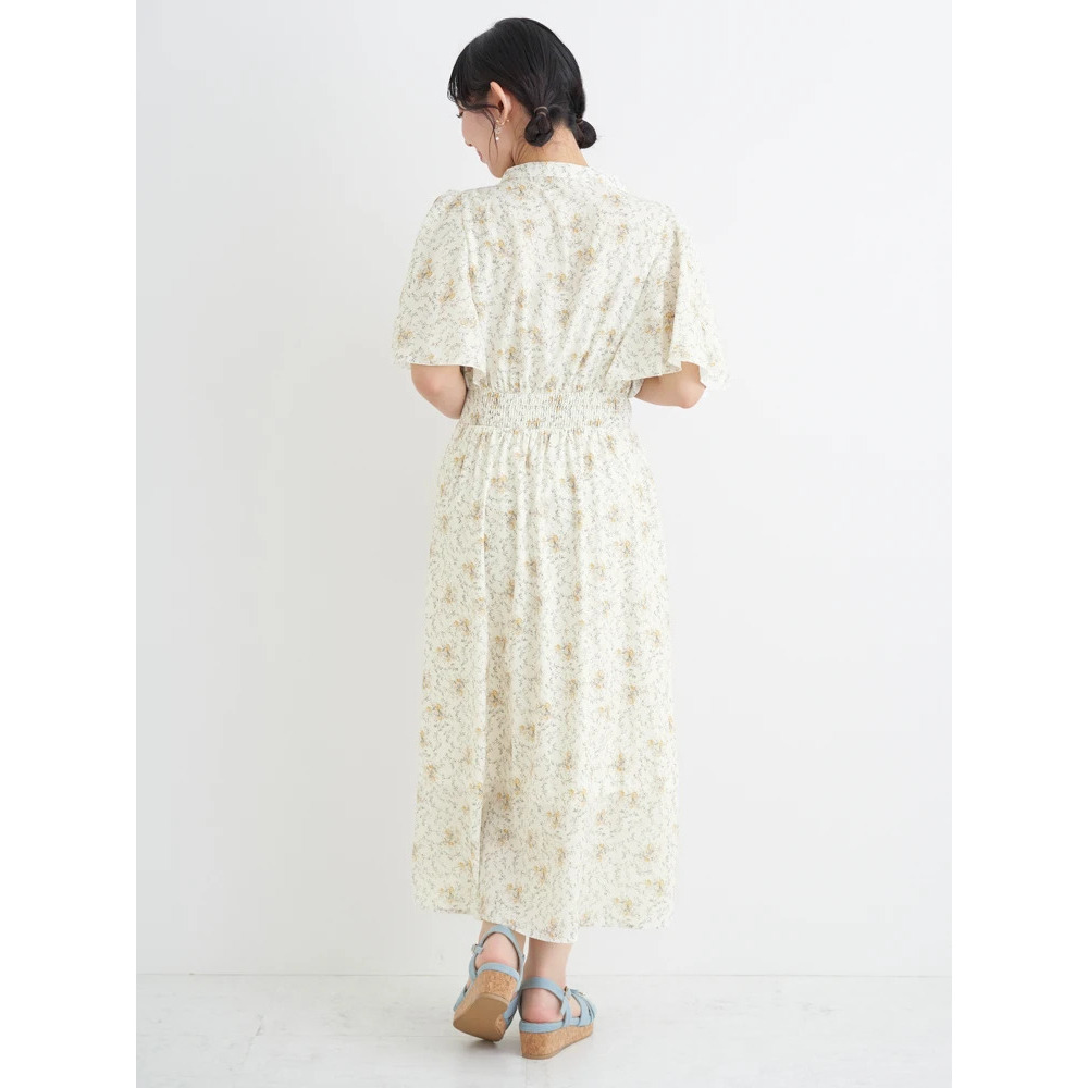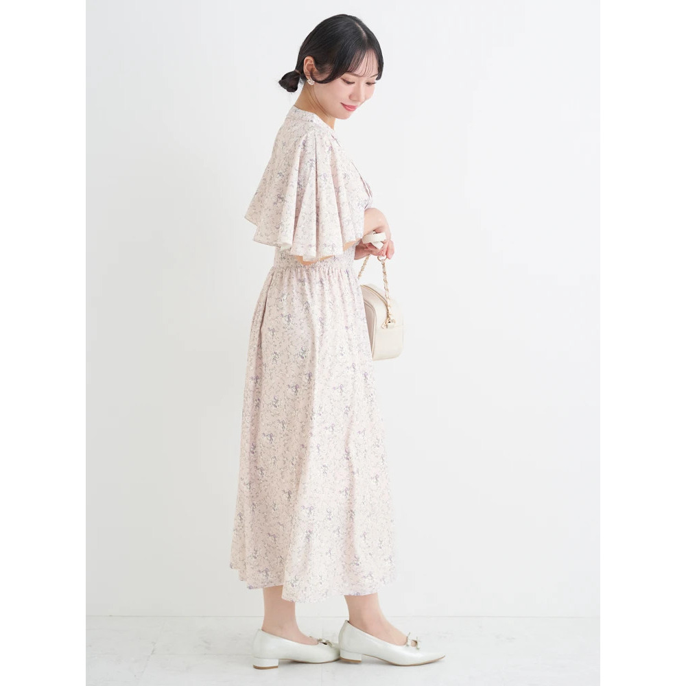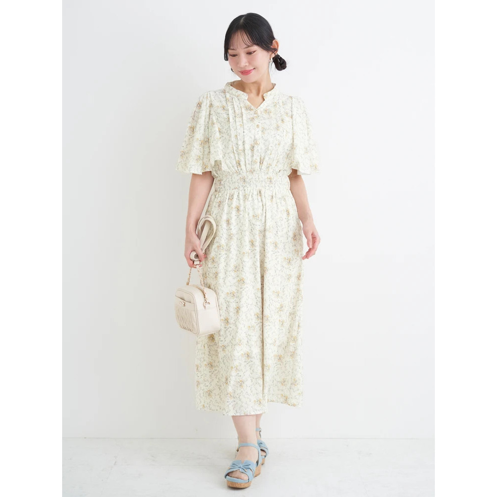 上品な印象の花柄プリントとがフェミニンな華やぎワンピース。
