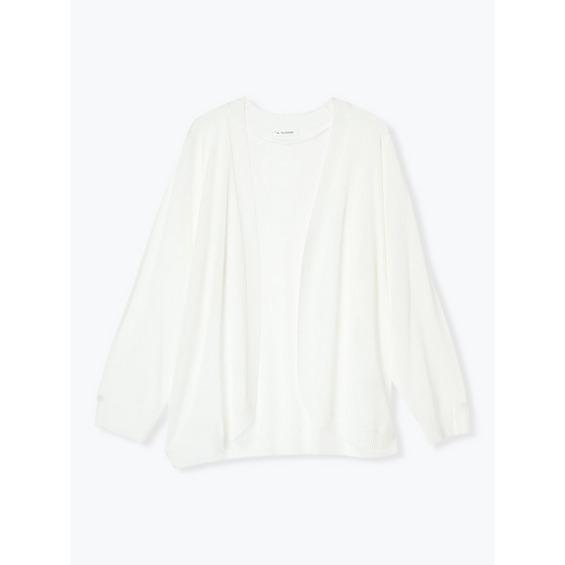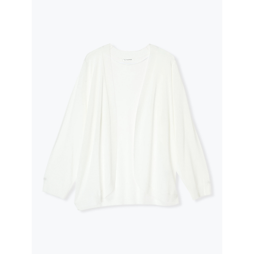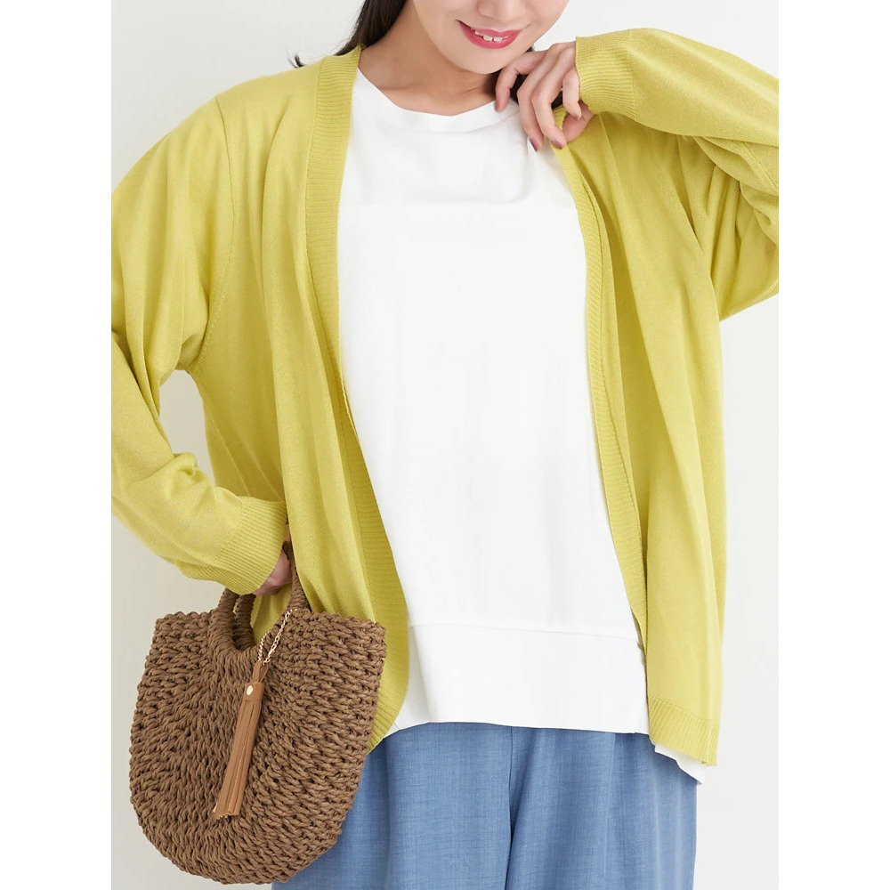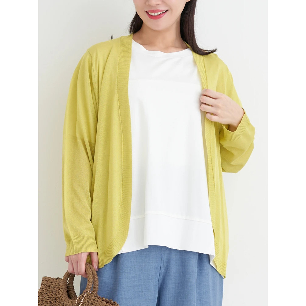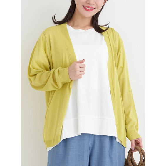 どんなスタイルにも羽織りやすいシンプルでボタンレスなデザインです。