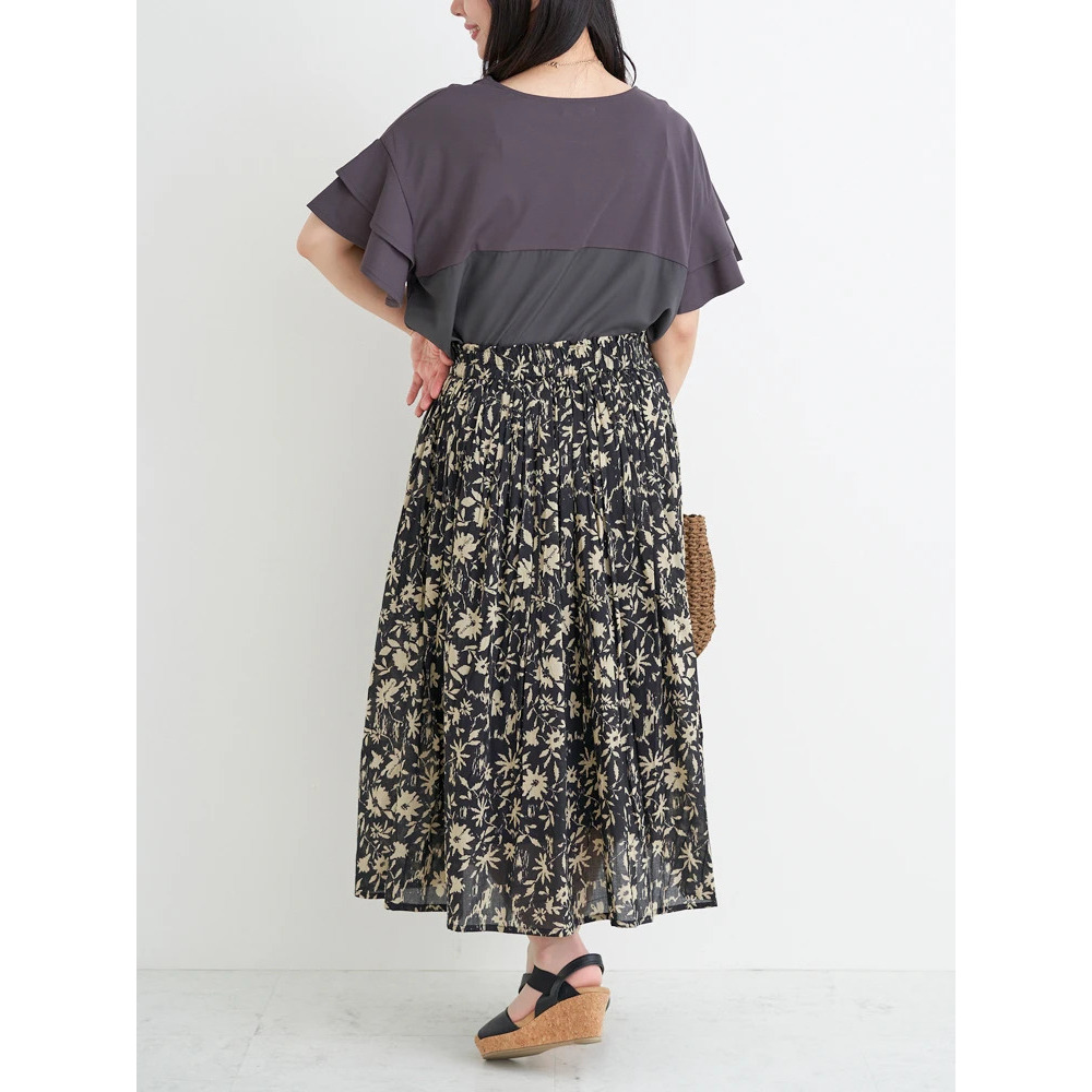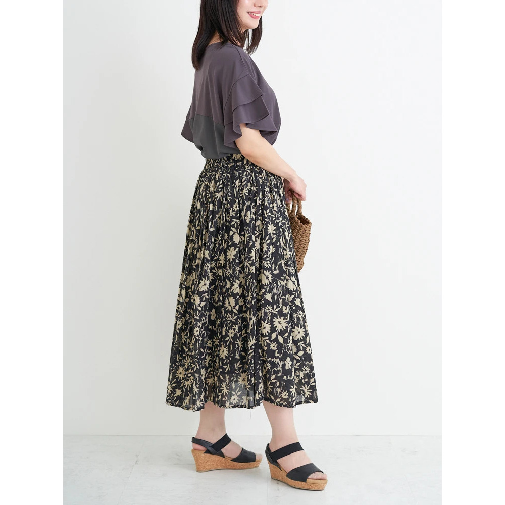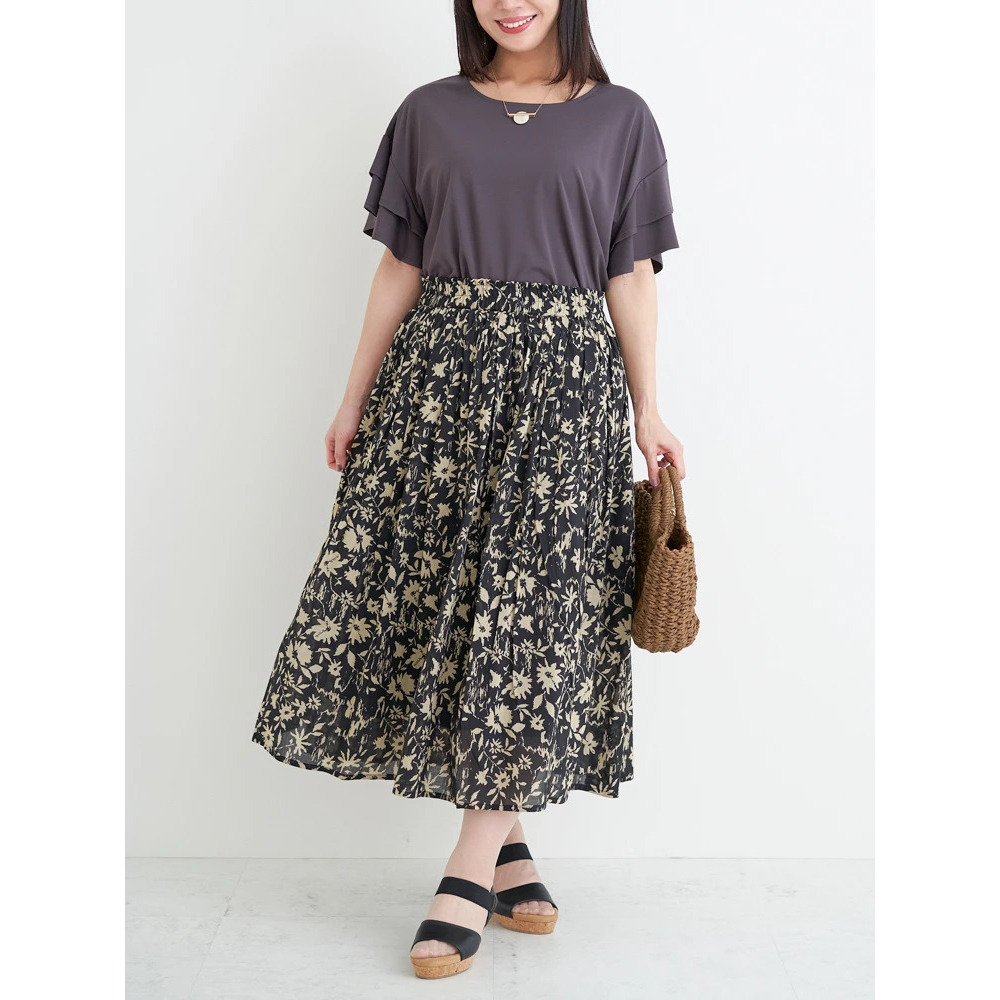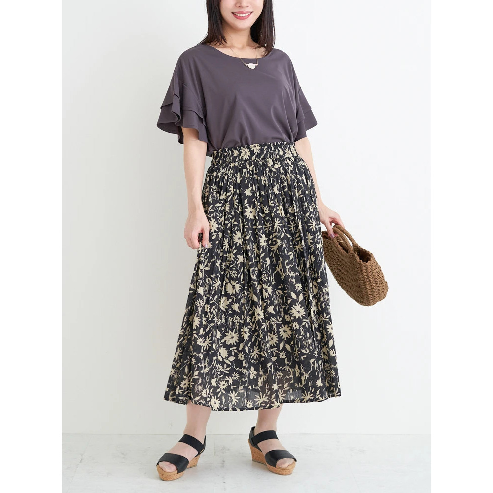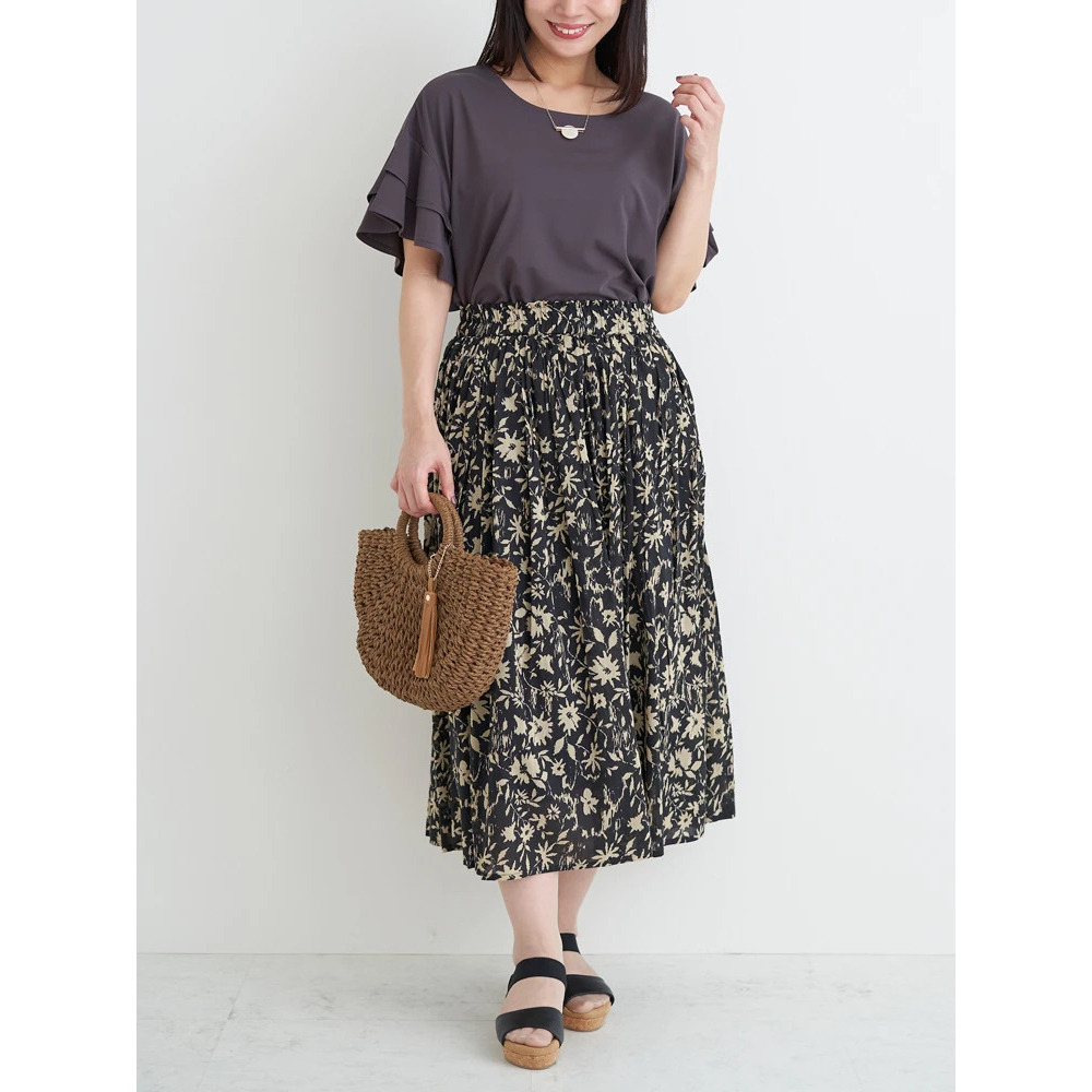 柄ものスカートが映えるデザイン!春夏らしいプリントスカートと合わせればパッと華やかな印象に。
