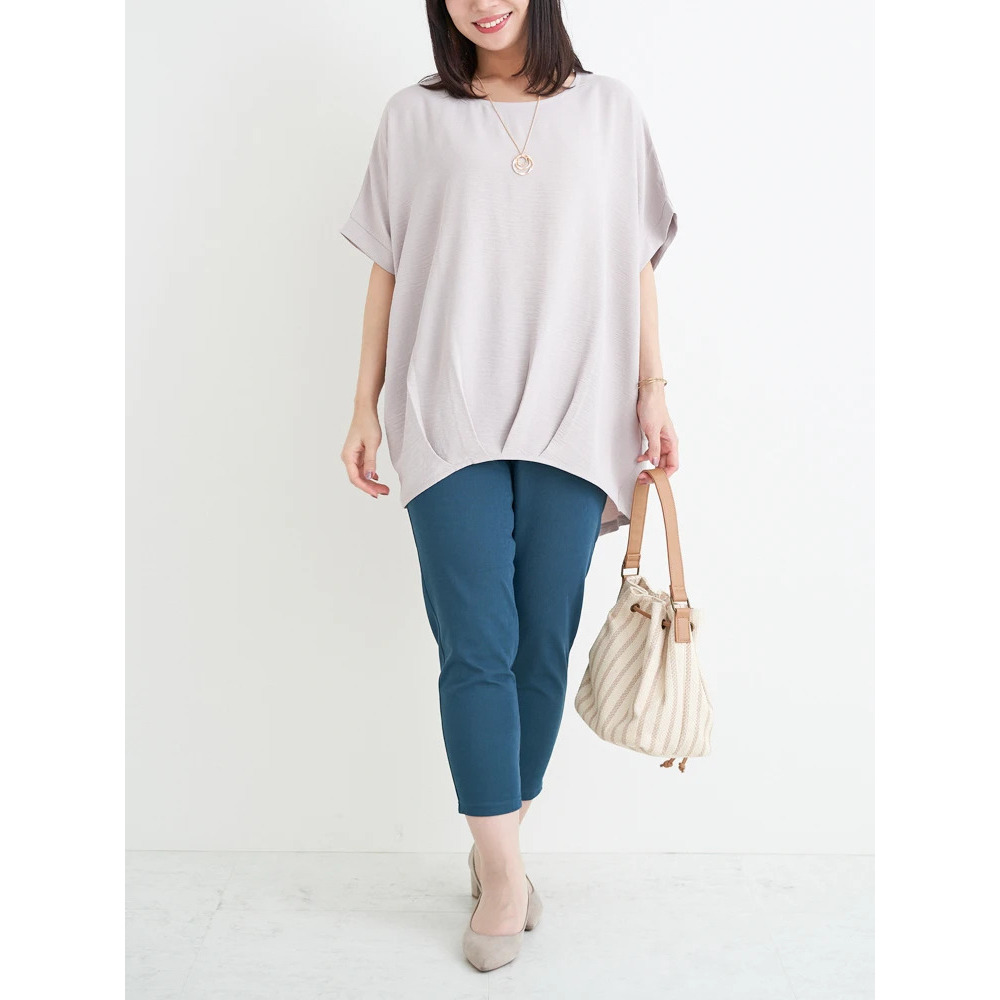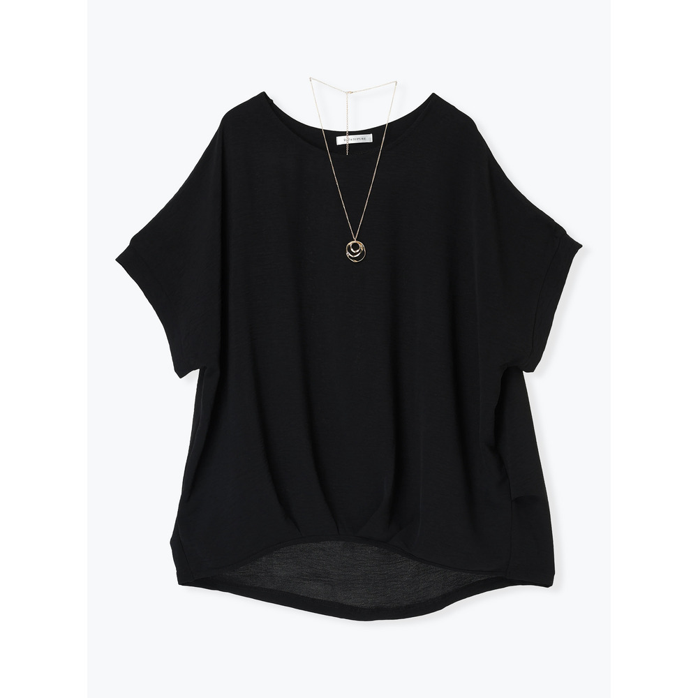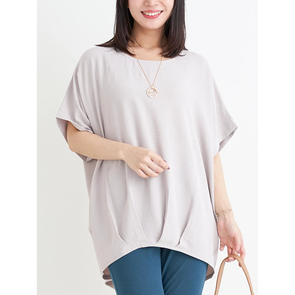 【キレサラ 機能トップス】アクセサリー付き裾タックドルマンプルオーバー
