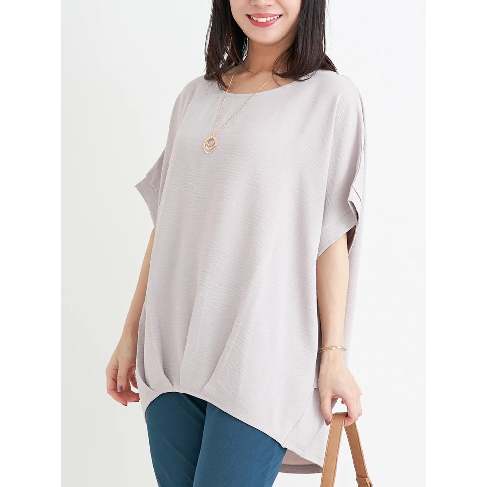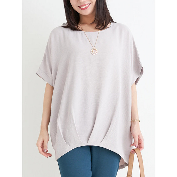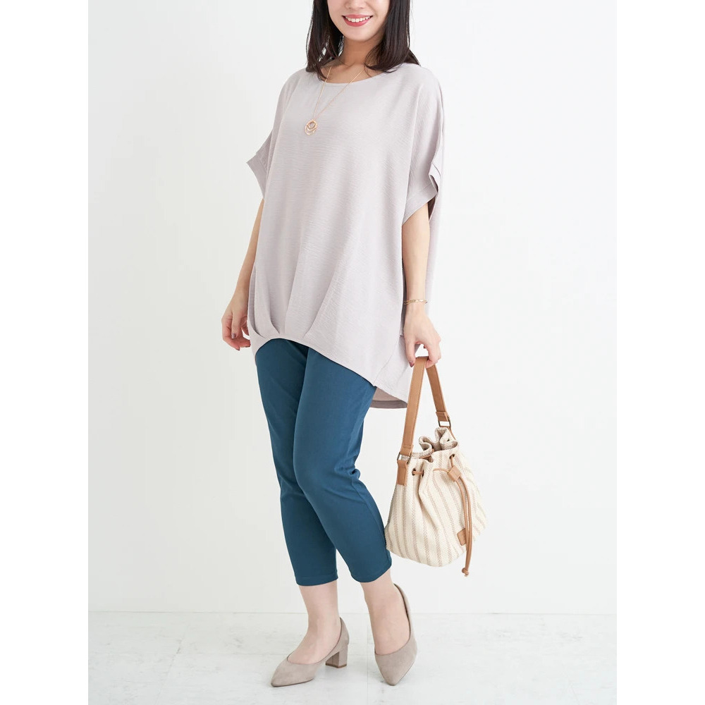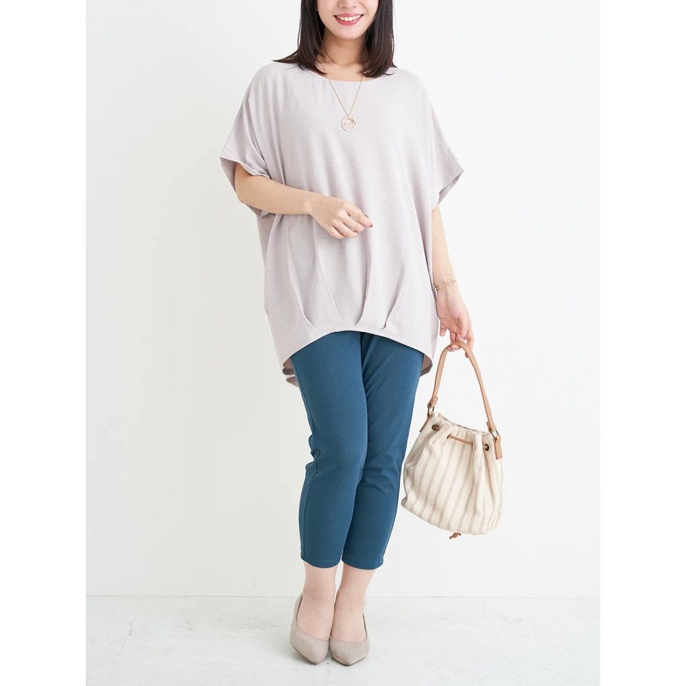 【キレサラ 機能トップス】アクセサリー付き裾タックドルマンプルオーバー