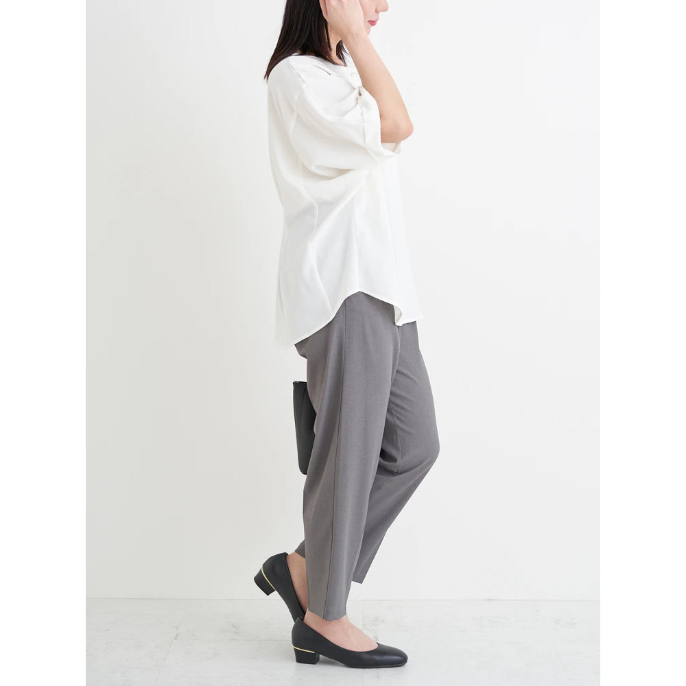 テーパードパンツなどのタイトめなボトムスと合わせていただくとバランスよく着こなせてスタイルアップ効果も◎