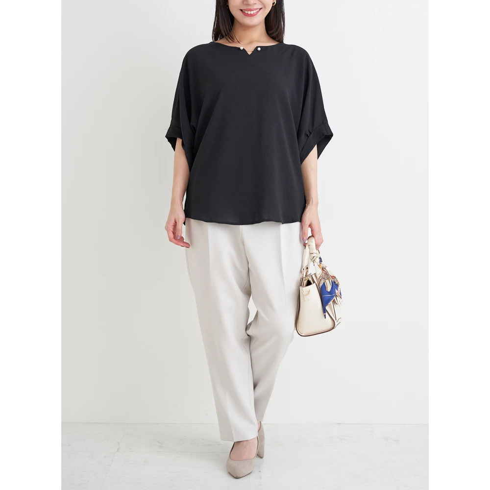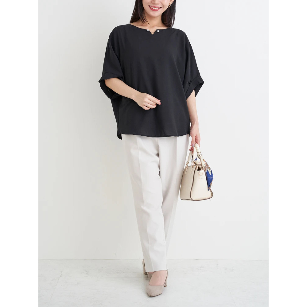 パールアクセサリー付きドルマントップス