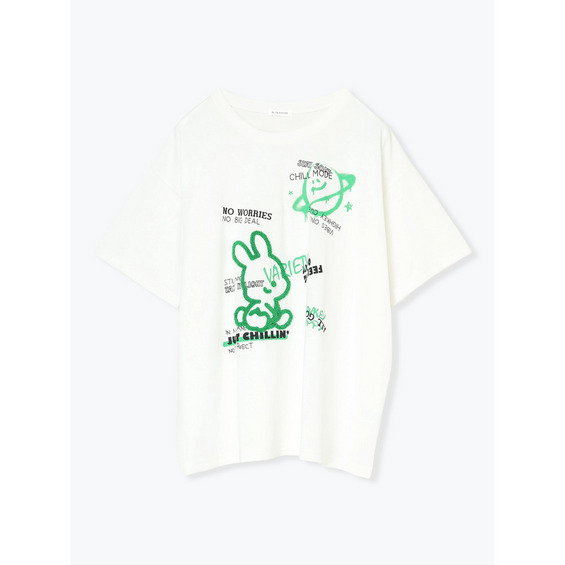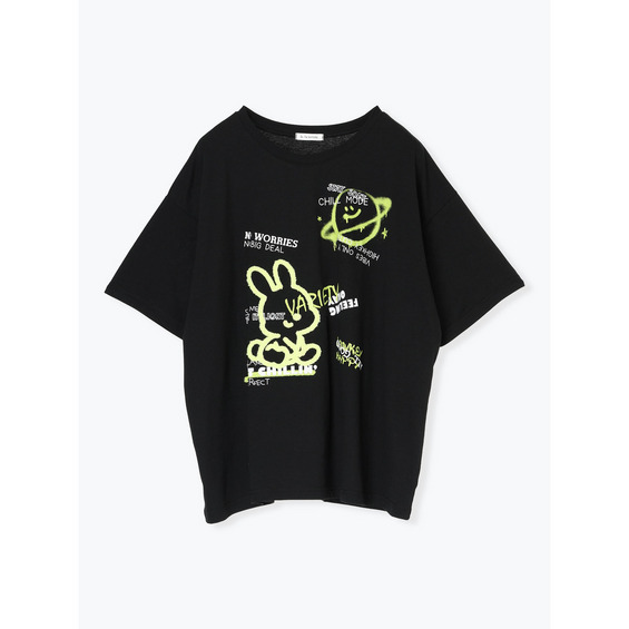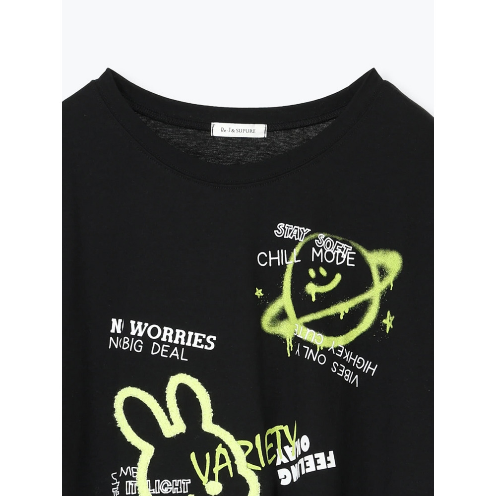 ・ウサギのキャラクターとスプレーで描いたような惑星モチーフが遊び心満点!個性を主張できる1枚♪