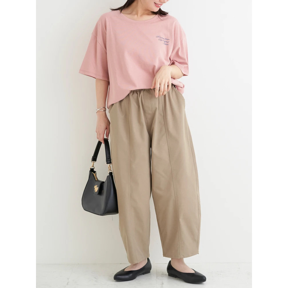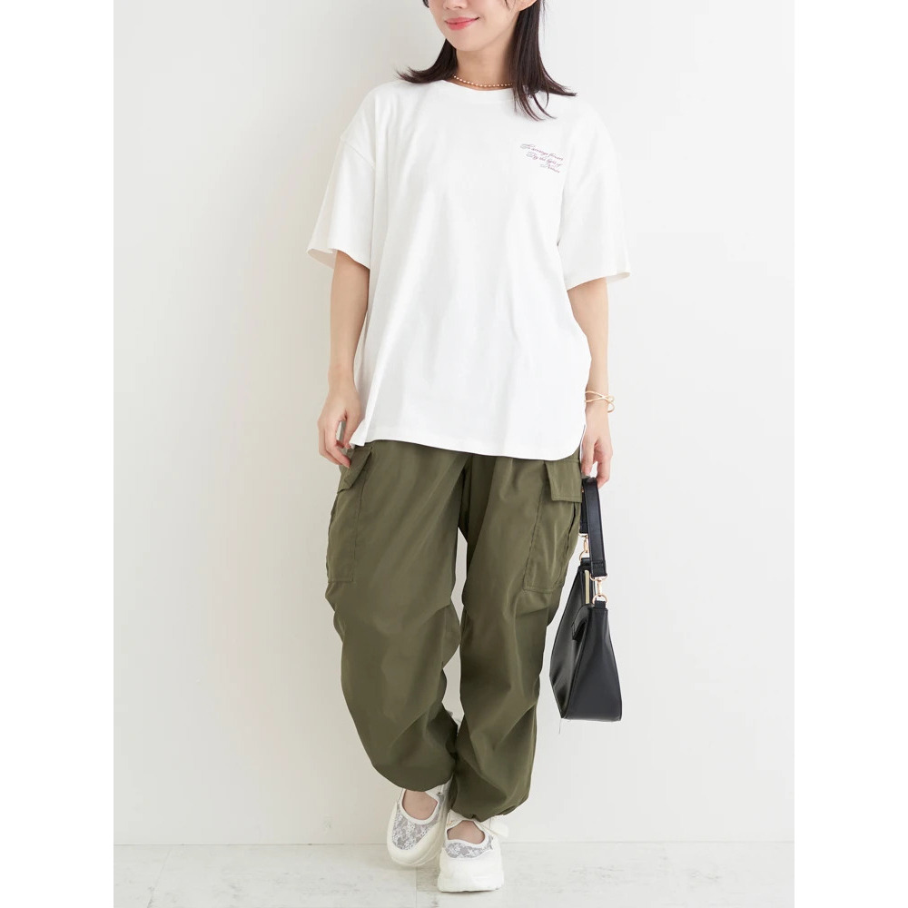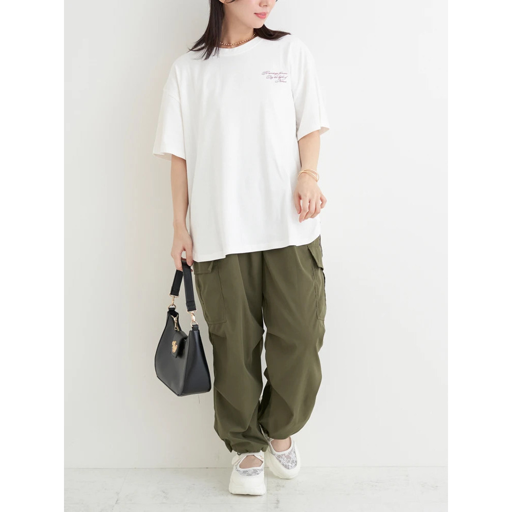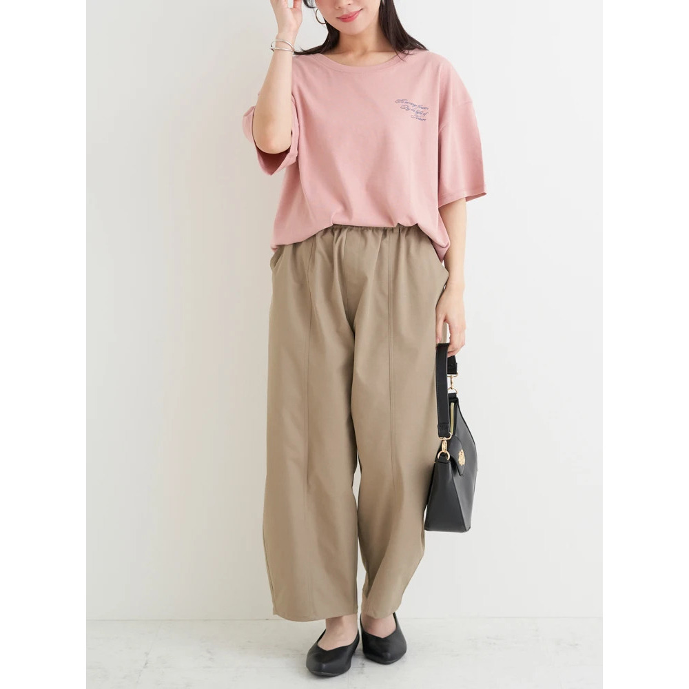 あえてセンタープレスの効いたスラックスやきれいめなパンツを合わせることで、プリントTシャツを大人っぽくシフトするのもオススメです♪