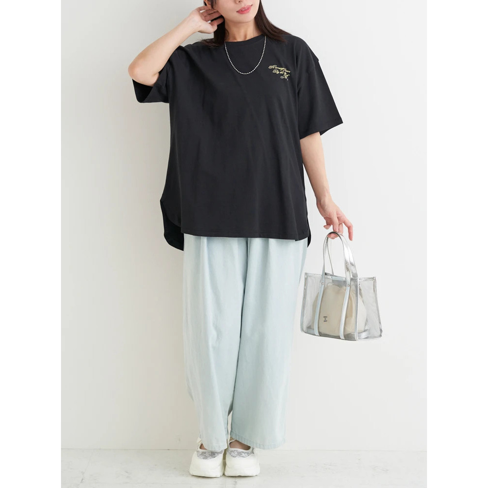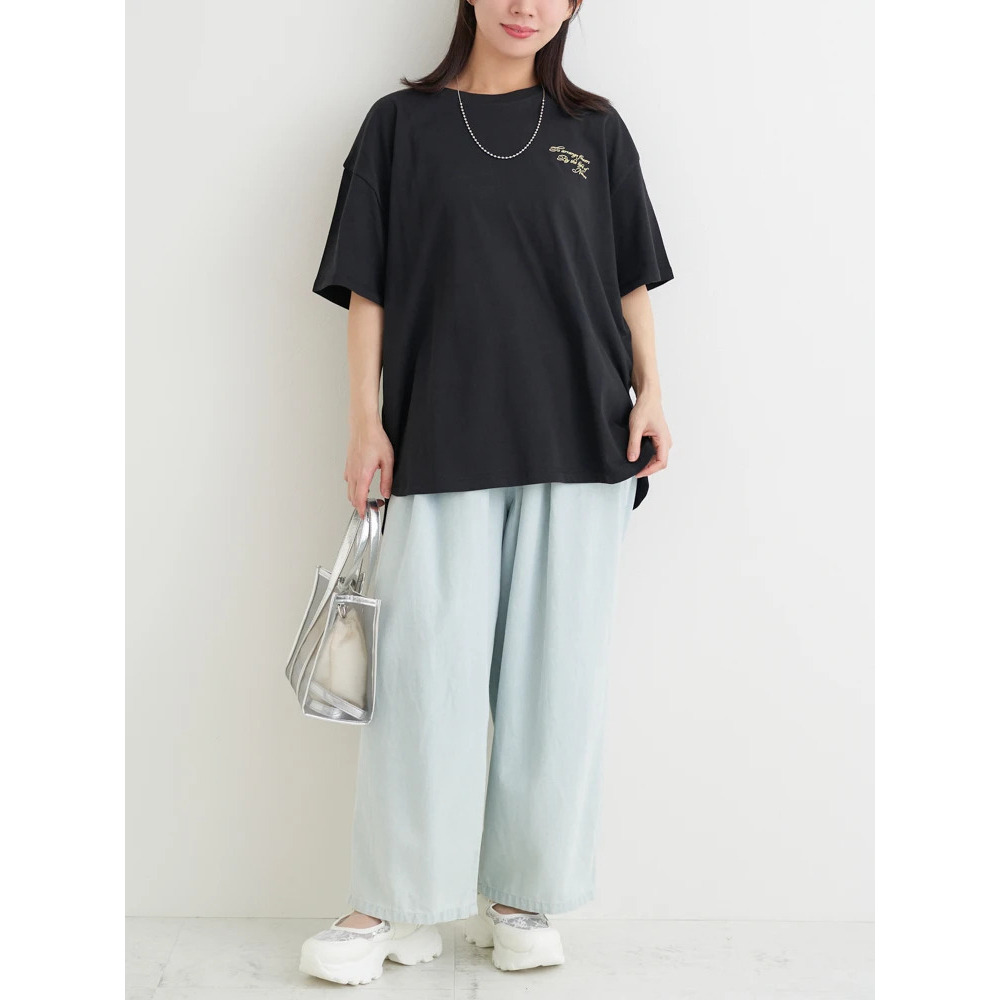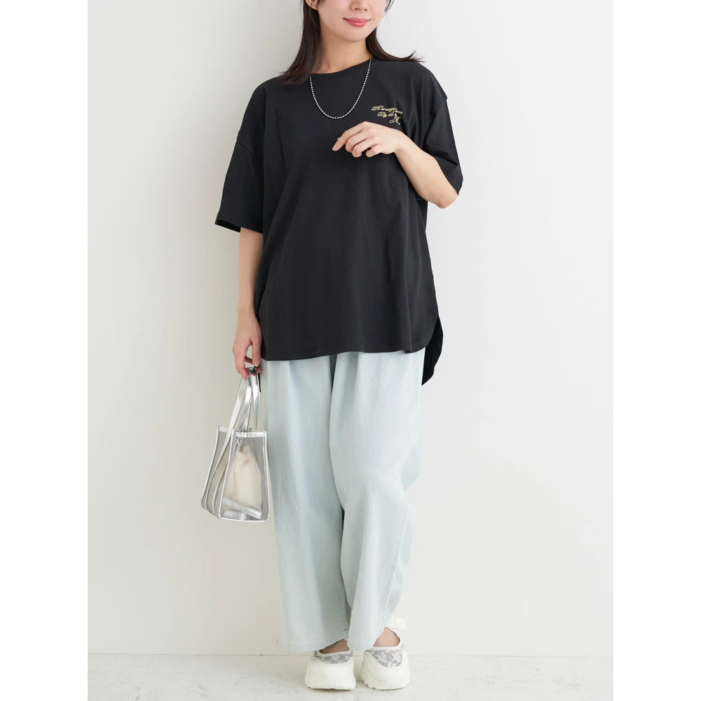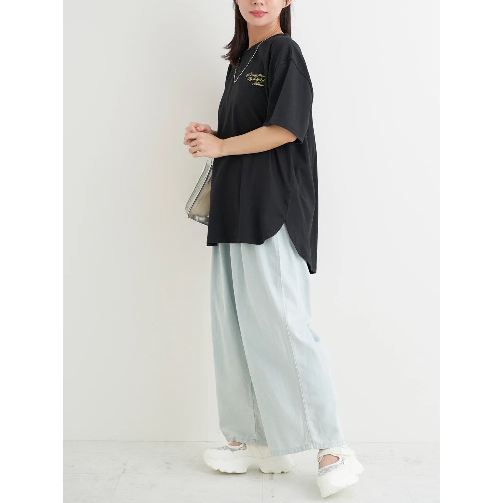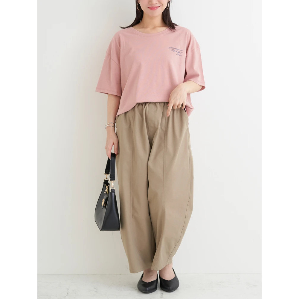あえてセンタープレスの効いたスラックスやきれいめなパンツを合わせることで、プリントTシャツを大人っぽくシフトするのもオススメです♪