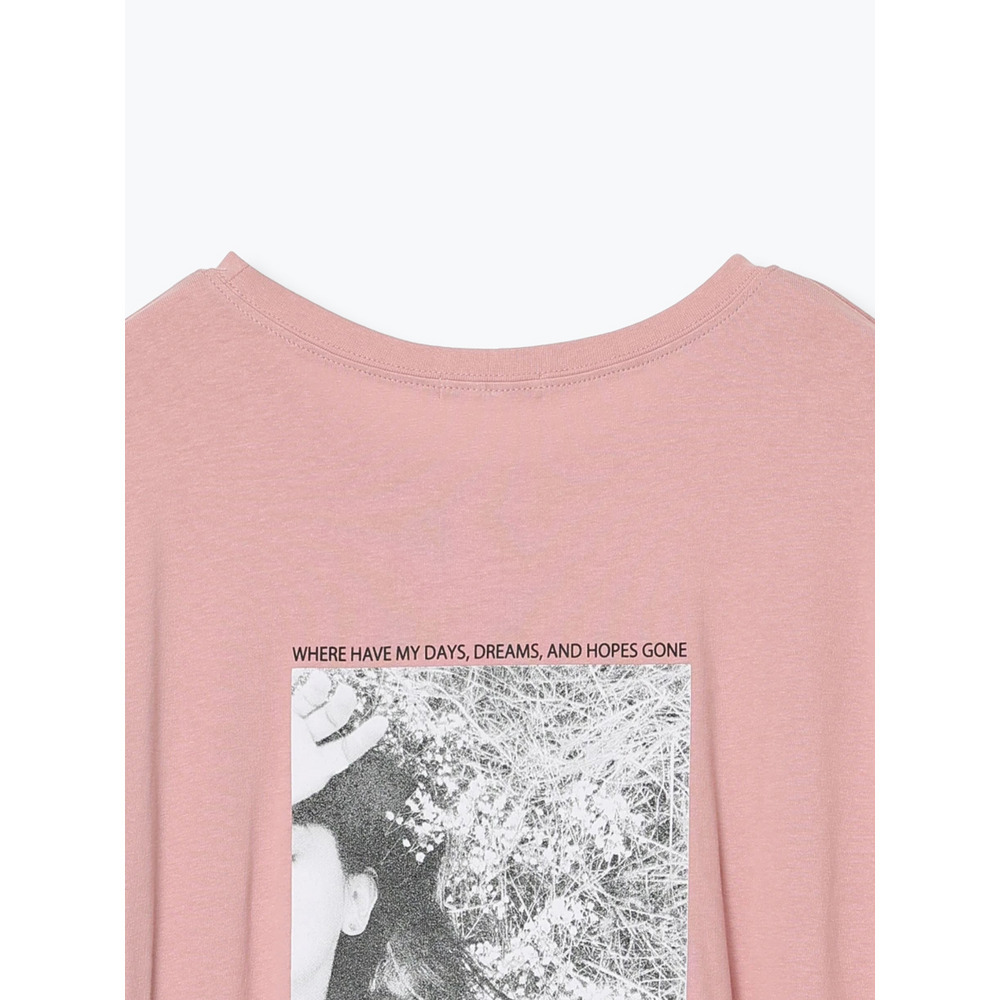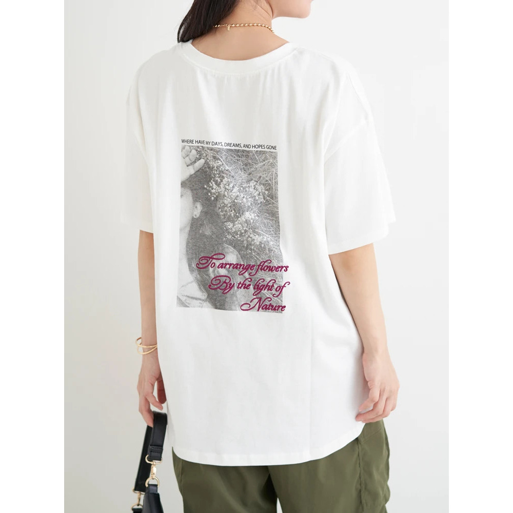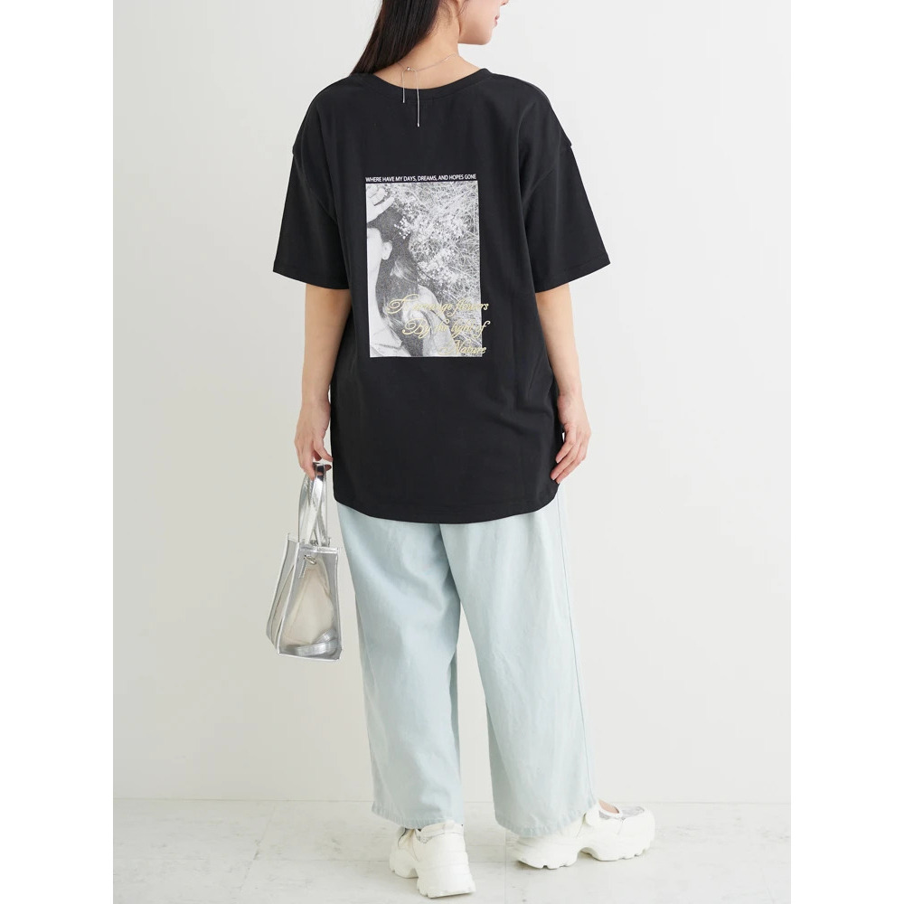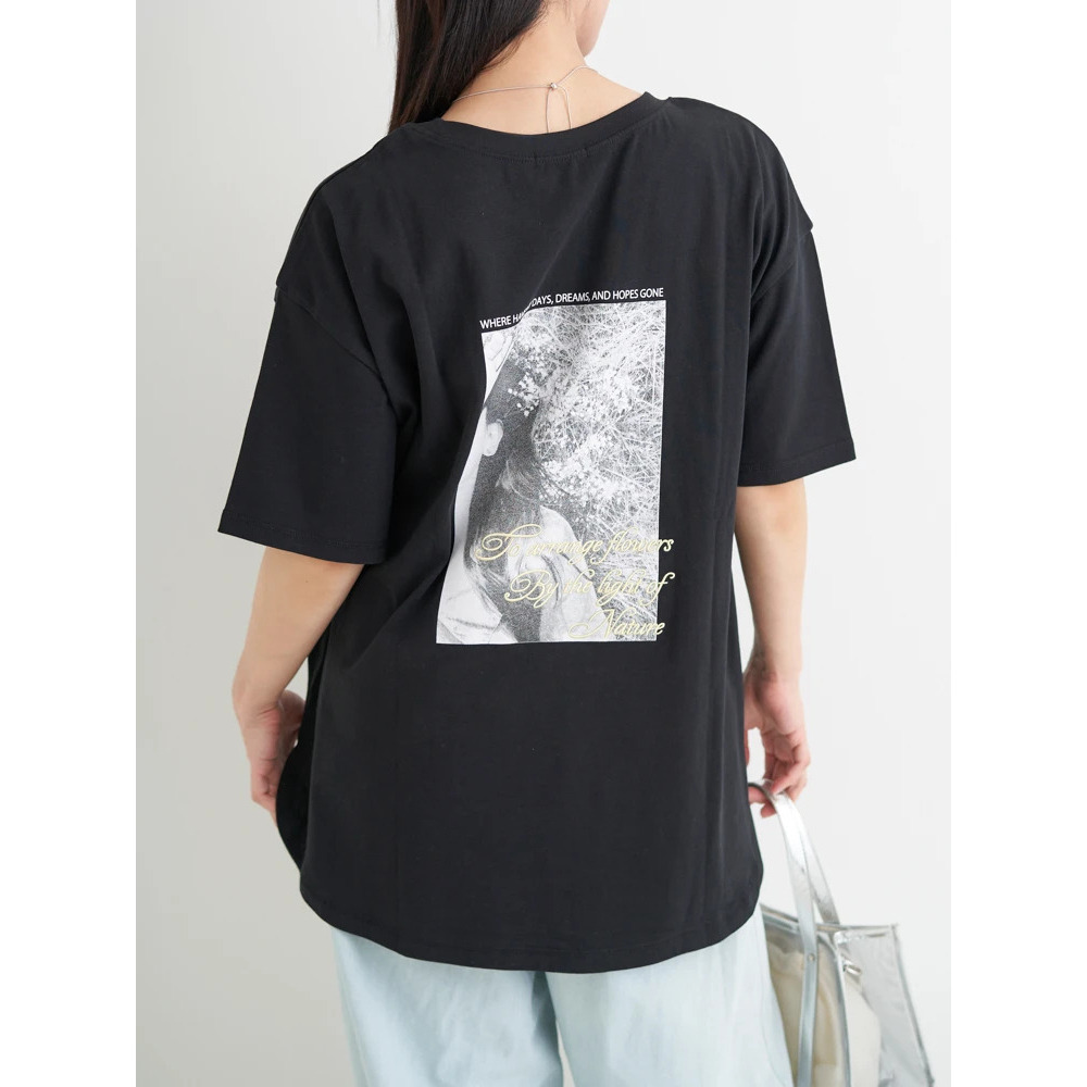 ・バックに大きく施されたフォトプリントは、モノクロ調でヴィンテージライクなムードをプラス。