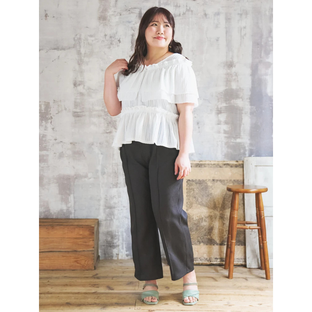 ・足のラインを拾わないシルエットで体型カバー◎